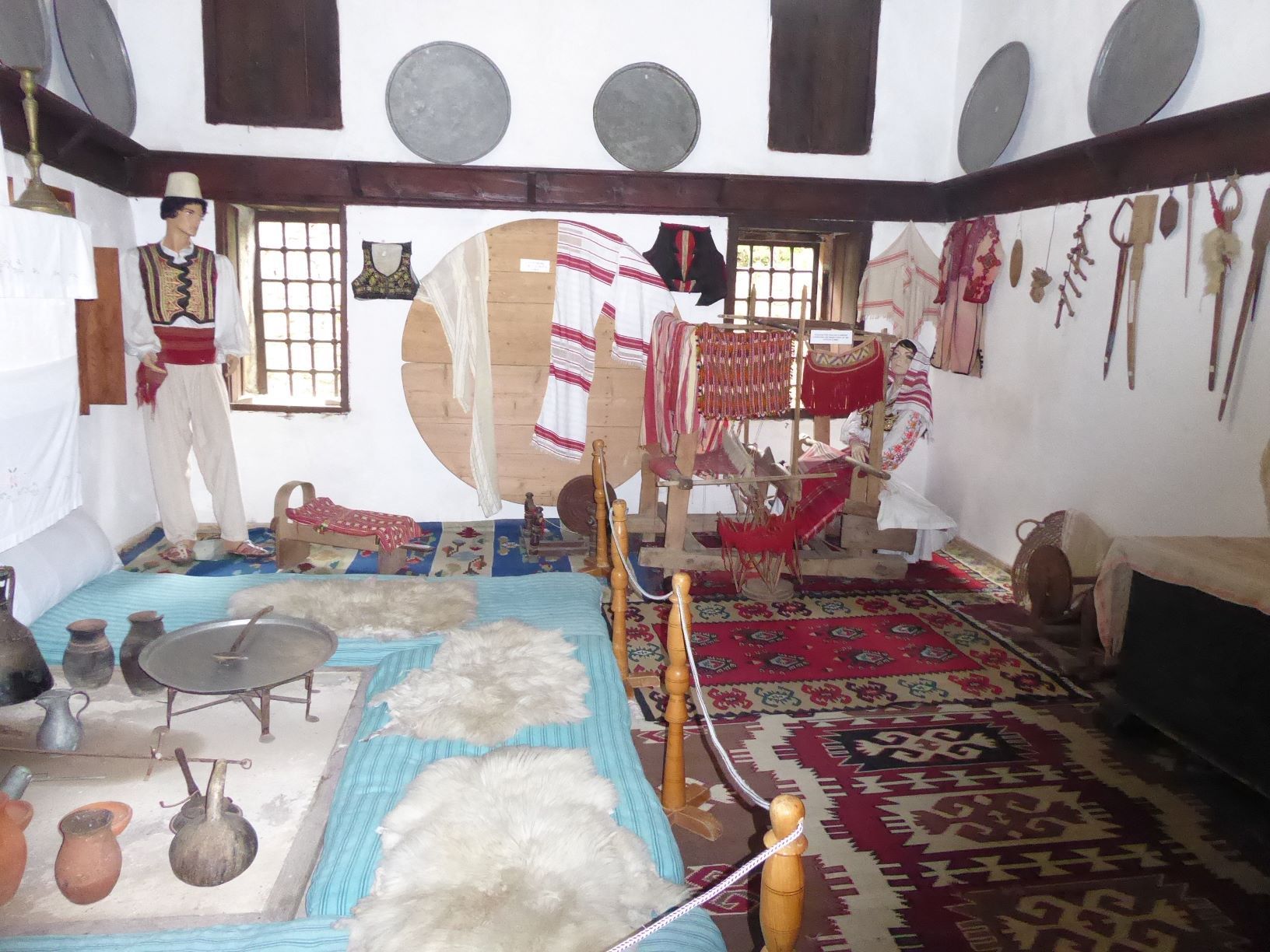 Kruja ist das Nationalheiligtum der Albaner. Im 15. Jahrhundert einte Skanderbeg die Albaner und verteidigte sie jahrzehntelang gegen die Osmanen. Weil Bajram war, das Fest am Ende des Ramadans, waren alle Eintritte in Museen gratis. In jeder Stadt gibt es ein ethnologisches Museum und weil das Wetter ja wirklich nass war, bot sich das gerade an. Auf der Burganlage war es ein Haus von reichen Leuten zu Osmanischer Zeit. Wir waren begeistert von den Räumen, den Farben und Stoffen - ist ja klar. Das Skanderbegmuseum war dann halt mehr kriegerisch und nüchtern mit vielen englischen Texten. Berühmt ist auch die Bazarstrasse, wo Marianne und ich typisch feinen Silberschmuck kauften, vermutlich von einer Frauenkooperative gefertigt. Der Tag klang aus mit einer Holzofenpizza und der Fütterung eines Strassenhündlis. Nachdem es von Albanern mit Steinen beworfen worden war fütterten wir es mit Pizzarändern. Endlich einmal satt wurde es zutraulich und landete auf Ulis Schoss wo es vielleicht zum ersten Mal Zärtlichkeit genoss.