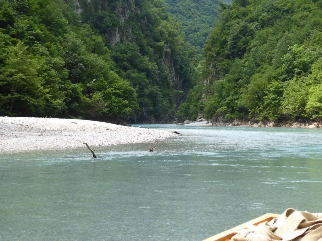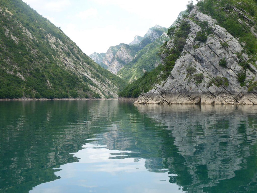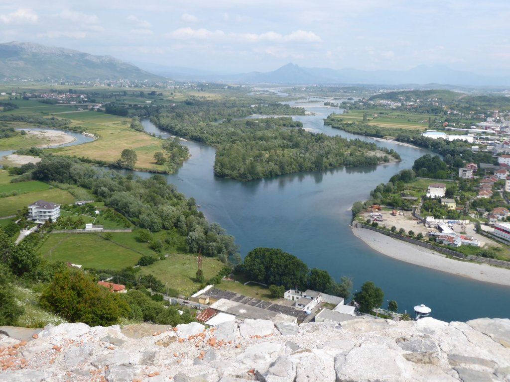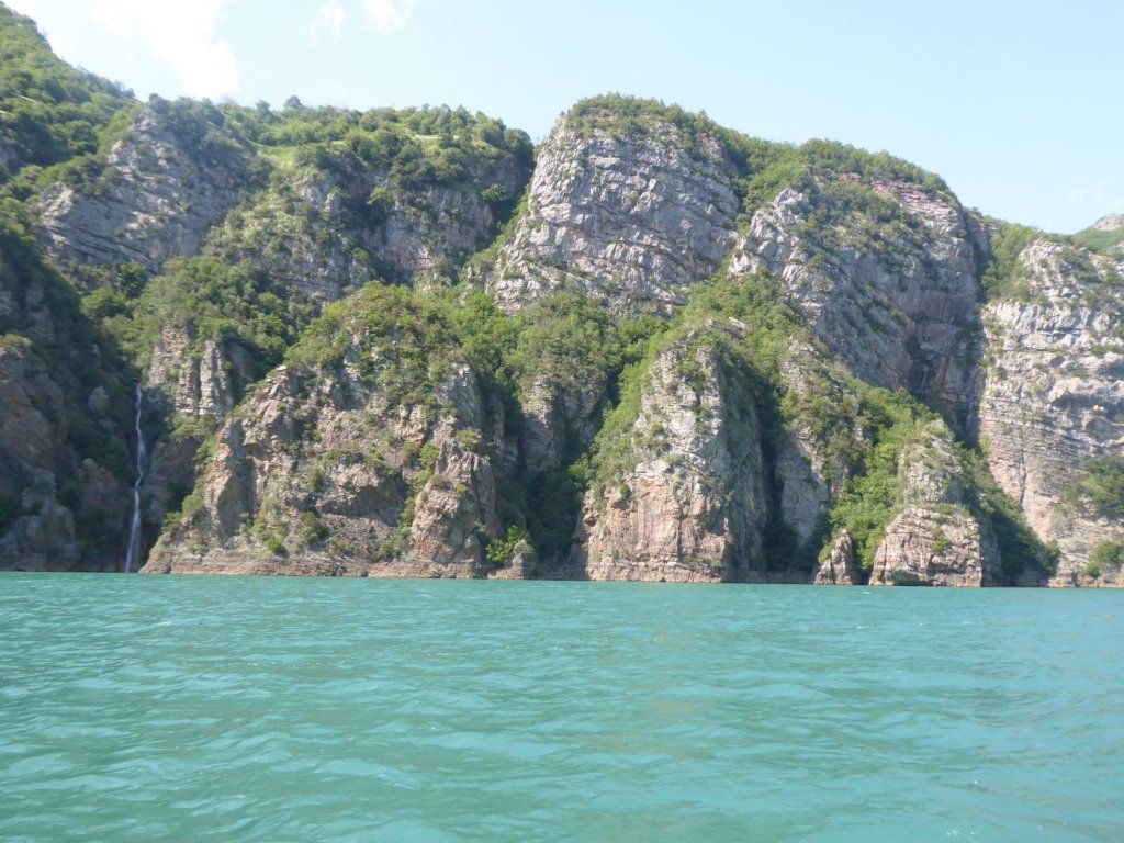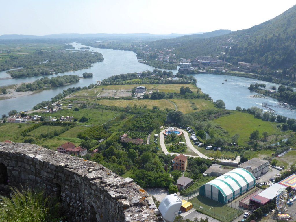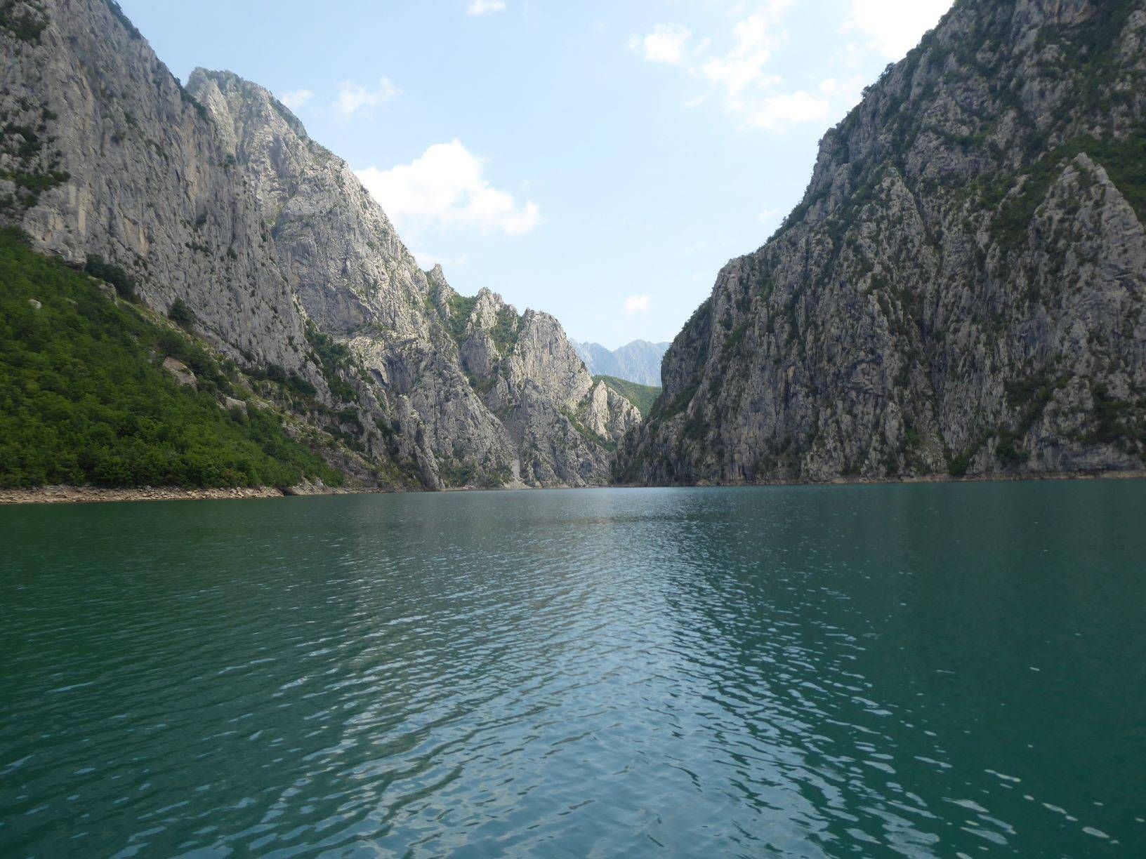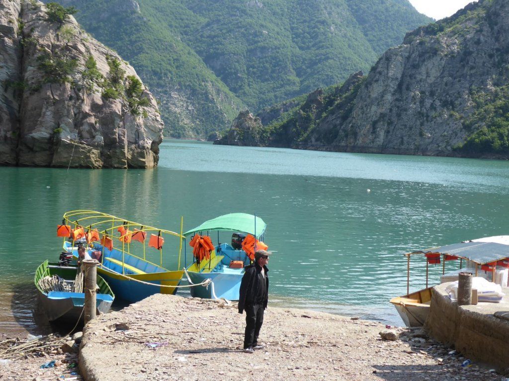 Nachdem wir in Lezhe auch noch Skanderbegs Grab besucht haben, stellen wir uns in Shkoder auf den schönen Camping Legjenda. Sofort erklimmen Hans und ich die Burgruine und geniessen Sonne und Weitblick. Das Balkantief hat sich endlich verzogen und es ist sommerlich warm, wie wir es vom Süden erwarten. Beim anschliessenden Apero entscheiden wir uns für eine geführte Tour auf dem Komansee und der Drina Schlucht. Am Morgen früh werden wir abgeholt zusammen mit acht anderen Touristen und fahren und rumpeln zwei Stunden bis nach Koman. Am Anfang ist die Strasse wunderschön und so können 50 km doch nicht so schlimm sein. Dank der wirklich sorgfältigen Fahrweise können wir es gut aushalten. Am See müssen wir dann in ein Boot steigen, das schon fast vollbepackt mit Matratzen und KIssen ist. Aber die Landschaft und die Spiegelungen lassen uns das enge Sitzen vergessen. Richtig spannend wird es in der Drina Schlucht. Das Wasser ist so flach, dass das Boot kratzt. Bleiben wir gegen den Strom stecken? Im richtigen Moment gibt der junge Bootsmann Gas und wir entspannen uns kurz. Auf der Bienen Farm gibt es köstlichen Fisch und sehr feine Zutaten. Dann natürlich der lange Rückweg. Wir kommen ziemlich gerädert und fröhlich an.