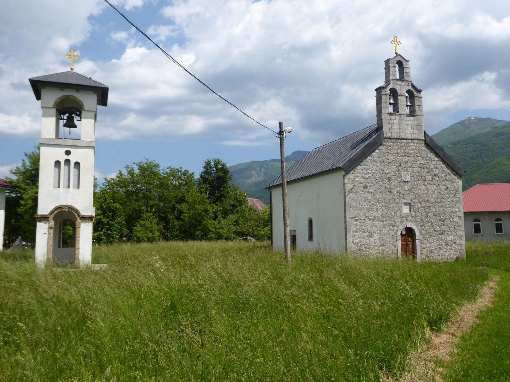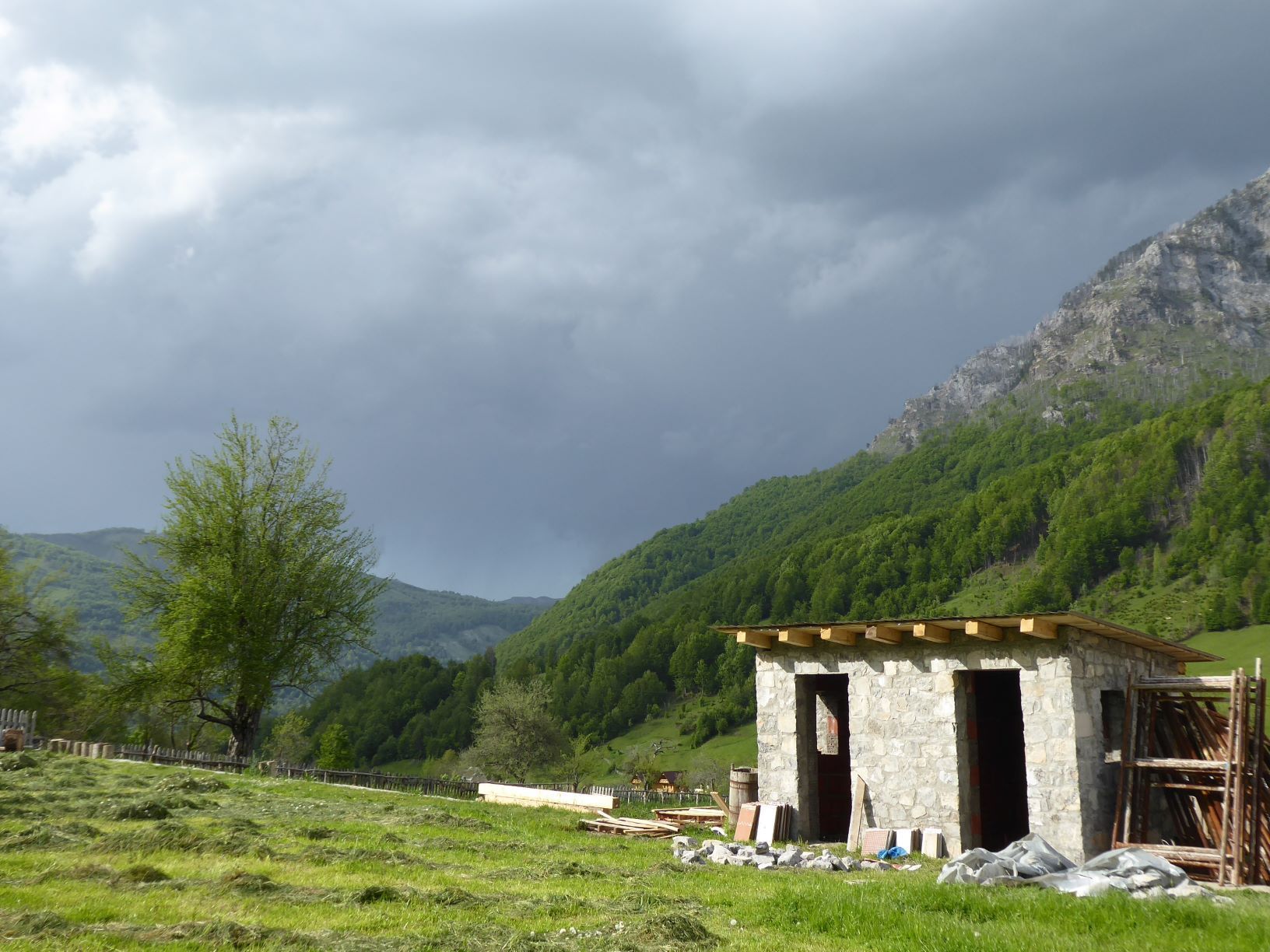 Lepushe ist das höchst gelegene Dorf in Albanien, 1260 müM. Vor dieser Kulisse wollen wir wandern. Die Fahrt dorthin ist spektakulär, etwa so wie die Tremola oder Trollstiegen in Norwegen. Zum Glück ist sie gut ausgebaut und ein Töffparadies. In Lepushe können wir nun auch einmal offroad fahren. Der junge Besitzer des Campings bringt uns mit seinem Pickup durch den Wald, damit wir mit Panorama wandern können. Eine kurze sehr holprige Strecke, wir werden durchgeschüttelt. Echt, da wandern wir lieber. Wir erklimmen den Maja (Berg, Piz) Gerbenit und geniessen Ausblick und freie Sicht auf den Himmel. Das Essen am Abend sieht nur schön und traditionell aus, es ist kalt und zäh und den Wein bekommt die Wiese. Am letzten Tag in Albanien fahren wir nach Vermosh, das nördlichste Dorf. Wir wollen die interessante gebogene Kirche besuchen. Sie ist zu, aber der aufmerksame Barman von seiner Bar gegenüber öffnet uns und erzählt, dass die Kirche in Freiwilligenarbeit aufgebaut wurde. Er selber ist nur im Sommer Barmann und in der übrigen Zeit Lehrer in Tamare. Liebevoll erklärt er uns die traditionellen Speisen und bringt uns von allem ertwas. Es ist sehr lecker. Letzte Überraschung am Zoll. Der Mann, der auf der Wiese in Lepushe gezettelt hat, ist der Zöllner: frohes Wiedersehen. Dann verlassen wir Albanien, das wir bereist, schätzen und etwas kennen gelernt haben. Mirupafshim - auf Wiedersehen.