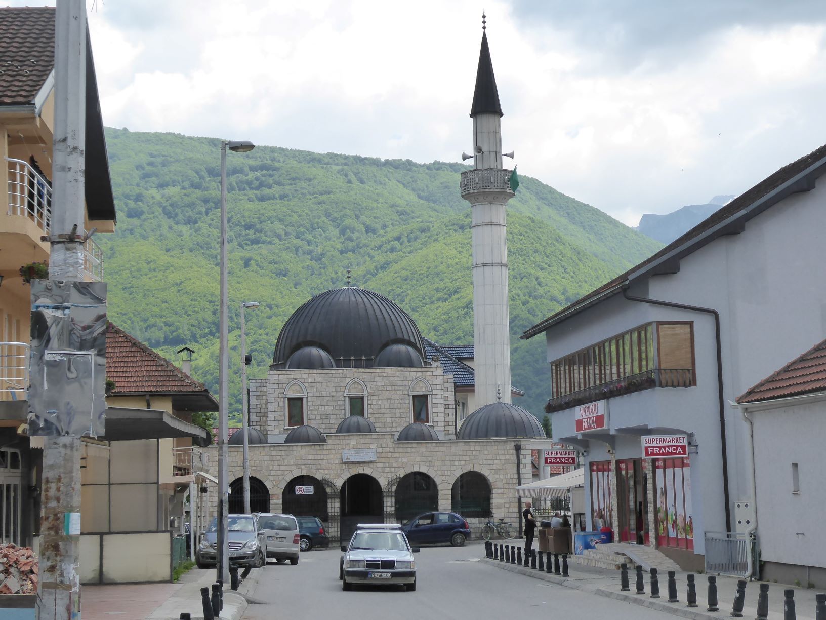 Wir kommen an die montenegrinische Grenze. ID und grüne Versicherungskarte zeigen, alles ok. Dann fragen die Zöllner, warum wir nach Montenegro wollen, Business oder Ferien? Nur Ferien. "Dann öffnen Sie den Wagen." Er kommt herein, schaut sich um und auch ins Bad und öffnet dann auch Kästchen. Da wird mir klar, dass er nur neugierig ist. Der andere steht an der Türe und meint: "So schön". Dann können wir fahren. Uns fällt als Erstes auf, dass die Strassen viel besser sind, die Häuser fertiger, verputzer und angemalt. Viele haben reich verzierte Gartenzäune und Tore. Montenegro ist reicher als Albanien. Wir kommen nach Gusinje, schauen Moscheen und eine Kirche von aussen an und finden bei den Quellen Ali Paschas einen Platz.