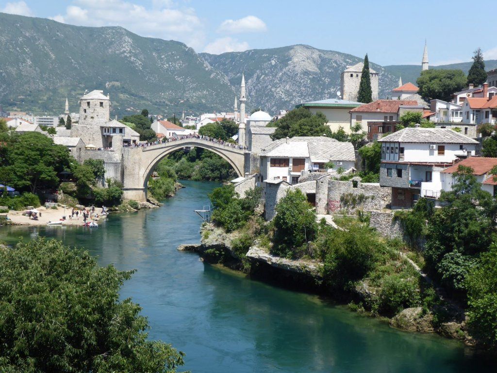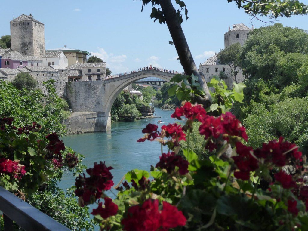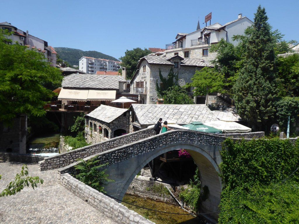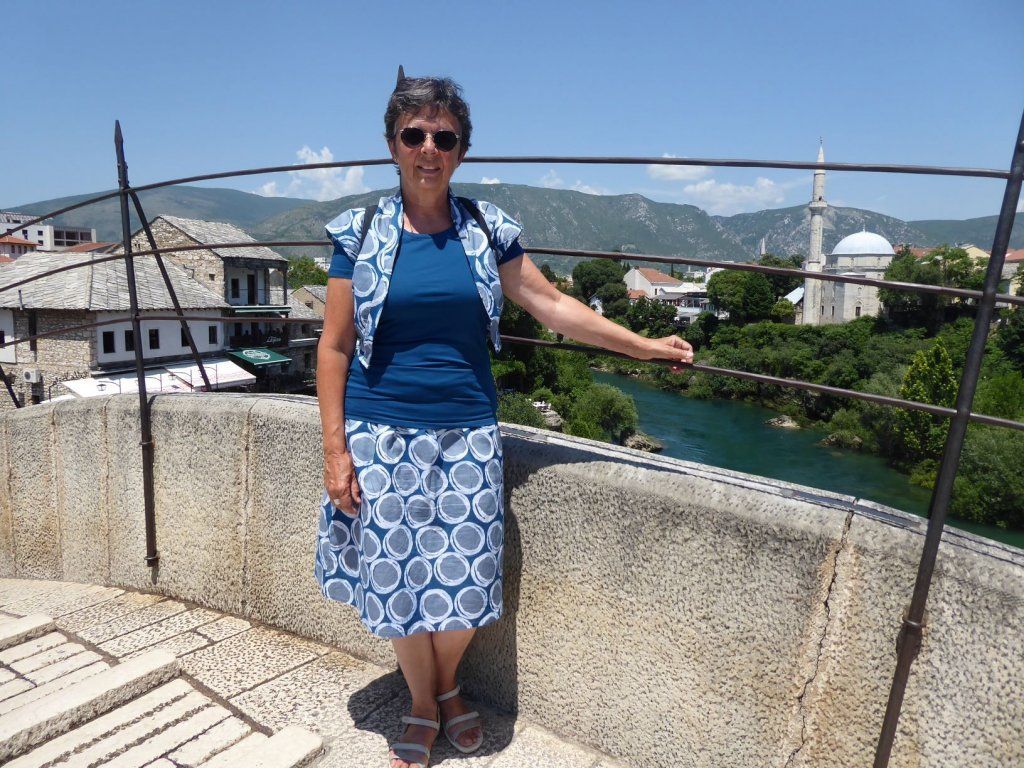 Es war schon seit Jahren mein Wunsch, Mostar zu besuchen. Nach der kroatischen Grenze kurven wir auf einer sehr engen Strasse durch Karstgebirge, Felsen, Büsche und dazwischen einen kurzen Blick in eine grosse Ebene. Der Neretwa entlang, so heisst der Fluss, fahren wir bis in die Stadt. So ein Schock! Tausende Touris schieben sich über die alte Brücke = stari Most - Mostar. Sie wurde im 16.Jh erbaut und hielt bis 1993 als sie durch gezielte Bombardierung der kroatischen Truppen in die Neretwa fiel. Sie wurde orginalgetreu wieder aufgebaut und 2004 eingeweiht. Die Stadt ist lebendig und farbig aber bei näherem Hinsehen finden sich immer noch Häuser mit grossen Einschusslöchern. Ein Museum über den Krieg führt uns die schreckliche Zeit mit Bombardierungen, Zerstörungen, Vergewaltigungen und Genozid vor Augen und in die Herzen. Auffallend sind die vielen Moscheen auf beiden Seiten des Flusses Neretwa, die Grenze zwischen Kroaten und Muslimen ist nicht der Fluss, sondern ein Boulevard, so erfahren wir von einem Barbesitzer, der uns Geschichten von Mostar erzählt. Gerne hätten wir die Graffittigasse gesehen, aber ein starkes Gewitter vertreibt uns ins bosnische Museum, eine Art ethnologisches Museum. Ein Tag in Mostar ist viel zu kurz um diese gebeutelte und interessante Stadt zu erahnen. Wir fahren zurück nach Kroatien und campen am Bacinska Jezero, einem sehr romantischen Platz. Nach einem erfrischenden Bad im See beenden wir den reichen Reisetag.