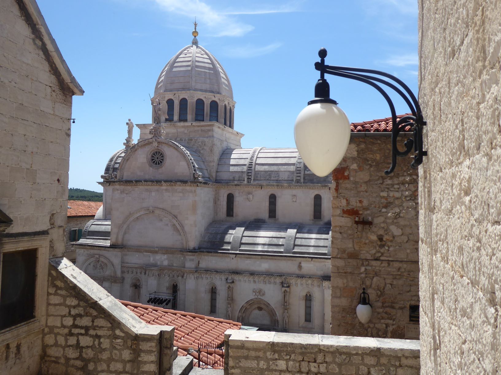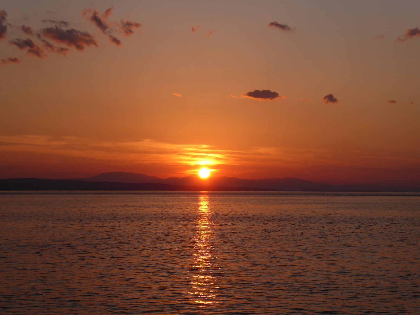 Wir besuchen an einem Sonntag Sibenik. Berühmt sind der Dom aus weissem Marmor und Kalkstein gebaut und zwei Burgen. Die Eintrittspreise sind den vielen Touris angepasst! In Senj, der Stadt, wo die Geschichte der roten Zora spielt möchten wir an den Meer Camping. Der ist aber so eng und ohne Schatten, dass wir wieder kehren. Wir werden vom Betreiber aufs Wüsteste angefahren. Zweieinhalb Monate haben wir freundliche und hilfsbereite Menschen angetroffen und nun das. Auch eine junge Autofahrerin zeigen uns wie blöd wir sind und zum einkaufen müssen wir einen Parkplatz für 5 Franken lösen. So unfreundlich und unverständlich. Also nichts wie weg! Auf einen kleinen Wiesli in der Nähe versöhnen wir uns mit der Situation, geniessen feines Essen und einen prächtigen Sonnenuntergang. Bei Novi Vindolsk sagen wir dem Meer Adieu. Noch ein letztes Foto und dann geht es schmal und kurvenreich ins Landesinnere. Zum Glück gibt es den Ort Lic auf der Karte, damit wir wieder wissen, wo wir sind. Es gibt in dieser Gegend sehr viel Holzindustrie und die Häuser sehen auch ganz anders aus. Die Wetterseite und das Dach sind aus Blech und die Gärten reich und farbig. 95 Kn haben wir noch übrig und für 92.53 Kn kaufen wir im Lidl an der Grenze ein.