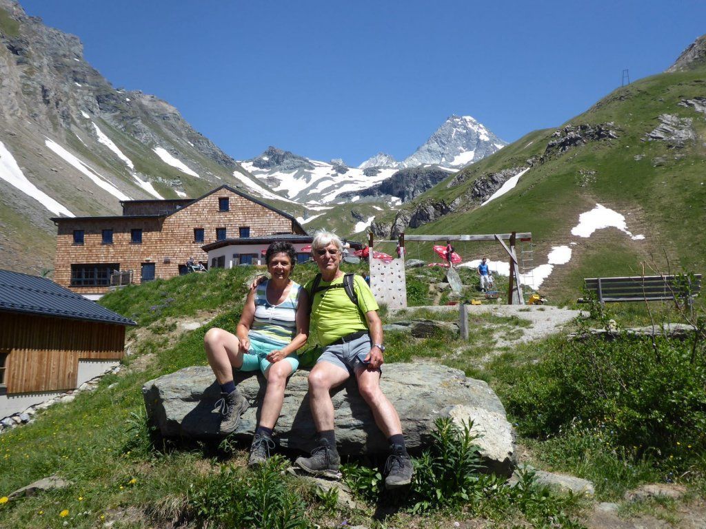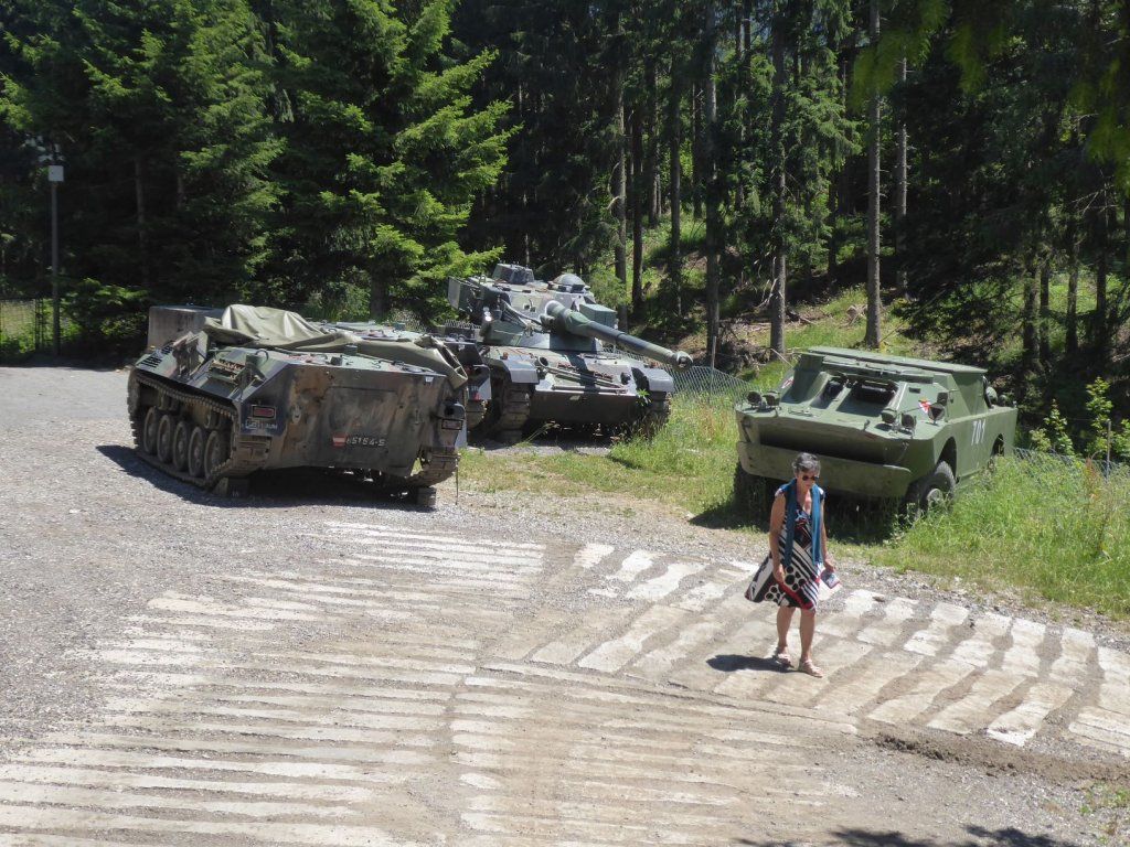 Über den Wurzenpass kommen wir nach Österreich. Auf der Passhöhe besuchen wir das Bunkermuseum, das im kalten Krieg gebaut wurde. unterirdisch ist es kalt und unfreundlich. Bei den verschiedenen Kanonen suchen auch Schafe Schatten und Kühle und oberirdisch brennt die Sonne und lässt einen trotzdem schaudern angesichts der Bedrohung. 18% Gefälle bringen uns ins Tal und in die Hitze, es ist 35 Grad. Matrei im Osttirol ist unser nächstes Ziel, aber das ist auch im Tal. Kurz vor dem Dorf zweigt noch eine Kurvenstrasse ab, die muss in die Höhe führen. So ein Glück - auf 1500m finden wir einen fantastischen Aussichtsplatz auf die Berge im Camping des Hohe Tauern Nationalparks in Kals am Grossglockner. Am Abend werden Höhenfeuer für den Herz-Jesu-Sonntag angezündet, sieht schön aus. Mit der Gästekarte können wir mit dem Bus gratis zum Luknerhaus fahren und die 30 Euro Maut sparen. Das lassen wir uns nicht entgehen. Wir wandern bis zur Luknerhütte und noch etwas weiter. Unterwegs müssen wir dann ganz viele Bergsteiger grüssen und das wird echt schwierig, wie gerne wäre ich auch dort oben gewesen. Aber all die beschriebenen Wanderungen habe ich schmerzfrei und folgenlos gemeistert, sodass ich nun wieder an ein Training denken kann und das macht mich ganz fröhlich. Den Abend verbringen wir mit Nachbarn, Fritz ist Berufsjäger der Armee und weiss viel Interessantes zu erzählen. Überhaupt ist die Atmosphäre dort so gut, dass sie sich auf die Camper überträgt.