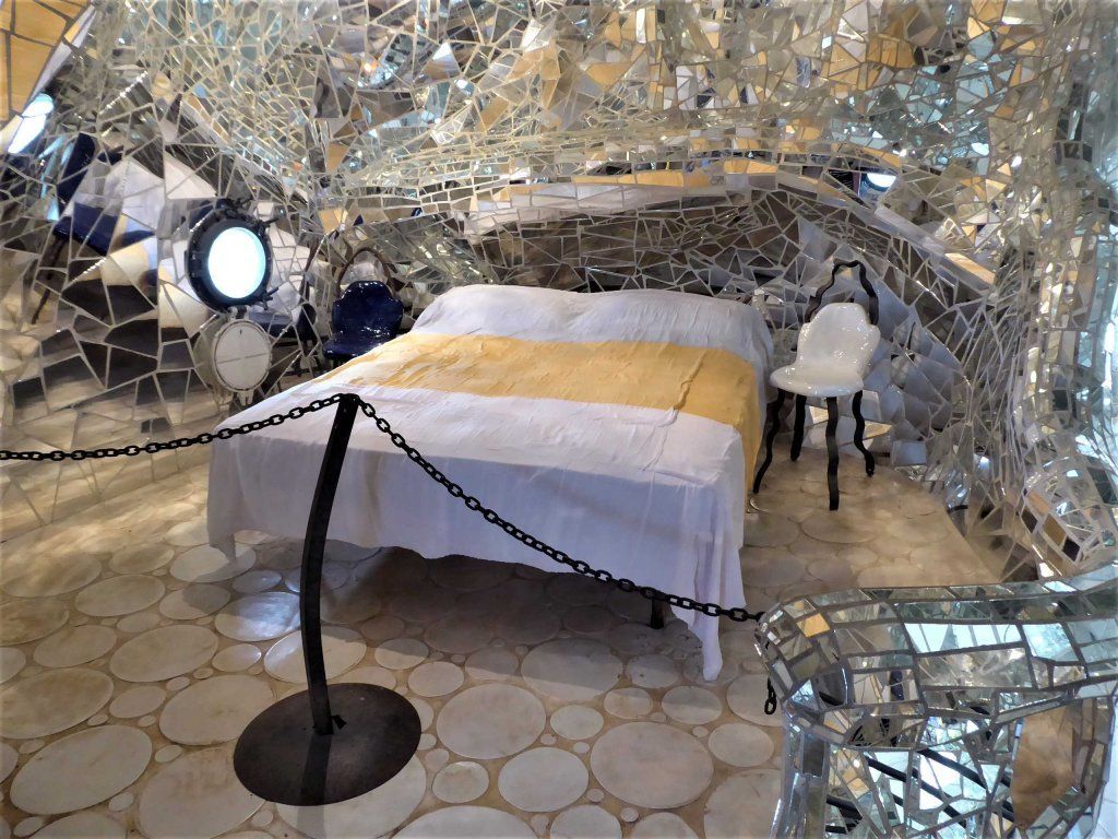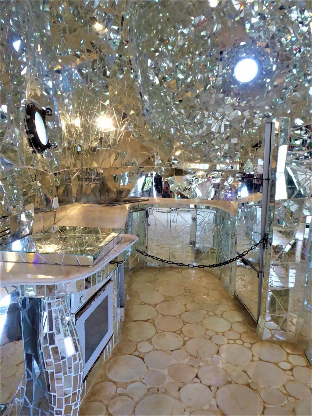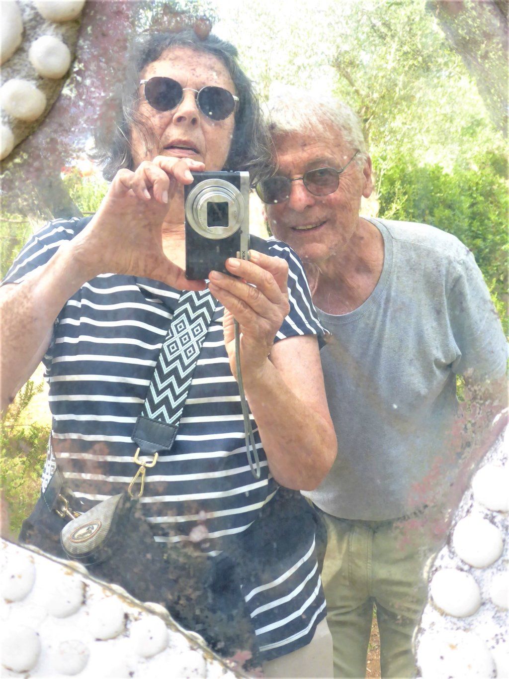 Von 1978-2002 schuf Niki de Saint Phalle die grössten Werke ihrer Karriere. In einem Garten gestaltete sie die Figuren des Tarots, voller Fantasie, Kreativität und Sinnlichkeit. Die Königin, Empress, hat uns besonderen Eindruck gemacht. Sie thront fast über allem, farbig, verspiegelt und sinnlich. Sie ist begehbar und in einer von ihren grossen Brüsten ist eine verspiegelte Küchenzeile und in der anderen das Schlafzimmer. Das mögen ja abstruse Ideen sein, aber es ist auch grad Muttertag und da kommen mir Verbindungen zum Nährenden und Lebendigen auf, auch eine sehr kreative Verarbeitung ihres Missbrauchsthemas. Auf dem Herzplatz im Innern ist ein grosser Tisch für geselliges Zusammensein.
