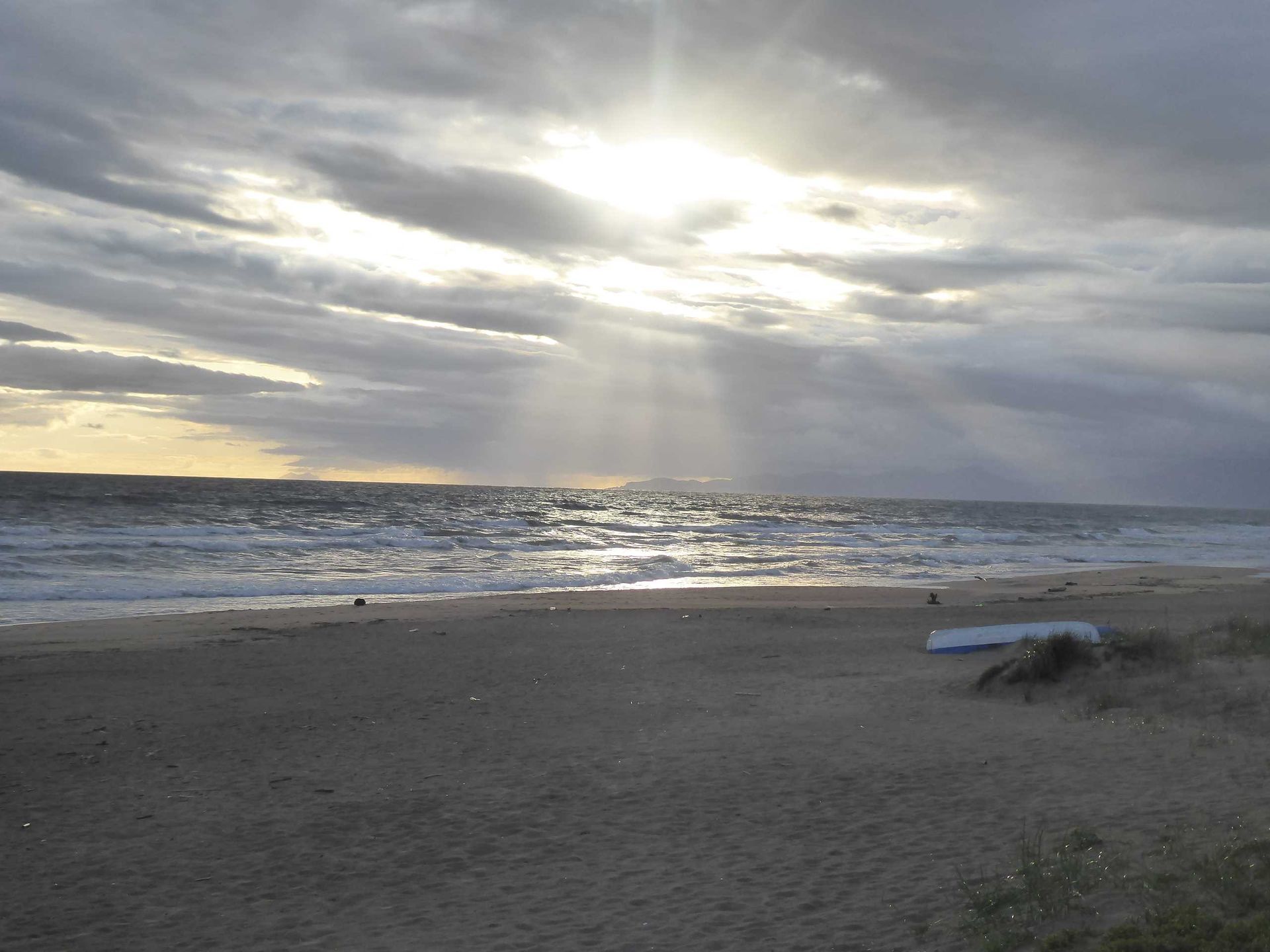 Ein Blick auf die Wetterprognosen zeigt uns am Meer Sonne. Also nix wie dahin. Bei Mondragone finden wir einen Platz direkt am Meer, erste Reihe. Das muss man geniessen und vom herunter gekommenen Platz absehen. Schöne Föteli vom Sonnenuntergang.