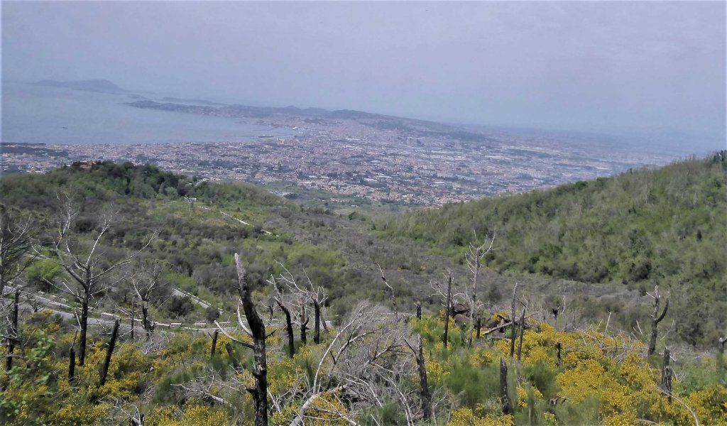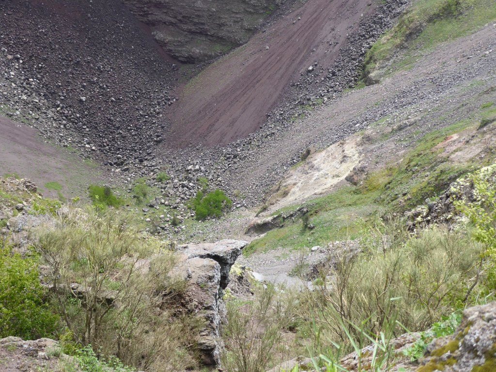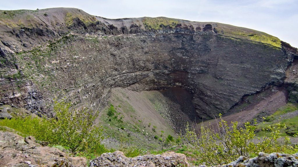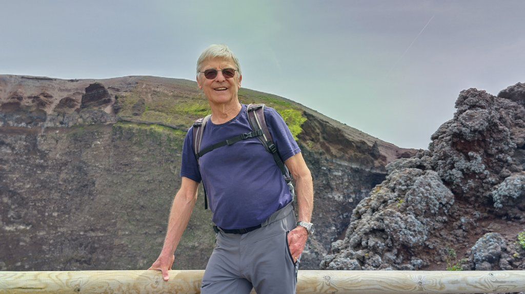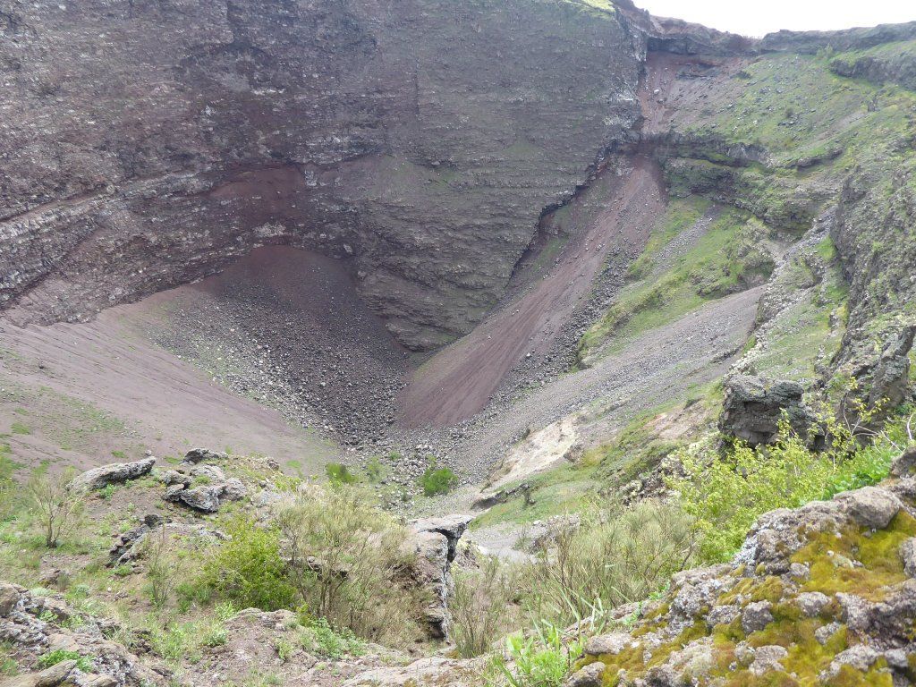 ein schlafender Riese, der Grund der Caldera 200 m tief. Dort sieht er fast schon lieblich und arglos aus. An zwei bis drei Orten dampft er etwas, aber sonst? Wenn man bedenkt, dass er vor dem grossen Ausbruch von 79 nC 3000 m hoch war. Am Mittag sind wir wieder beim Wigwam.