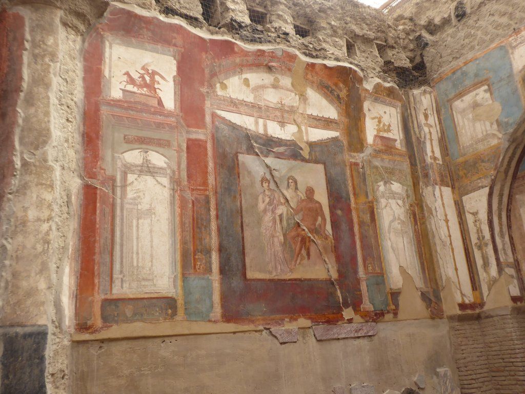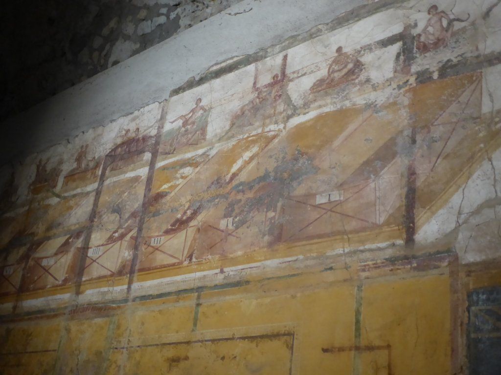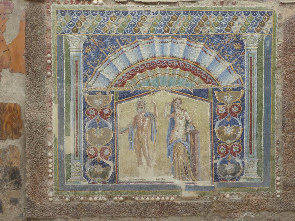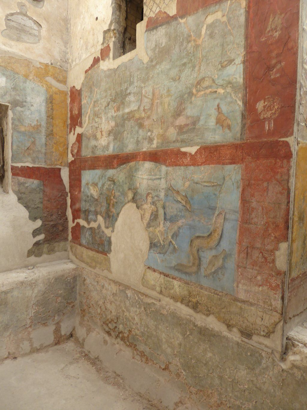 Nach der ausgedehnten Siesta gehen wir zu den Ausgrabungen von Ercolano. Dies war die Sommerresidenz der reichen Römer von Pompei und Neapel. Hier hat es nicht so viele Leute. Wir gehen durch die Ruinen und erhalten langsam ein Bild von der Wirkung des Vulkanausbruchs. Hin und wieder entdecken wir ein schönes Mosaik oder ein gemaltes Bild. Einige Fragen bleiben offen. Es war ein reicher Tag und wir sind müde.