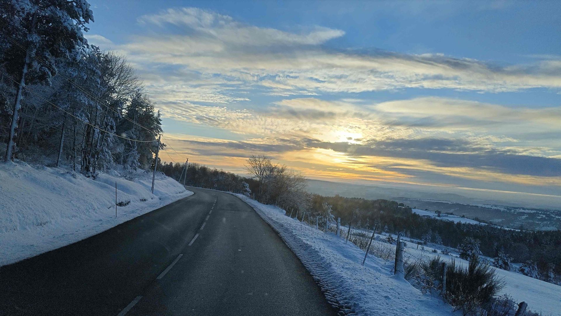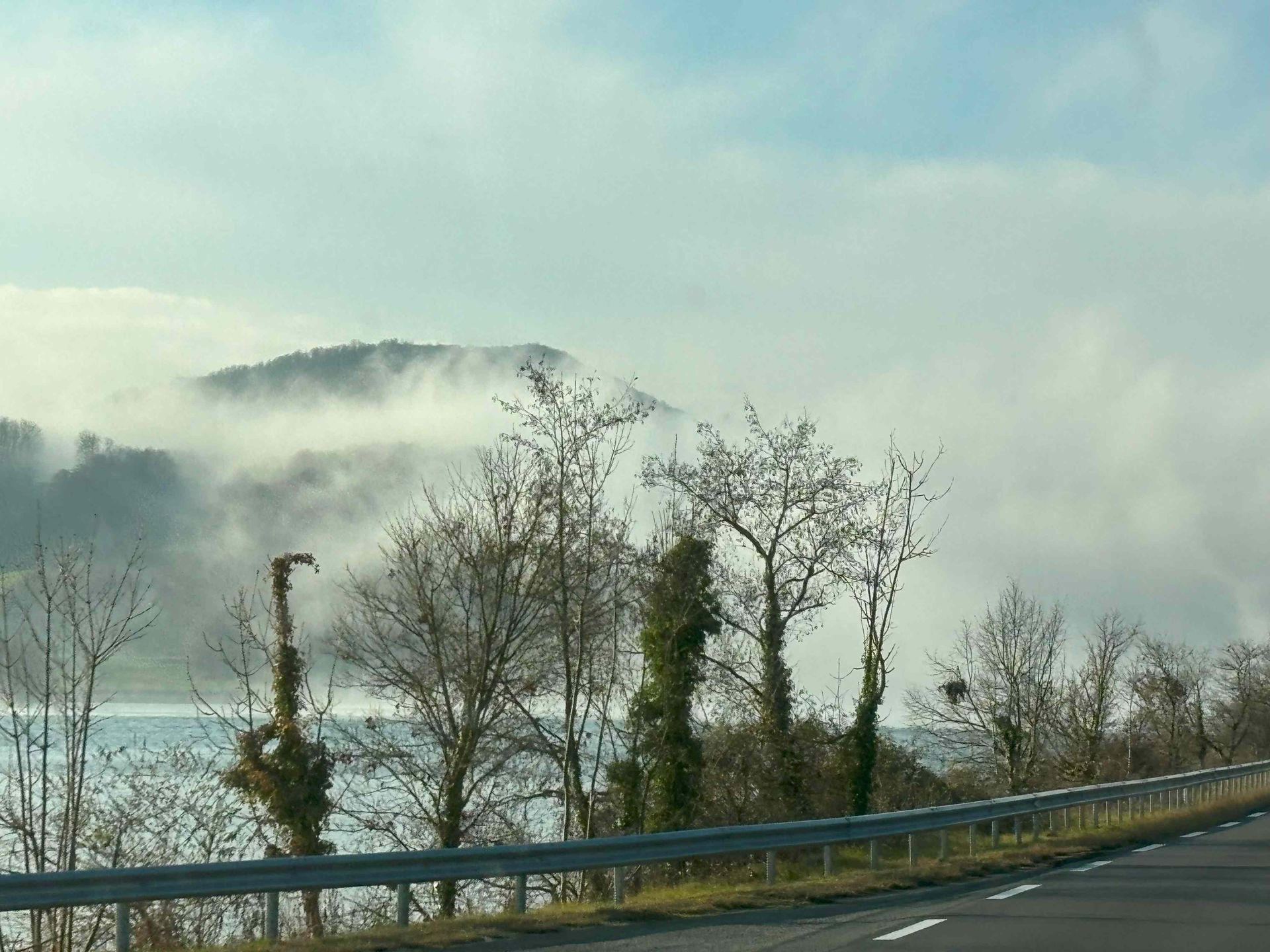 Es ist kalt und garstig als Hans über die A1 fräst. Etwas verheissungsvolles Licht im Westen? In Seyssel, 40 km südlich von Genf übernachten wir an der Rhone. Weiter fahren wir durch schöne Nebelstimmungen, dicken Nebel und verschneite Landschaften nach Millau. Zum Glück lichtet sich der Nebel damit wir einen Blick auf die berühmte Brücke werfen können.