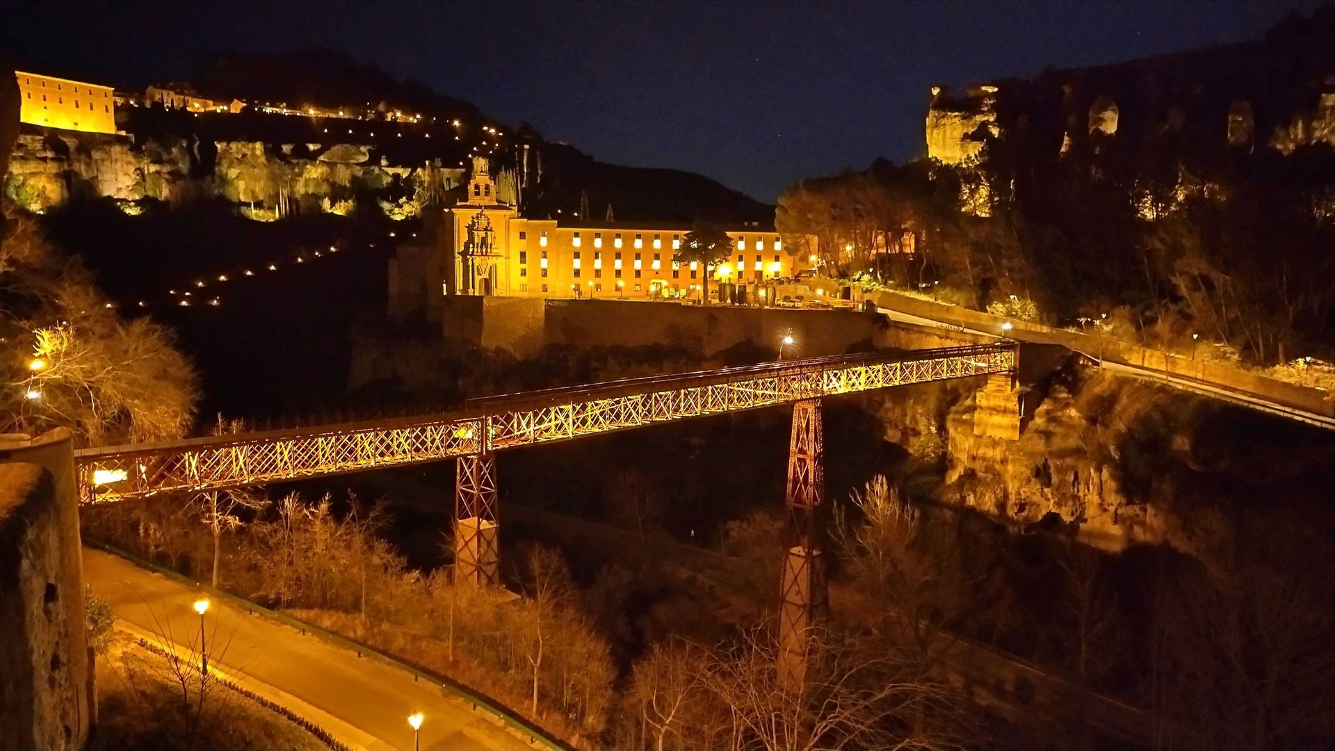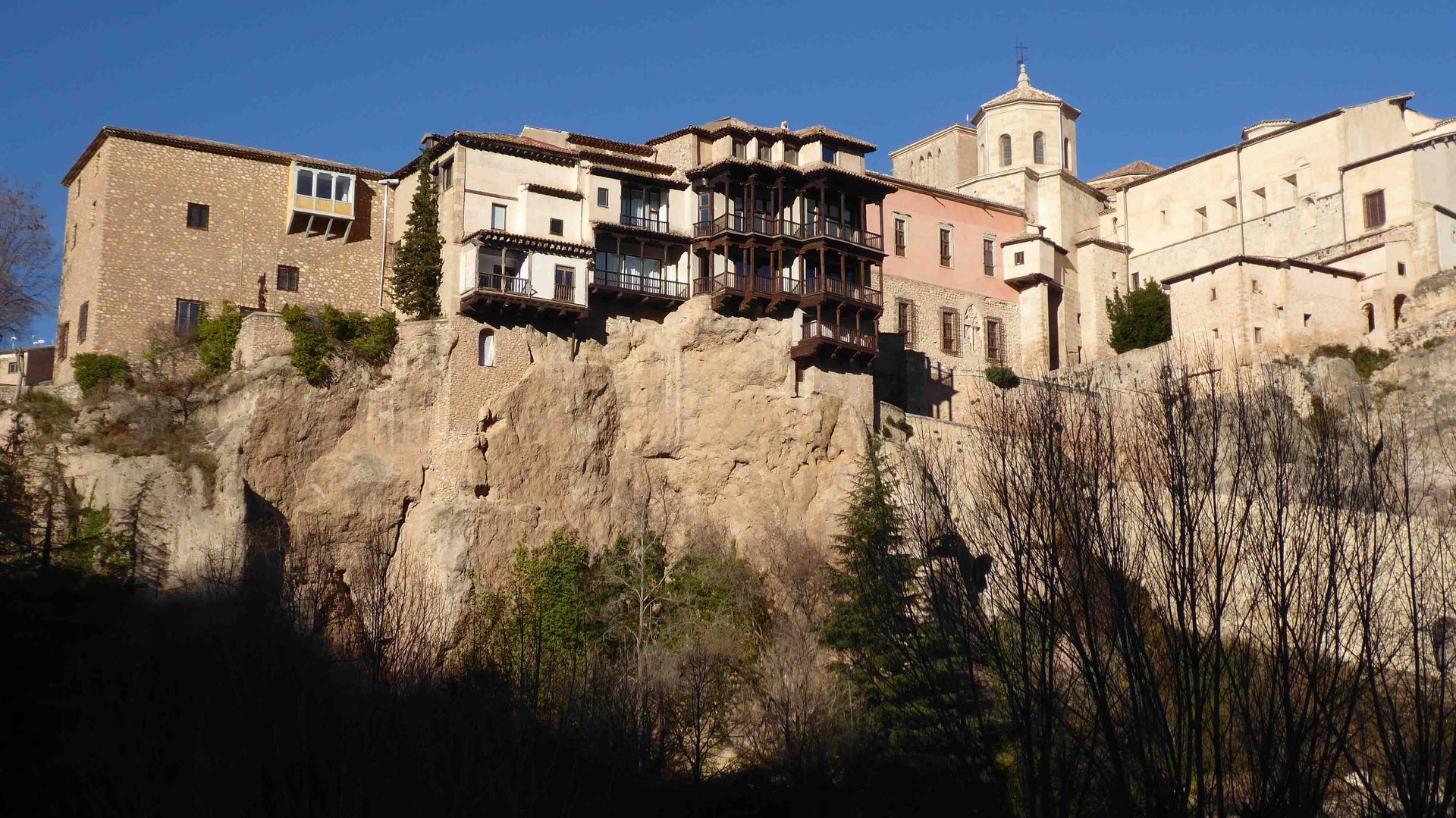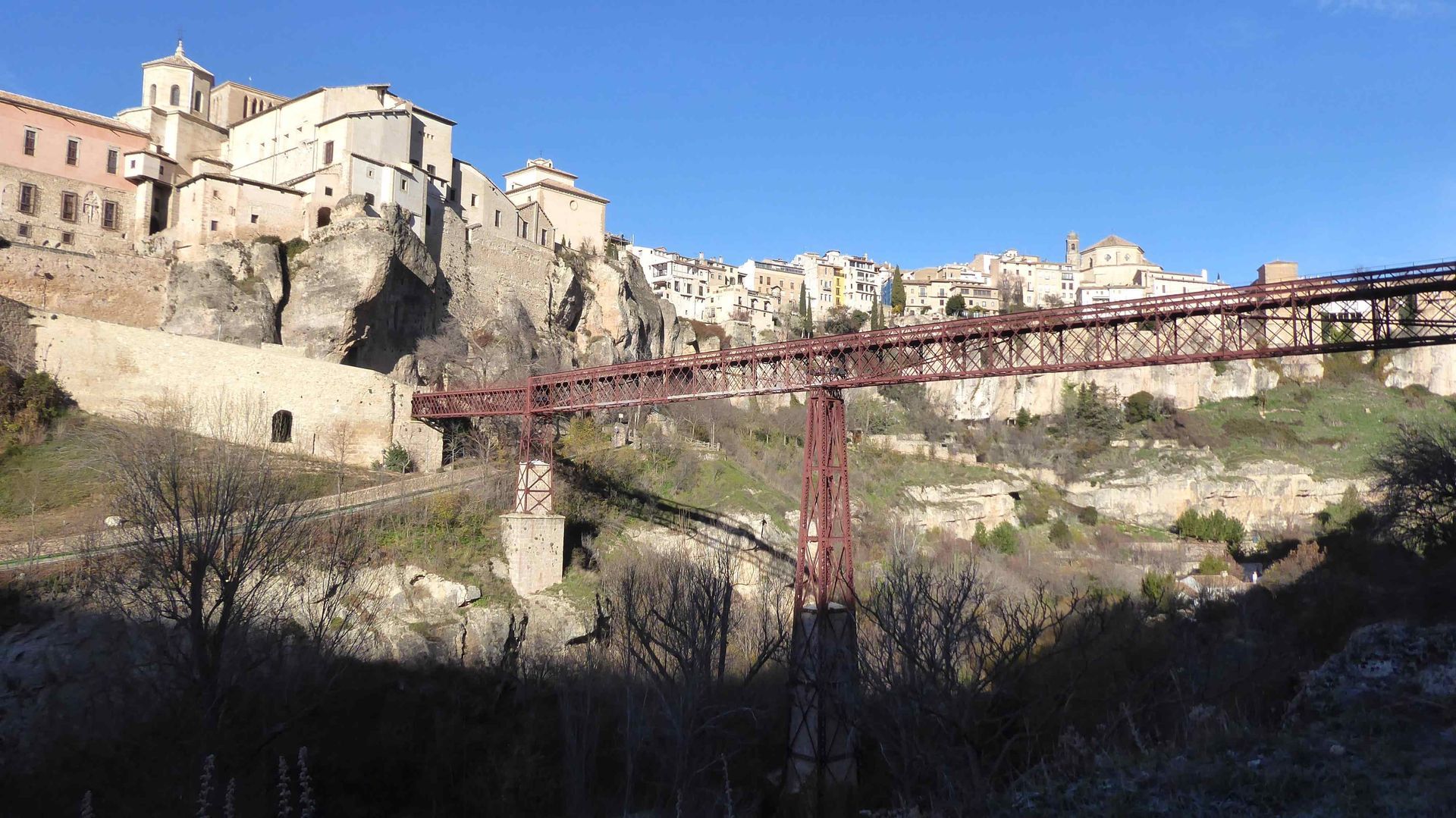In Cuenca stellen wir uns auf einen Parkplatz direkt unter den hängenden Häusern, die im 14. Jh gebaut wurden. In der Abenddämmerung steigen wir steil hinauf in die Stadt auf dem Felsen. Dann kommt der Hunger, leider zur falschen Zeit, es ist erst 18.30 Uhr. Wir fragen an verschiedenen Orten nach. Vor 20.30 Uhr ist nichts Essbares zu kriegen. Auf dem Hauptplatz erbarmt sich dann ein Wirt und kocht für uns um 19 Uhr, wohl besser zwei Gäste bedienen als gar keine.