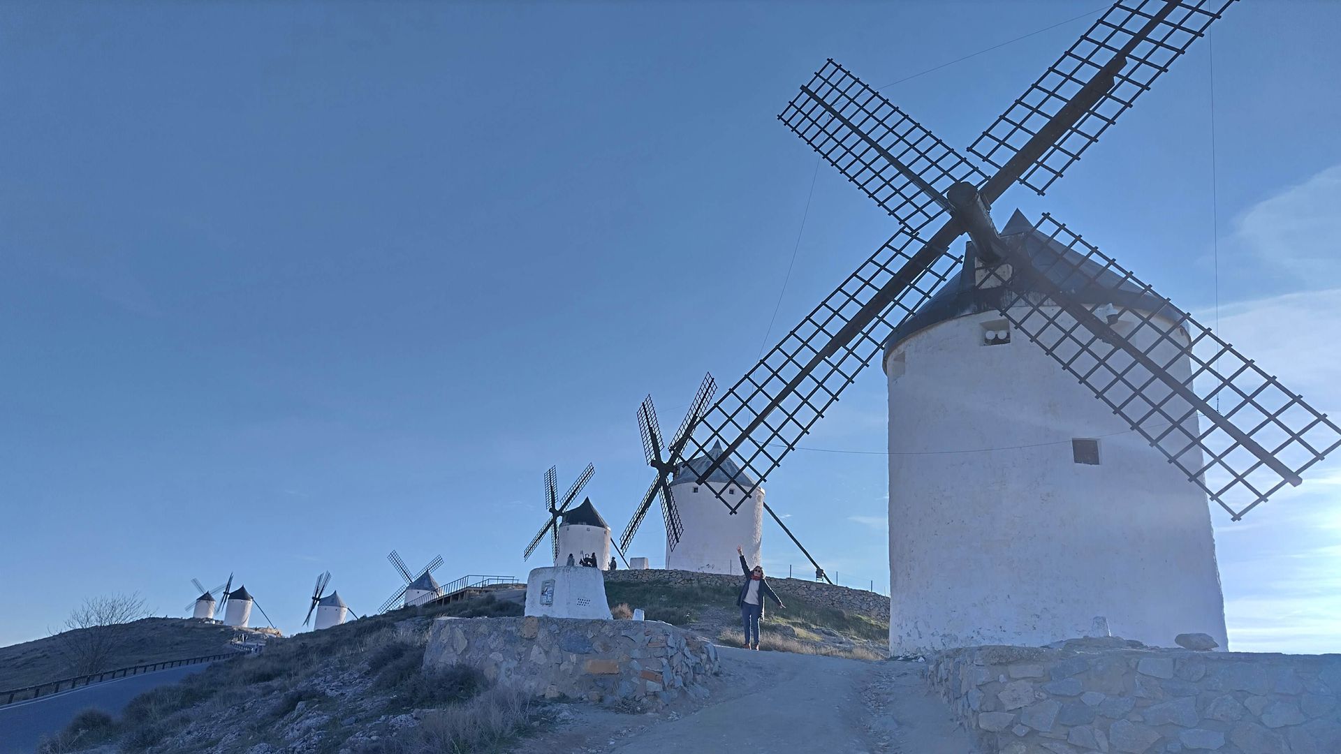 Am andern Morgen ist stockdicker Nebel, wir sehen kaum vor den Bänz. Nach dem Einkauf lichtet er sich zum Glück und wir können die 10 Windmühlen von Campo de Criptana bewundern.