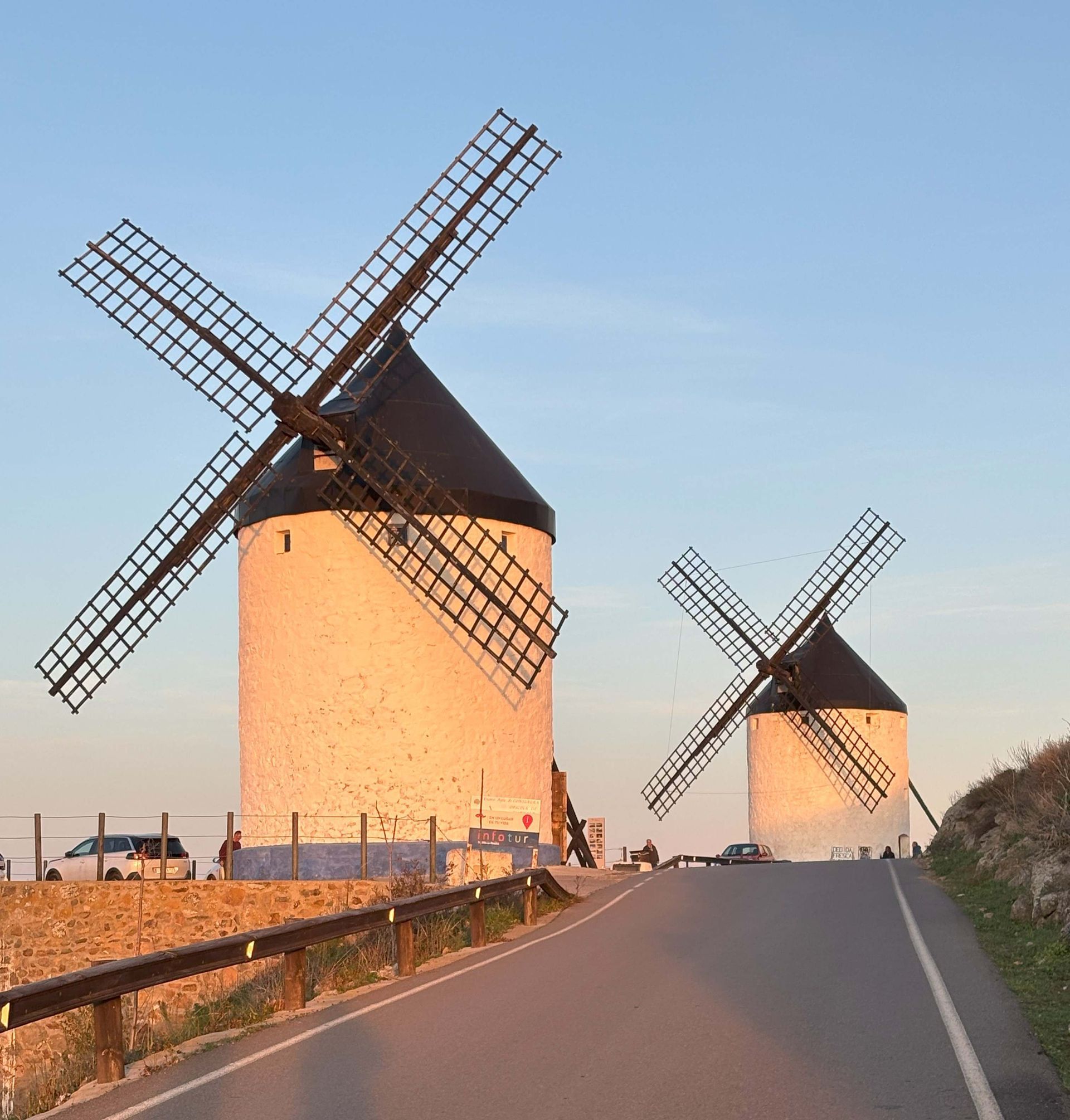 In Consuegra stellen wir uns auf den Parkplatz direkt unter den Windmühlen. Sie sind wohl ein Wahrzeichen von La Mancha wegen der Geschichten von Don Quijote und Sancha Panza von Cervantes. Für Don Quijote waren die Mühlen Riesen, gegen die er kämpfte und sich trotz Warnung von Sancha Panza lächerlich machte. Wir spazieren an allen 11 Windmühlen vorbei, besuchen eine, die offen ist und bewundern die Technik und die Aussicht. Sie waren bis 1930 in Betrieb und mahlten Korn in verschiedenen Feinheiten. Es gibt einen wunderschönen Sonnenuntergang.