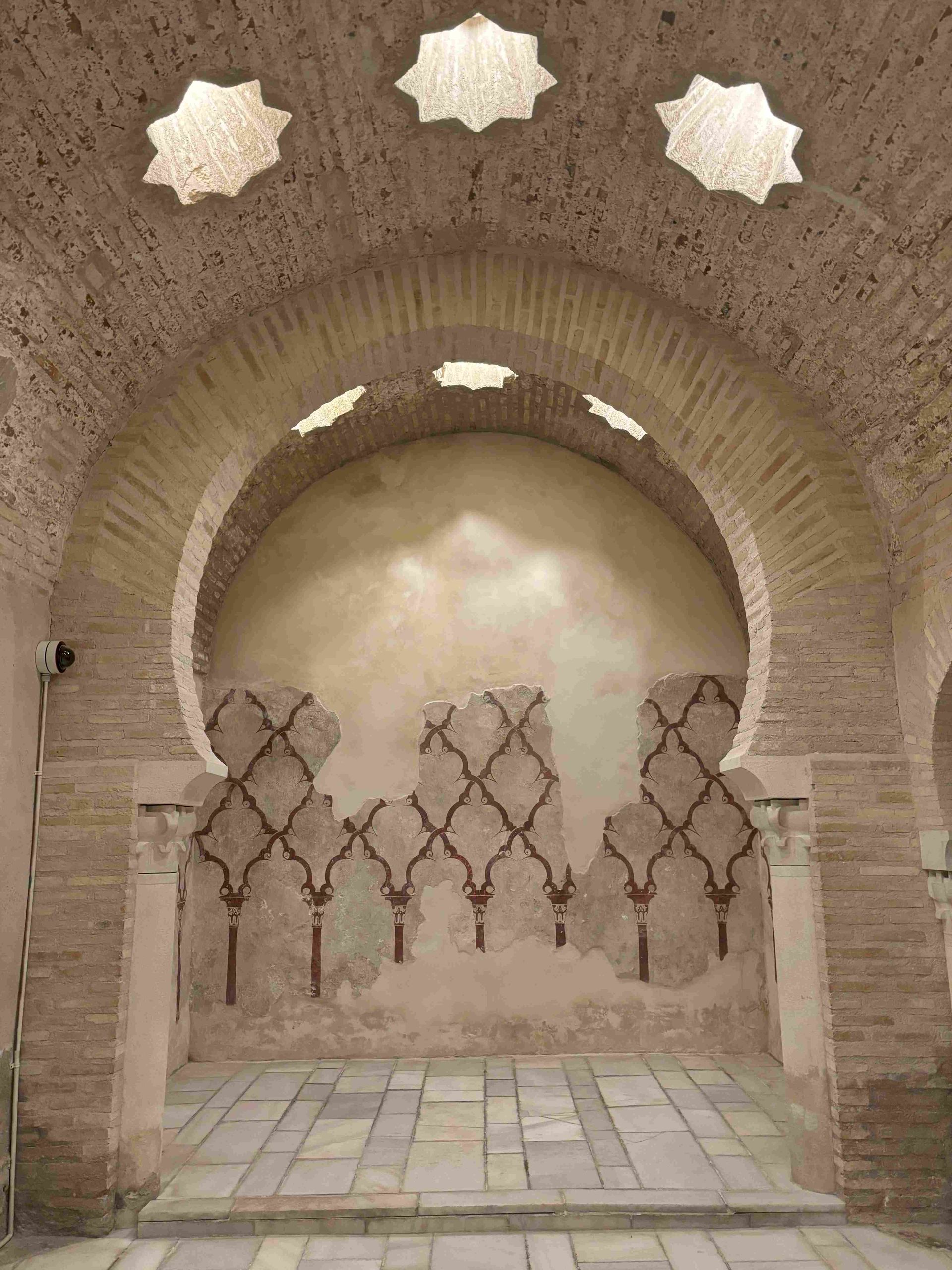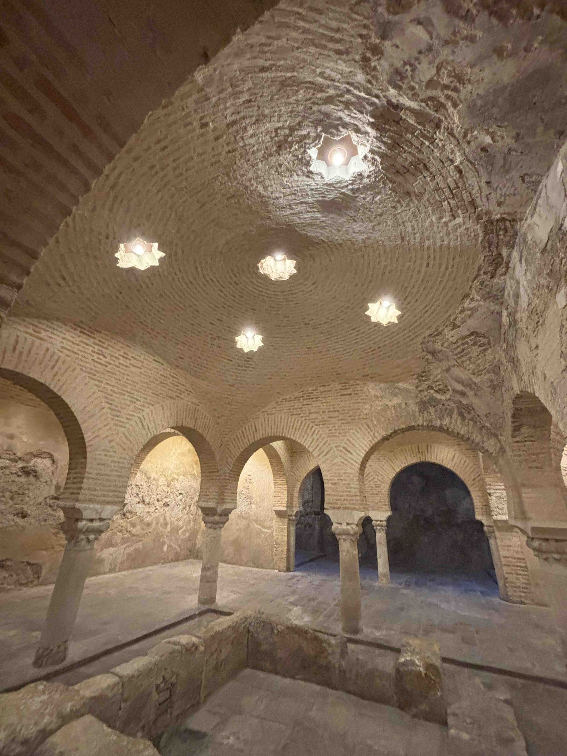 Jaén ist eine Stadt im Norden Andalusiens, die für viele nur Durchfahrt ist. Wir möchten die Arabischen Bäder sehen. Die Parkplatzsuche gestaltet sich als sehr schwierig. Schliesslich stellen wir den Bänz am Bahnhof ab und steigen steil die Stadt hinauf. Und wir werden nicht enttäuscht: So schöne Architektur und dazu noch ein Kulturmuseum ganz gratis. Auf der grossen Terrasse fotografieren wir die atemberaubende Sicht.