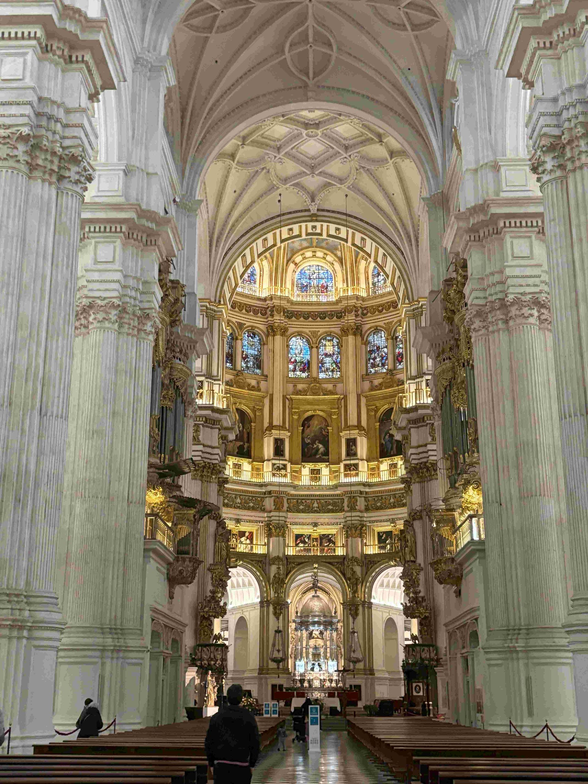 Weiter gehen wir zur Kathedrale de Jaén, die eine der bedeutendsten Sakralbauten von Spanien ist. Nach der Rückeroberung der Stadt 1246 durch die Spanier diente die ehemalige Hauptmoschee als Bischofssitz. 1494 wurde eine gotische Kathedrale gebaut, deren Vierungskuppel 1525 schon einstürzte. 1540 – 1725 wurde die heutige Kathedrale erbaut. Es ist Baukunst vom Feinsten, die Kapellen in der Kirche, die Galerie von romantischen Marienbildern und die Grösse.