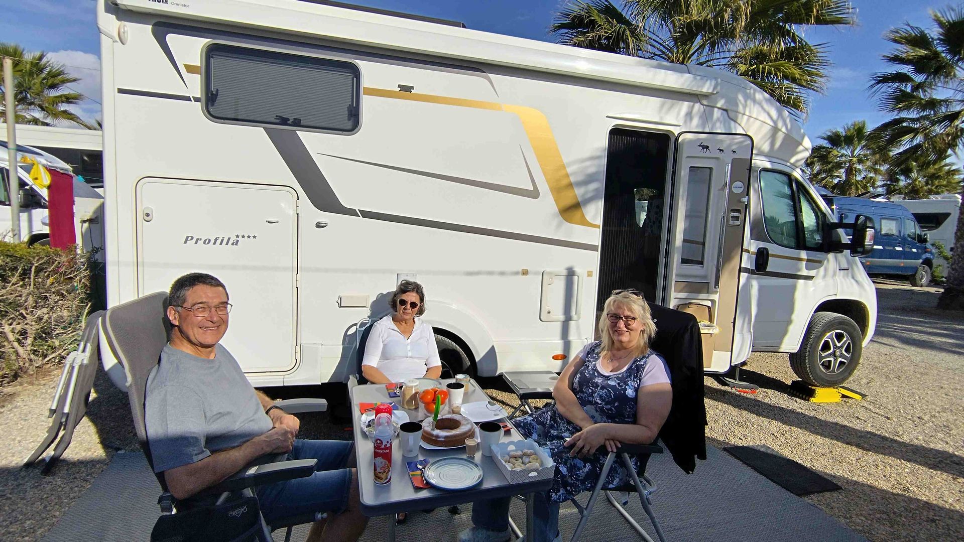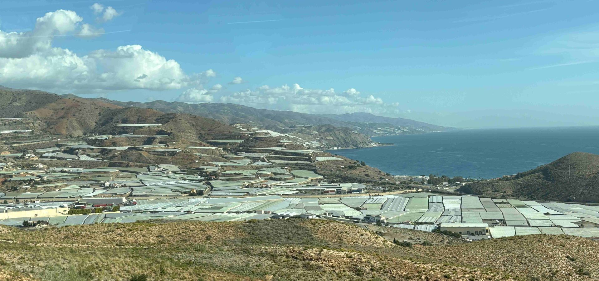Jetzt sind wir am Ziel, am Meer. Wir kommen zuerst ans weisse Plastikmeer. Es sind die Gewächshäuser, in denen das Sommergemüse wächst, das wir im Winter essen. In Balerma bei Almeria haben wir mit Monica und Peter abgemacht, die wir in Trondheim kennenlernten. Sie begrüssen uns mit Hallo und feinem Haselnusskuchen. Wir haben viel zu erzählen und geniessen den Abend.
