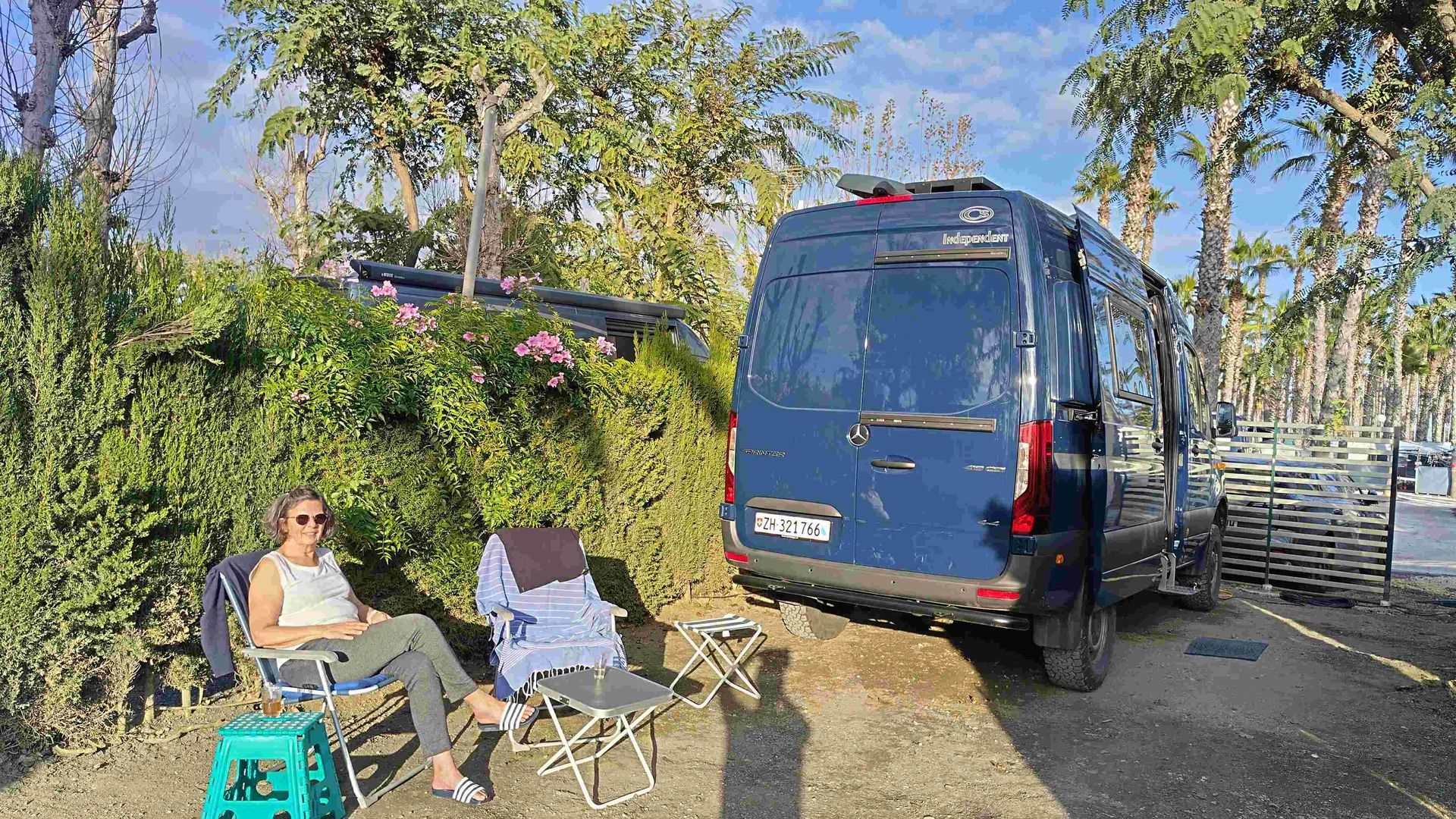 Hier haben wir einen Campingplatz reserviert und wollen Weihnachten und Neujahr verbringen. Er ist 37 km von Malaga entfernt. Wir finden einen sehr sonnigen Platz, bis um 17.30 Uhr besonnt. Unsere Nachbarn sind Margret und Wolfgang, die uns in die Gepflogenheiten des Campings einführen. Margret häkelt «Wollschühchen» im Akkord. Sie sind fantastisch – wir müssen nie mehr kalte Füsse haben. Wäsche muss auch einmal sein und wir geniessen es, am Ort zu bleiben und nicht immer alles zusammen zu packen. Wir montieren die Lichterkette und kochen feines Poulet à la francaise. So feiern wir Weihnachten. Es ist warm und im Windschatten sogar heiss, im Sommer wohl kaum auszuhalten, aber jetzt ein Paradies. In dieses tauchen wir ein.