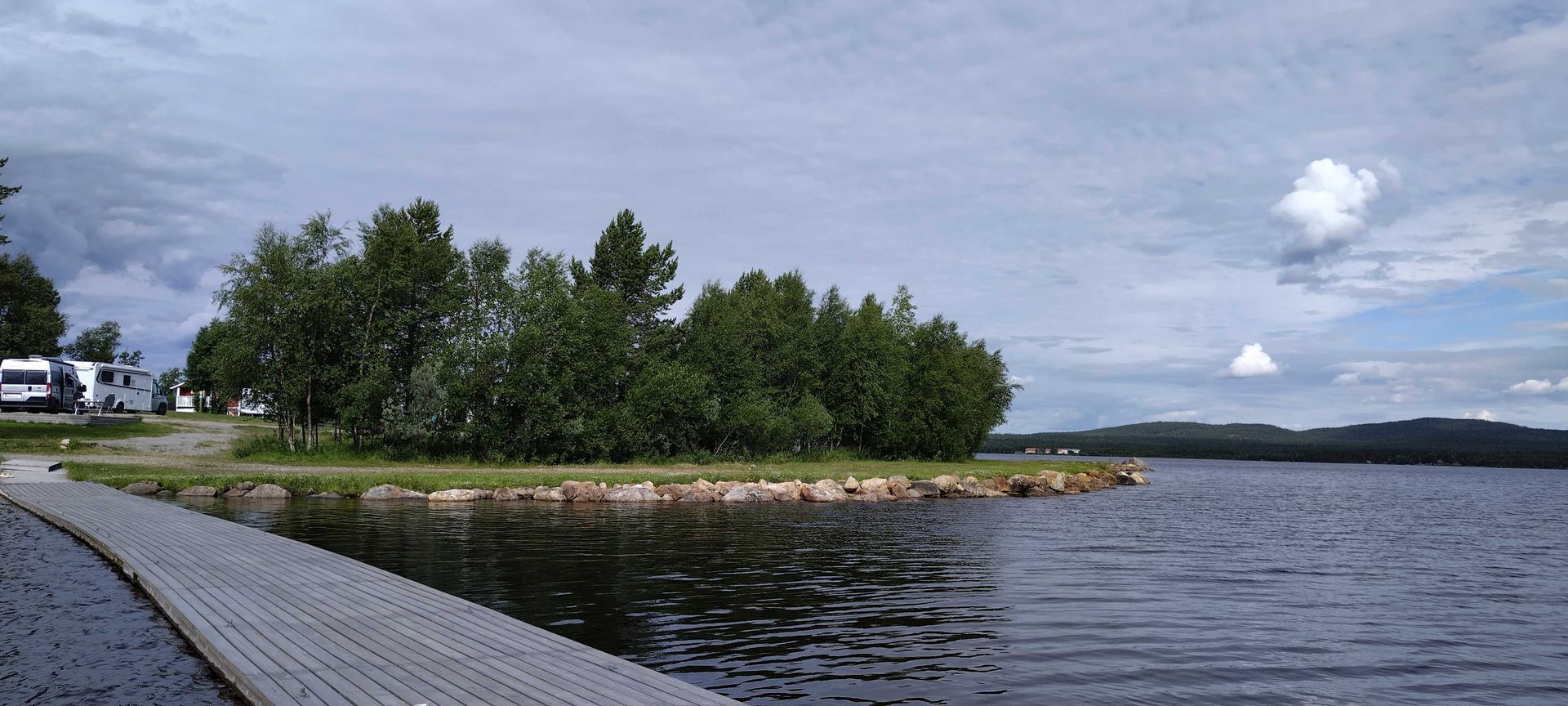 In Inari waren wir schon vor 6 Jahren. Diesmal ist es sehr schönes Wetter und der Bänz hochbeinig, sodass wir nicht Gefahr laufen, den Frischwasserstutzen abzureissen wie letztes Mal mit dem Wigwam. Sonst ist es wie damals: Die abgestandene Luft in der Rezeption, die gleichen wortkargen Betreiber. Der Platz liegt wunderbar am Inarisee.