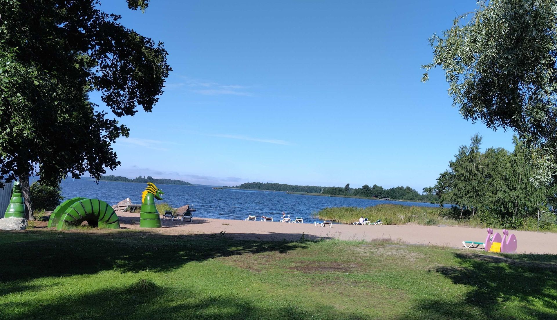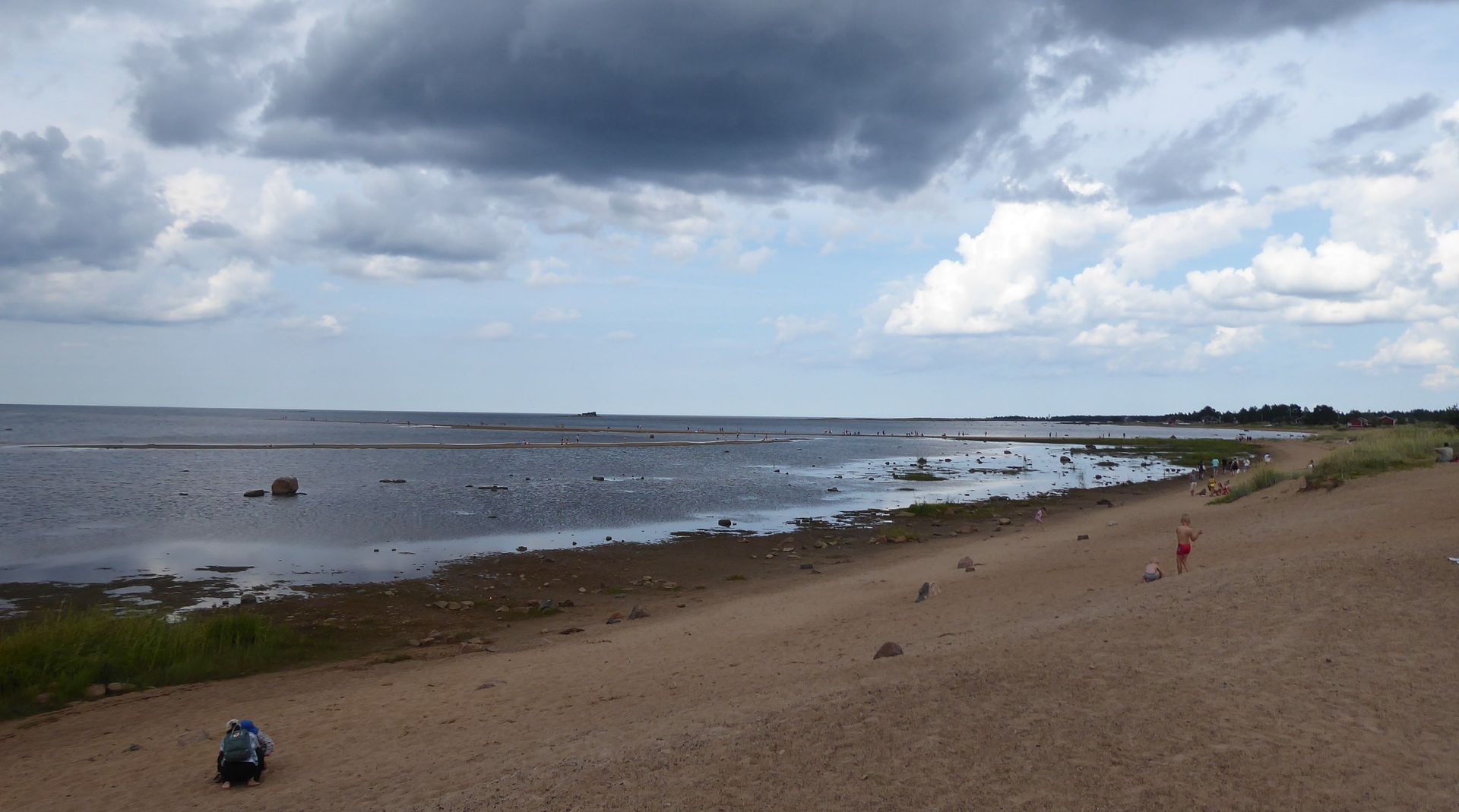 Auf der Weiterfahrt kommen wir an Kalajoki vorbei. Dort sind die ausgedehnten Dünen bekannt und wir haben an diesem heissen Tag die Idee uns im Meer abzukühlen. Aber Pech: Für ein Fuss- oder Wadenbad müssten wir sicher 1 km hinaus waten. Auch Gewitterwolken ziehen auf, darum fahren wir weiter Richtung Vaasa. Es regnet die ganze Nacht.