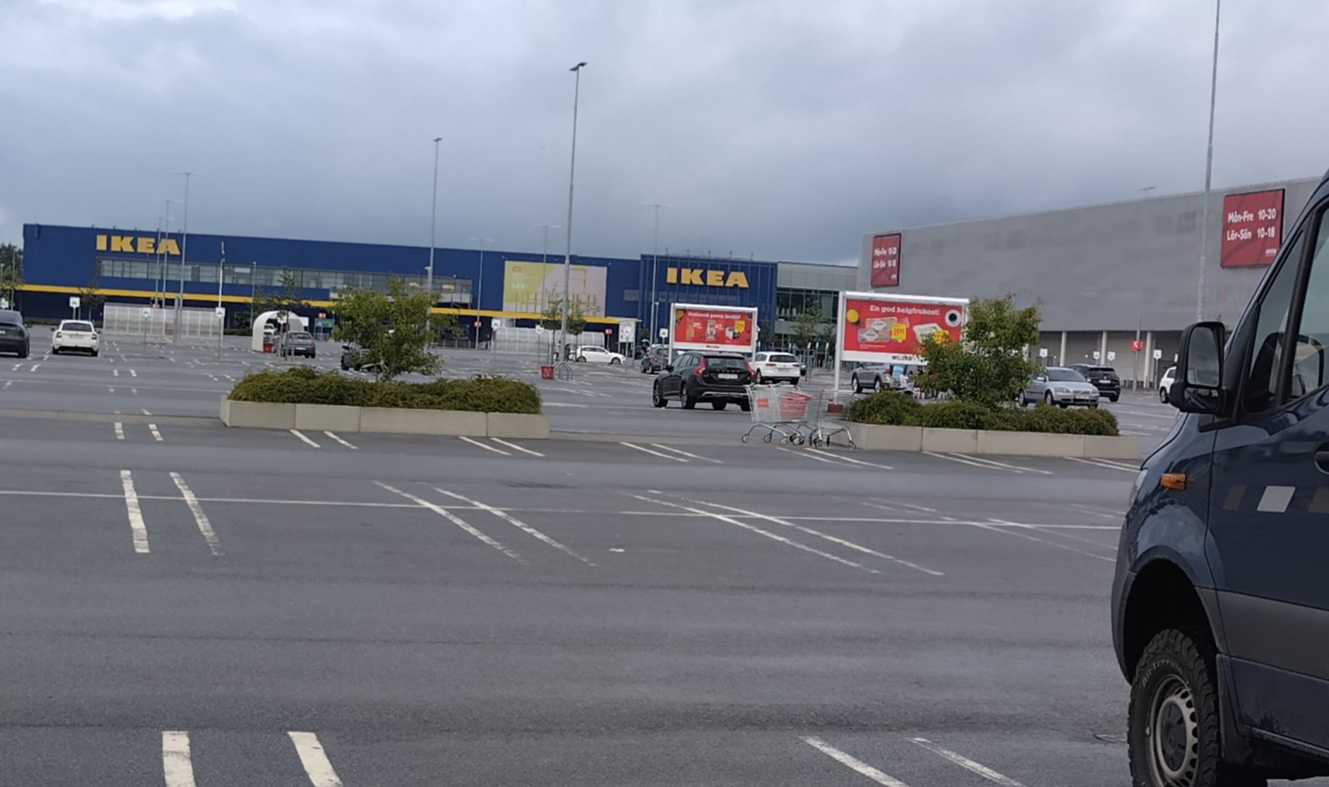 Am Nachmittag fahren wir mit der Fähre nach Umeo in Schweden. Hans möchte gerne am Hafen parkieren, gibt aber das Navi falsch ein. So landen wir auf dem Parkplatz von IKEA. Zum ersten Mal nach zwei Monaten fällt uns die Dämmerung wieder auf, vielleicht auch weil es regnet.
