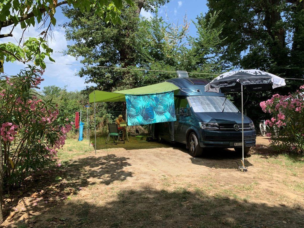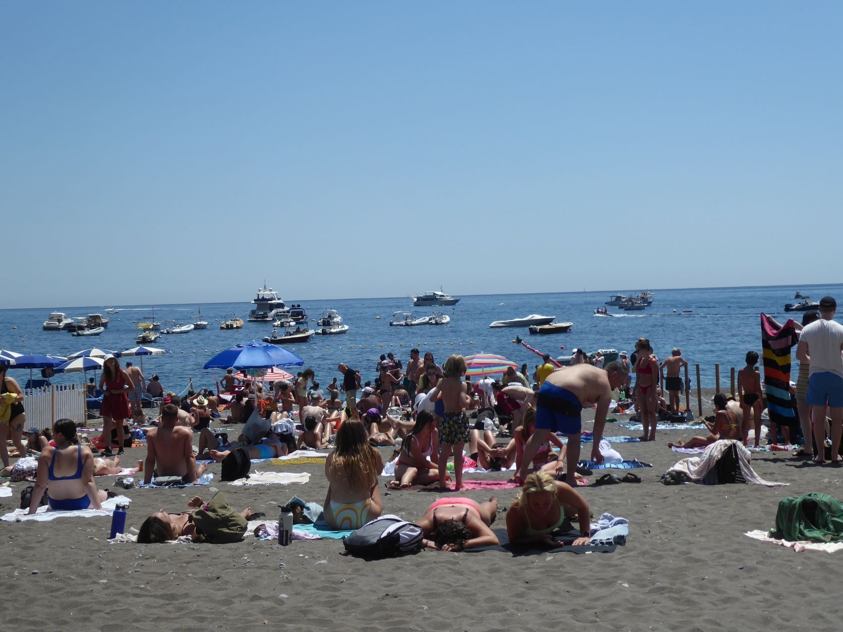 Am Sonntag geben wir unseren Platz frei. Es ist der Letzte für diesen Tag. Wir fahren der Küste entlang Richtung Salerno. Es ist heiss, alle wollen zum Strand – alle Parkplätze besetzt, die Strasse hoffnungslos verstellt. Alle fahren in die Lücken, jeder Quadratzentimeter wird ausgefüllt. Es ist schwierig überhaupt in den nächsten Camping zu kommen. Zum Glück eilt uns der Besitzer zu Hilfe und regelt die Einfahrt.