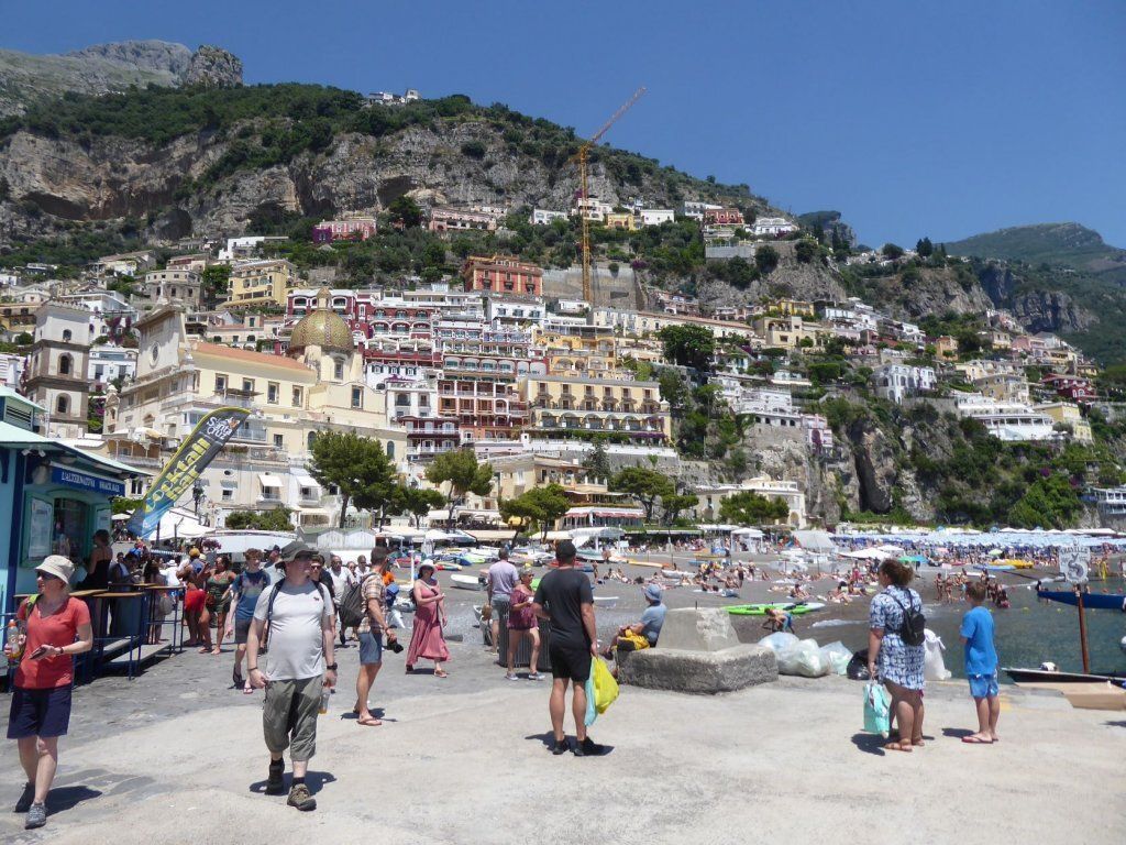 Schon vor Amalfi sehen wir auch das grosse Kreuzfahrtschiff und ahnen Böses – Übertourismus. Und genau so ist es. Schon am Busbahnhof das reinste Chaos, viele Leute, Lärm und Stress. Wir schieben uns auf den Domplatz und ergattern einen Platz im Café. Die vielen Leute vertreiben uns von Amalfi, darum fahren wir nach Positano in der Hoffnung, das Kreuzfahrtschiff sei bei unserer Rückkehr abgefahren. Denkste! Positano ist noch enger und voller und wir erwägen Masken zu tragen und natürlich steht der Koloss noch immer da. Wir beissen in die saure Limone – sehr fein, betrachten den Dom ausgiebig, kämpfen uns eine kleine Runde durch die Hauptgasse und sehnen uns nach der Stille des Campings. Wir fahren wieder zurück. Auf dem Camping radebrechen wir mit den italienischen Nachbarn und nach dem Znacht kommt Vanessa aus Stäfa zu einem sehr persönlichen Gespräch. Doch noch Highlights an diesem Tag. Mein Bruder meinte, man müsse den Übertourismus einmal erlebt haben – danke für den Lehrblätz.