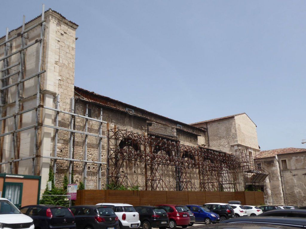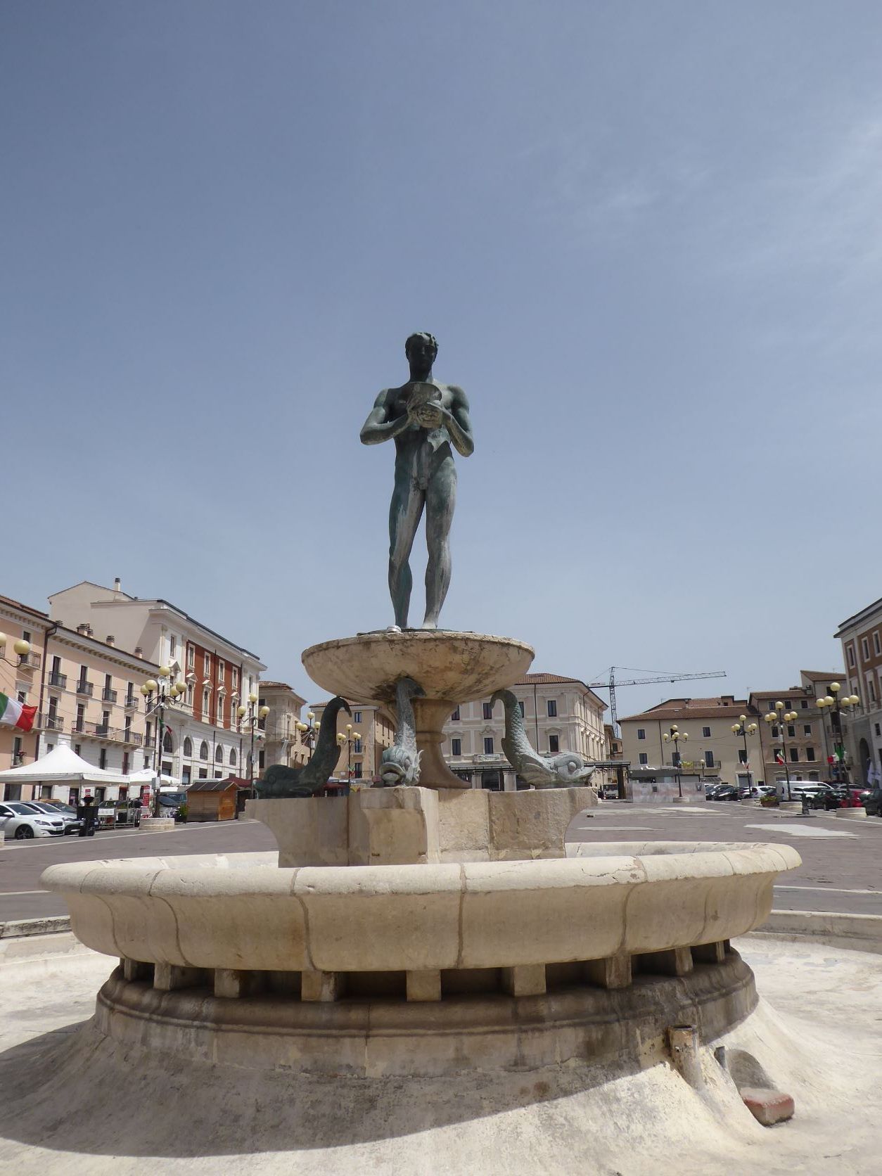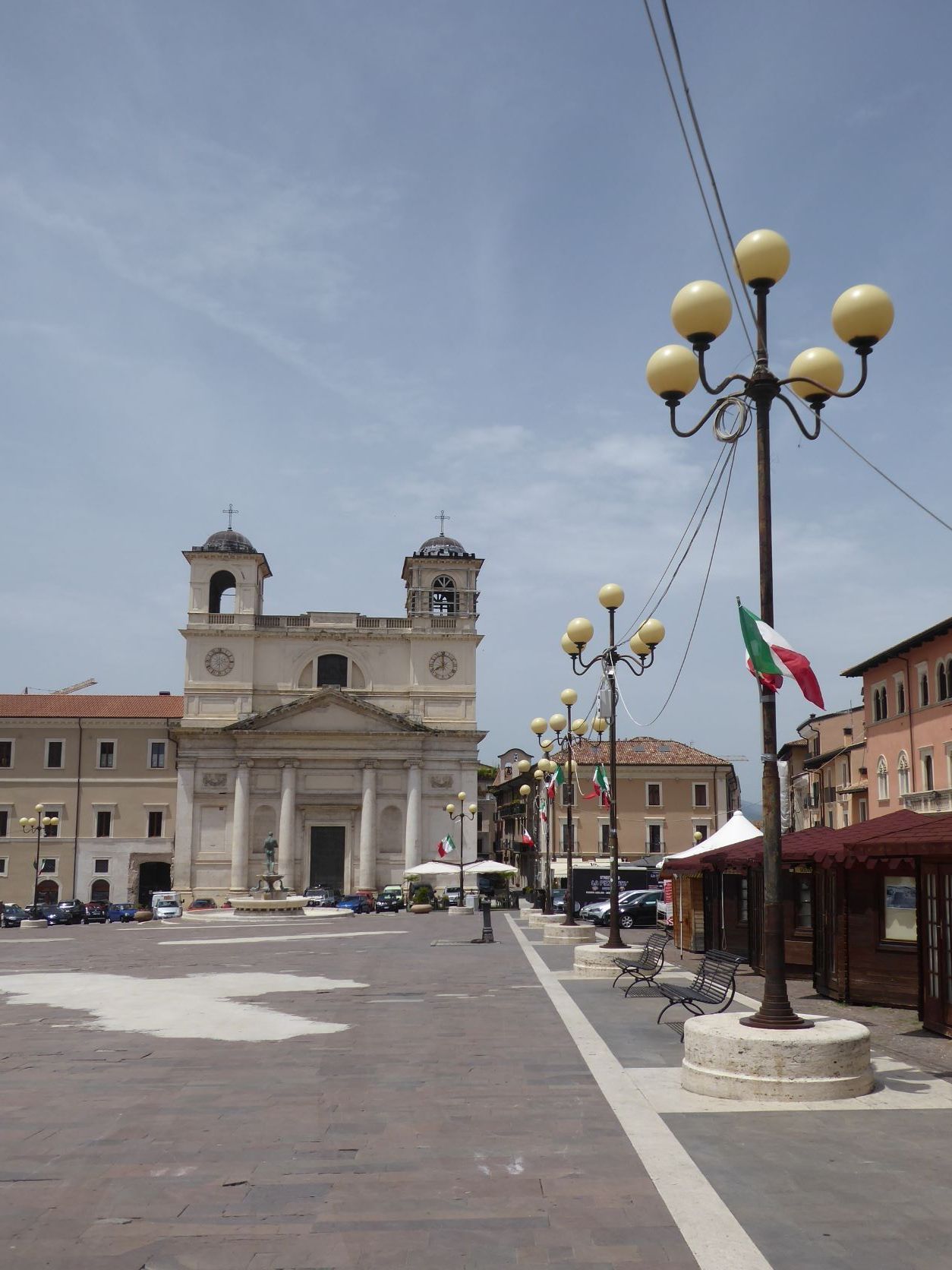 Am Mittwoch, 22. Juni besuchen wir L`Aquila. Hier ist es 37 Grad. Die Stadt wurde 2009 fast ganz von einem schweren Erdbeben zerstört und wird noch immer aufgebaut. Wir schlendern der Via Vittorio Emmanuele entlang. Viele Häuser sind wunderschön wieder aufgebaut, aber die Strasse wirkt leer und leblos. Es gibt wenige Läden und wenige Leute, es fehlt noch die Seele. Ob sie wieder kommt? Am Domplatz essen wir Zmittag, streifen durch die Hintergassen und besuchen am Schluss die Basilika Santa Maria di Collemaggio. Von ihr stand nicht mehr viel. Wir studieren genau wie die Säulen geflickt oder neu gebaut wurden.