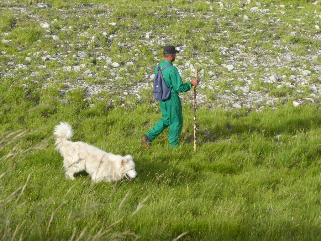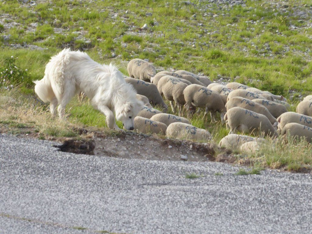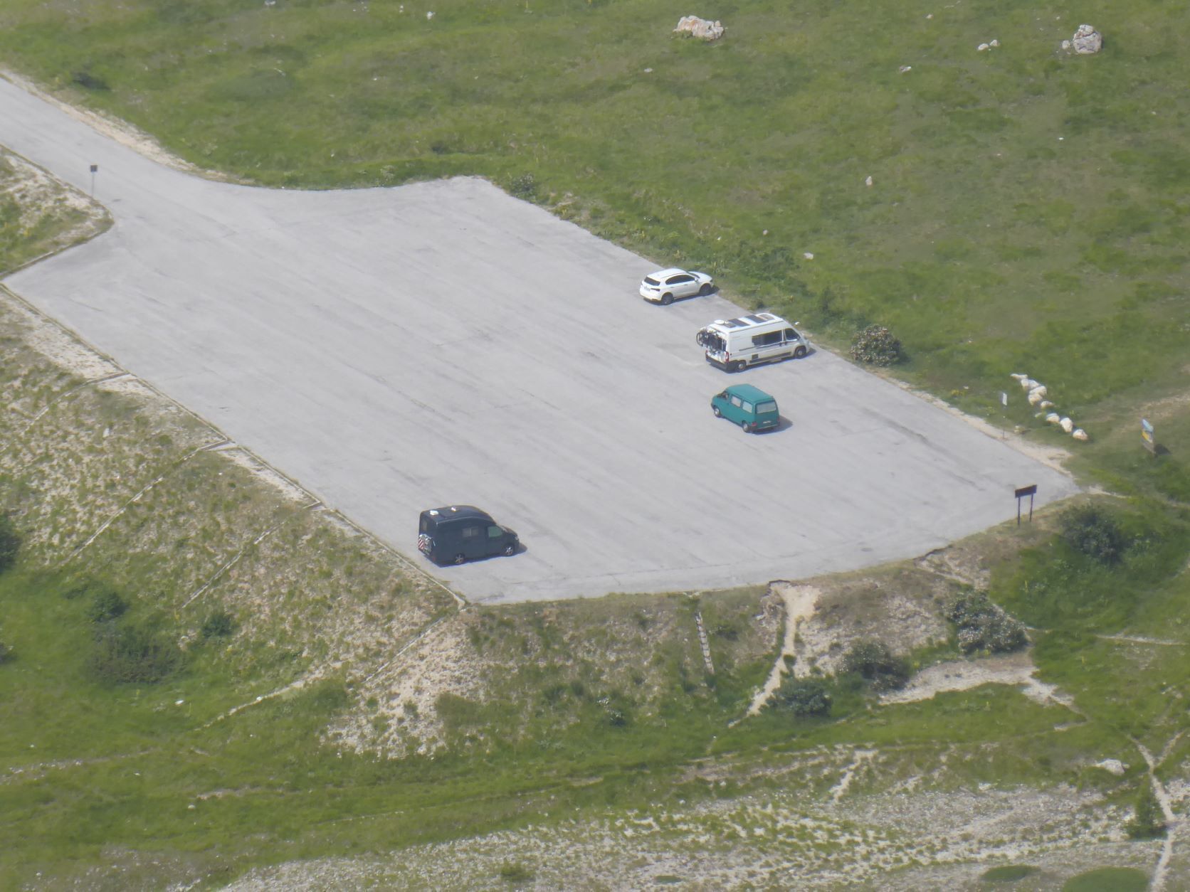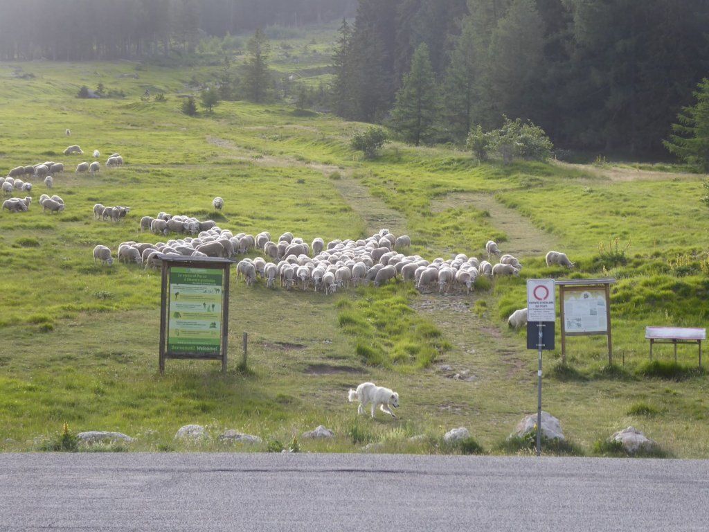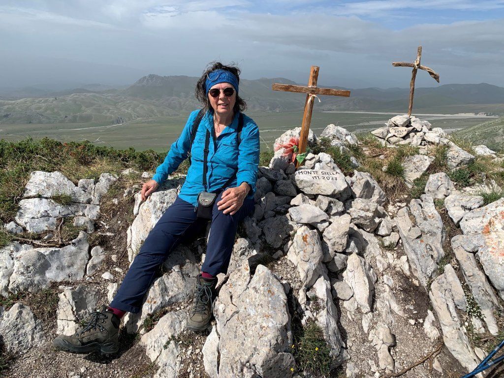 Die nächste Nacht stehen wir fast ganz allein beim Parkplatz Fonte Vetica. Freitag, 24. Juni ist Wandertag. Um 8 Uhr steigen wir los auf den Monte Siella, 2027m. Zuerst geht es steil aufwärts in einer Rinne. Wir kommen auf eine Hochebene mit Kühen in einer kleinen Senke. Der Wind bläst uns fast vom breiten Grat aber wir kämpfen uns unverdrossen weiter bis zum Gipfel. Das Abenteuer fängt erst im Abstieg an. Bei einer Felsstufe ist der Weg unsichtbar und der Wind sehr steif. Das will mir mein liebster Wanderleiter nicht zumuten und schlägt einen seitlichen Abstieg zwischen Gras, Wurzeln und Steinen vor, steil, aber von oben gesehen machbar. Wir begegnen einer Gämse. Hat sie Angst oder warnt sie? Wir steigen sorgfältig ab, immer den Wurzeln ausweichend, die sind glitschig wie Schmierseife. Dann traversieren wir auf dem sicher 40 Grad steilen Gelände. So weichen wir den Felsrippen aus. Es dauert lange – die Angst gar nicht hochkommen lassend und irgendwelches Drama schon in Gedanken vermeidend. Es gilt weiter zu gehen und nur das. Wir kommen zu einem weniger steilen Rücken und vermuten dort den Weg. Wir steigen schräg an und tatsächlich: laut Mapy.cz sind wir auf dem Weg. Langsam sehen wir auch die unsorgfältig gebauten Steinmänner und kommen zum Pass Vado di Siella. Nachdem ich mich versichert habe, dass ein richtiger Wanderweg weitergeht, gönnen wir uns eine Pause. Nach dem Abstieg geht es sicher noch eine heisse halbe Stunde über eine Wiese zum Wigwam hinauf. Wir sind ko, durstig und hungrig, aber ganz fröhlich, dass das Abenteuer gelungen ist. Wir kurven noch weiter bis zum Lago Campotosto, einem Stausee. Rundherum ist Stellplatz, die Wiesenplätze sind gemäht und es stehen schon viele italienische Camper da. In der Nacht sinkt die Temperatur auf 21 Grad, sehr angenehm für einen tiefen Schlaf.