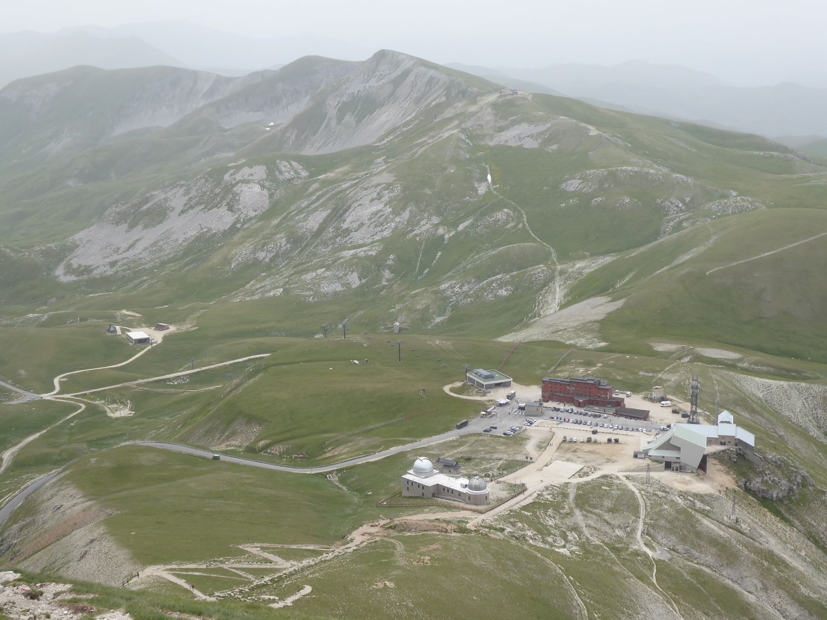 Wir kurven zum Observatorium auf dem Campo Imperatore hinauf und stellen uns mit vielen andern auf den Aussichtsplatz. Die Temperatur nimmt ab und der Wind zu. Das Wigwam wird immer wieder durchgeschüttelt. Wir wandern zum Rifugio Duca delle Abruzzi, ein steiler Serpentinenweg, 250 Hm, das Ziel immer vor Augen. Es gibt eine Rundtour mit dem Corno Grande, dem höchsten Berg der Gegend im Blickfeld. Wieder unten probieren wir die Spezialität der Gegend: Arrosticini, Lammfleisch am Spiess und ein artigianales Bier dazu.