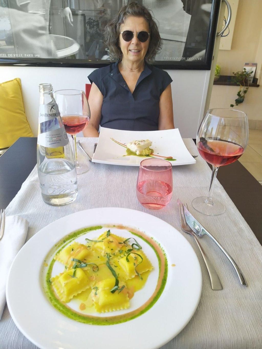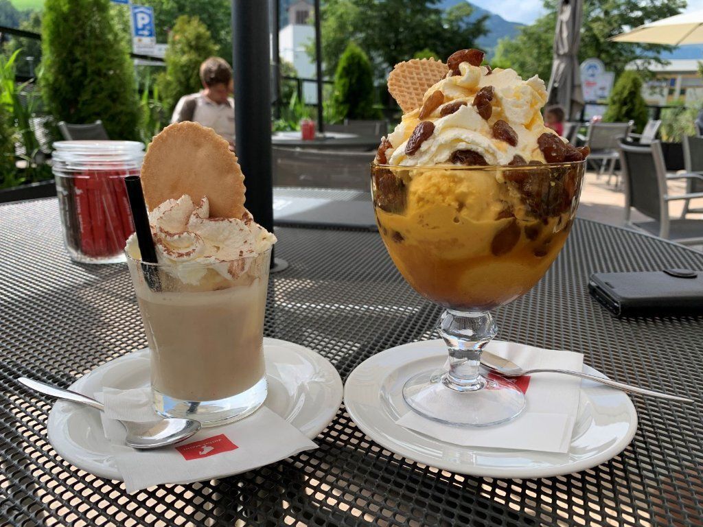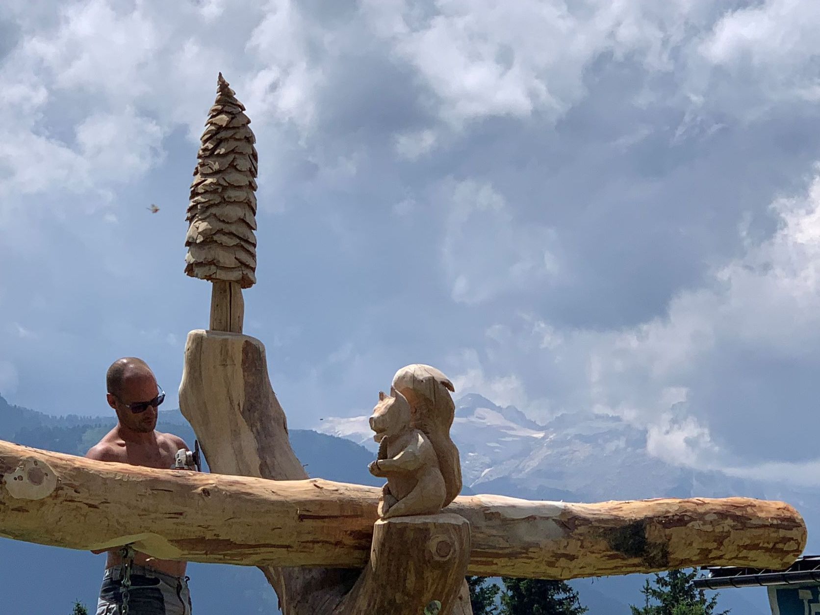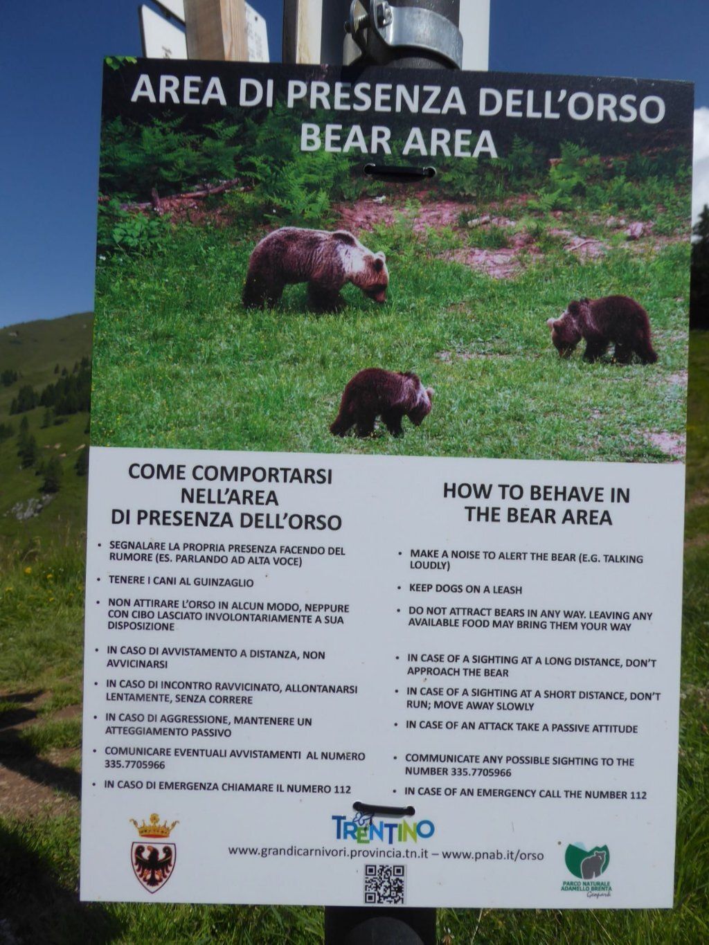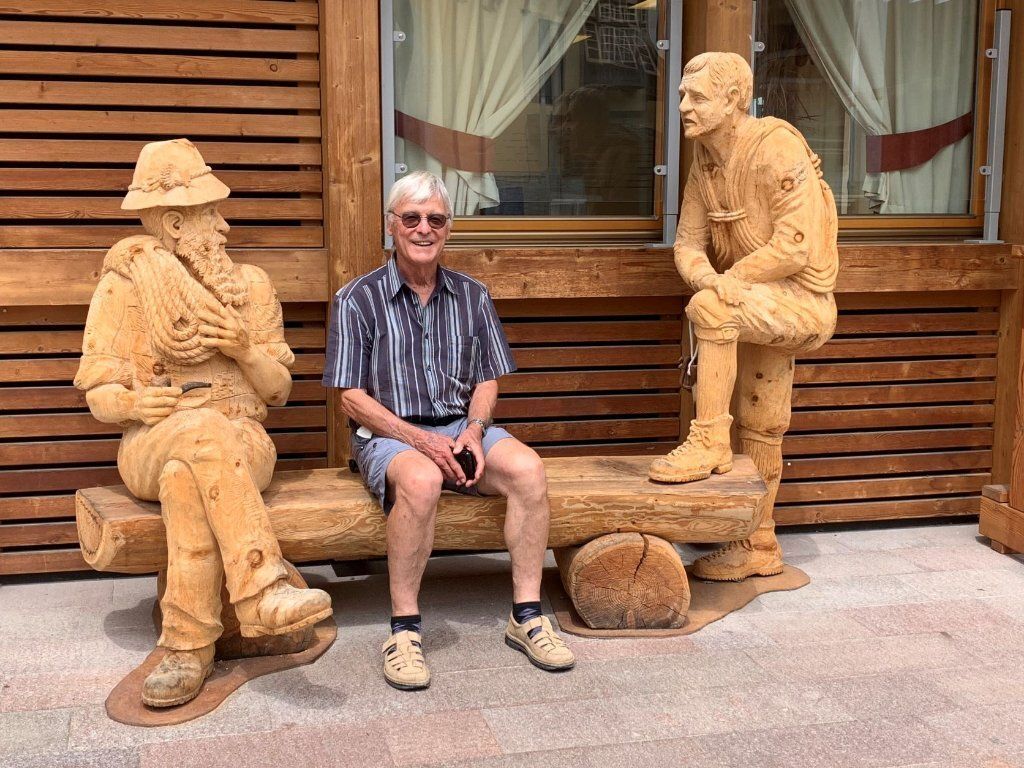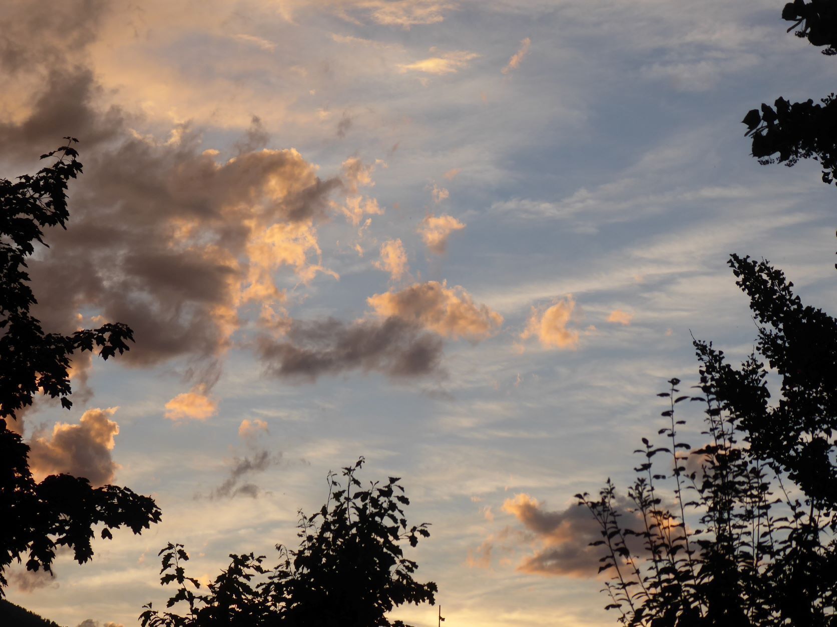 Das Wetter ist jetzt etwas unstabil, hin und wieder ein kleiner Regen und um die Berge türmen sich die Wolken. Am letzten Junitag nehmen wir das Bähnli auf den Dos de Sabion. Eigentlich meinte ich bis zur Mittelstation fahren, dann 500 Hm hochwandern und mit dem Sesselbähnli zurück. Aber Hans wollte doch die Brenta sehen und die Wolken ziehen schon zusammen, also steigen wir doch ab zu Mittelstation. Das Nachtessen geniessen wir im Restaurant Mangabo, im Separée. Es ist romantisch und fein