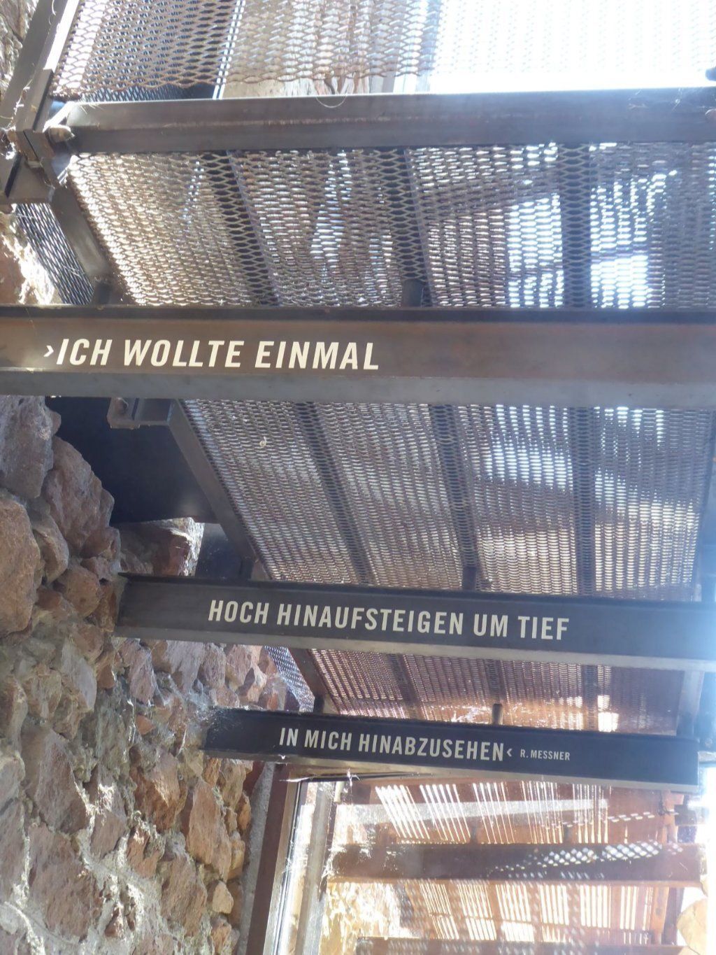 Wir besuchen das Messner Mountain Museum Firmian bei Bozen. Wir sehen und lesen viel Interessantes über Berge, Bergsteiger und Buddhismus. Der berühmteste Bergsteiger erhält uns fit. Die Räume sind in der Ruine und ihren Türmen untergebracht.
