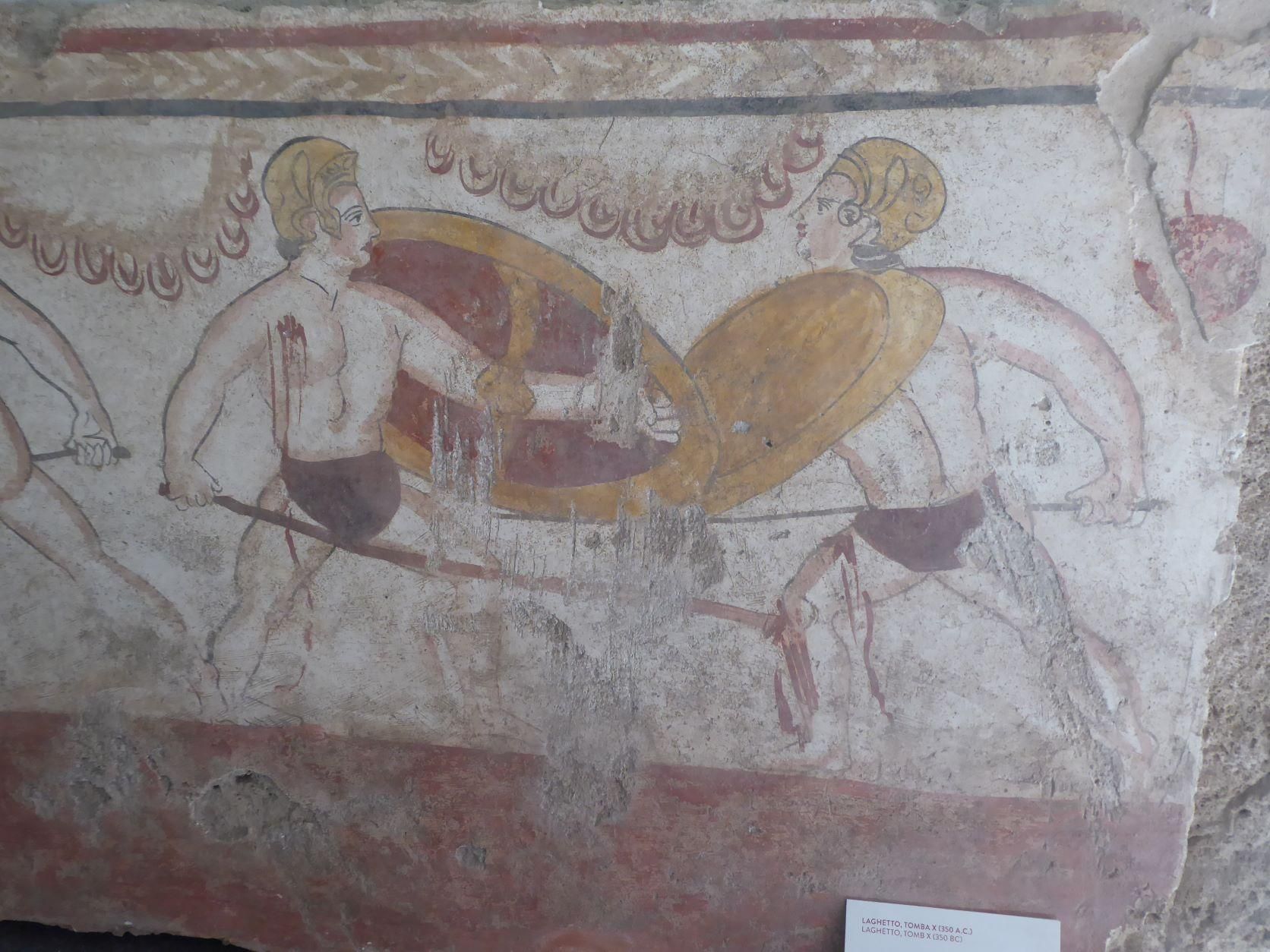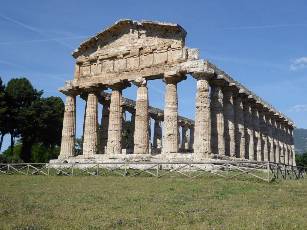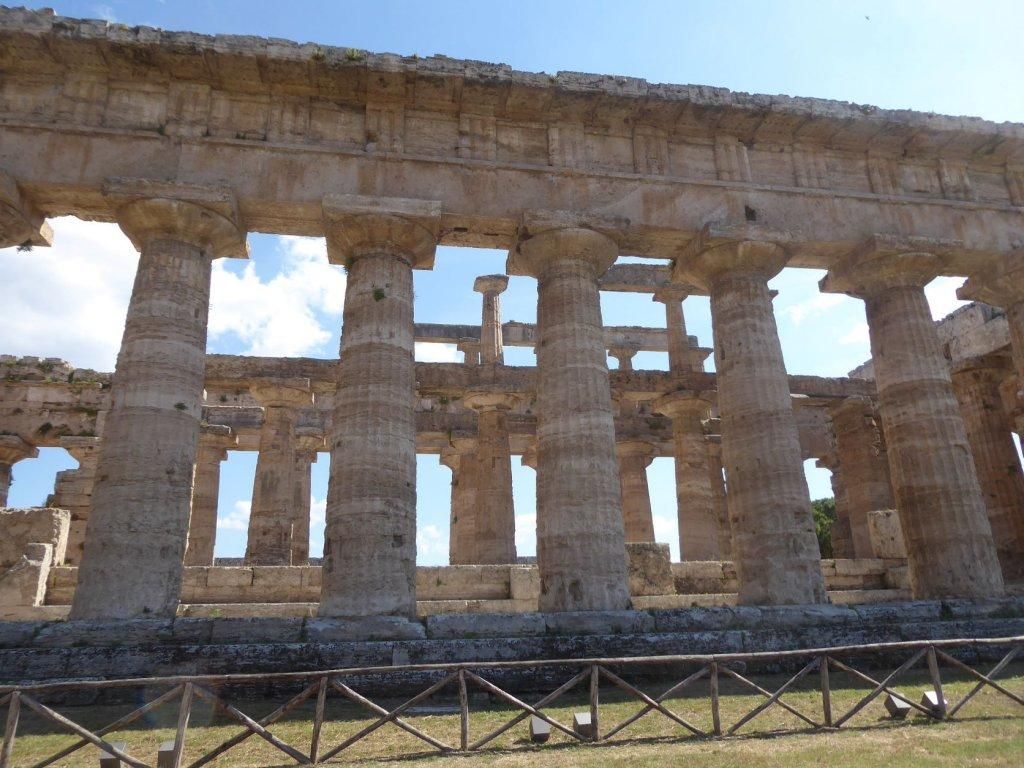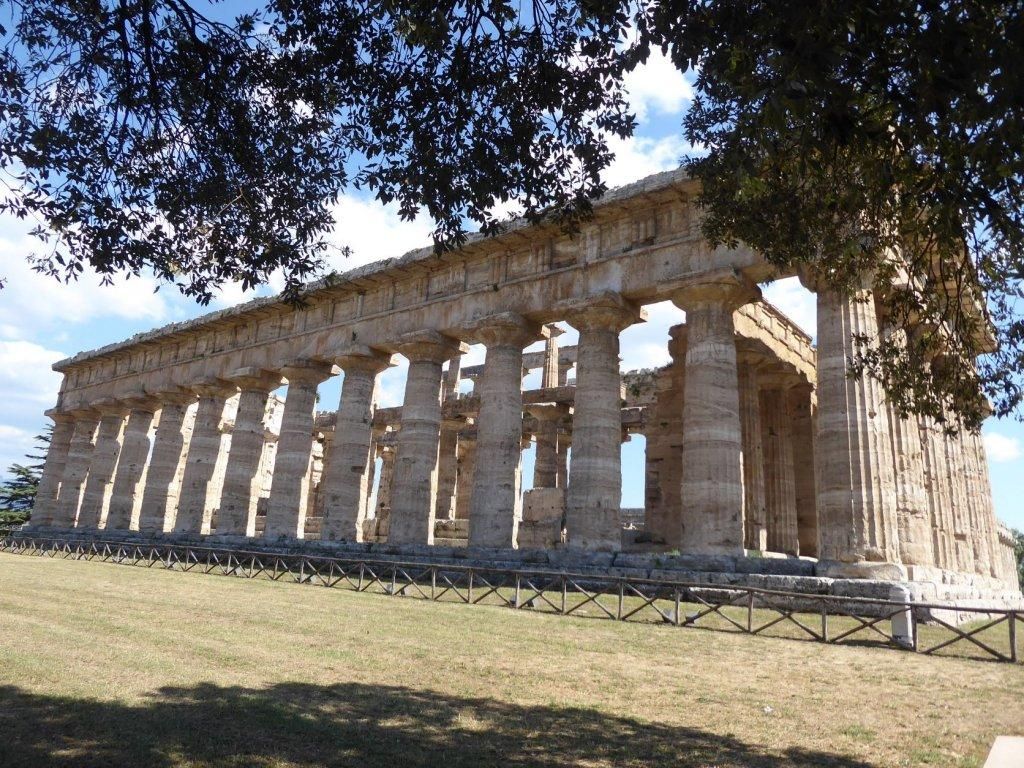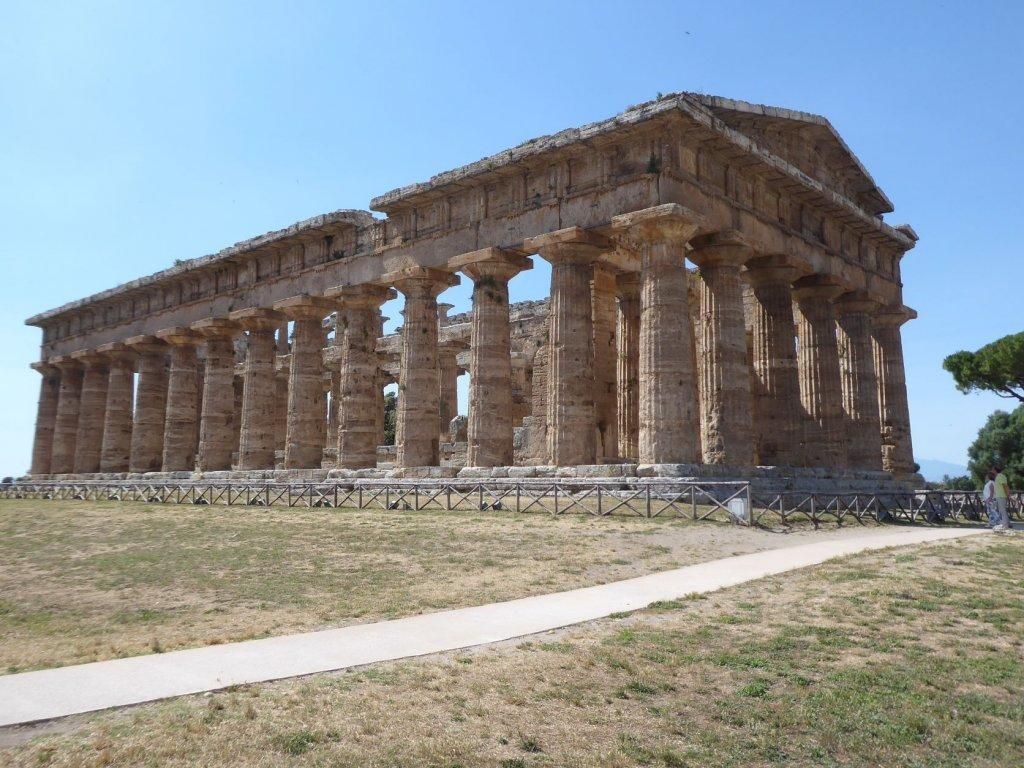 Ich kanns ja nicht lassen. Auf unserem Weg nach Norden liegt noch Paestum mit den schönsten griechischen Tempeln. Wir finden unter Pinien einen Platz und machen uns dann bei Hitze auf den Weg rund um die Anlage, bewundern Neptun-, Athene- und Hera-Tempel, Bauweise und Malereien, schlecken einen Gelato und kühlen uns dann im Meer ab. Der schöne Sandstrand gefällt uns. Wir geniessen Abend- und Morgenbad.