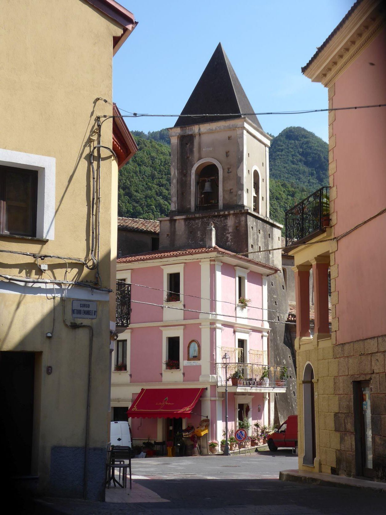 Nach soviel Kultur und so viel Hitze suchen wir Abkühlung und fahren ins Argentinotal nach Orsomarso. Das Dorf ist steil an einen Felsen gebaut. Abkühlung bietet die Gelato artigianale. Wir stellen das Wigwam vor die Golden Valley Ranch und lassen uns von Francesco und seinem Sohn Antonio echt kalabresisch verwöhnen. Es gibt etwa sechs verschiedene Antipastiteller, Ravioli gefüllt mit Ricotta an Steinpilzsauce, Schnitzel und Salsicce mit Salat, als Dolce frische Maulbeeren und der 10-Kräuterschnaps rundet das feine Essen ab. Wir sind die einzigen Gäste und wenn Antonio nicht in der Küche steht, dann schaut er uns beim Essen zu und wir radebrechen auf italienisch. Auf die Frage, wo er kochen gelernt habe, meint er er koche aus der Erinnerung wie seine Frau gekocht habe. Sie hatte Herzinfarkt und Hirnschlag, wurde reanimiert und lebt nun in ihrer ganz eigenen Welt, gepflegt und versorgt von Mann und Sohn. Wir sind tief beeindruckt.