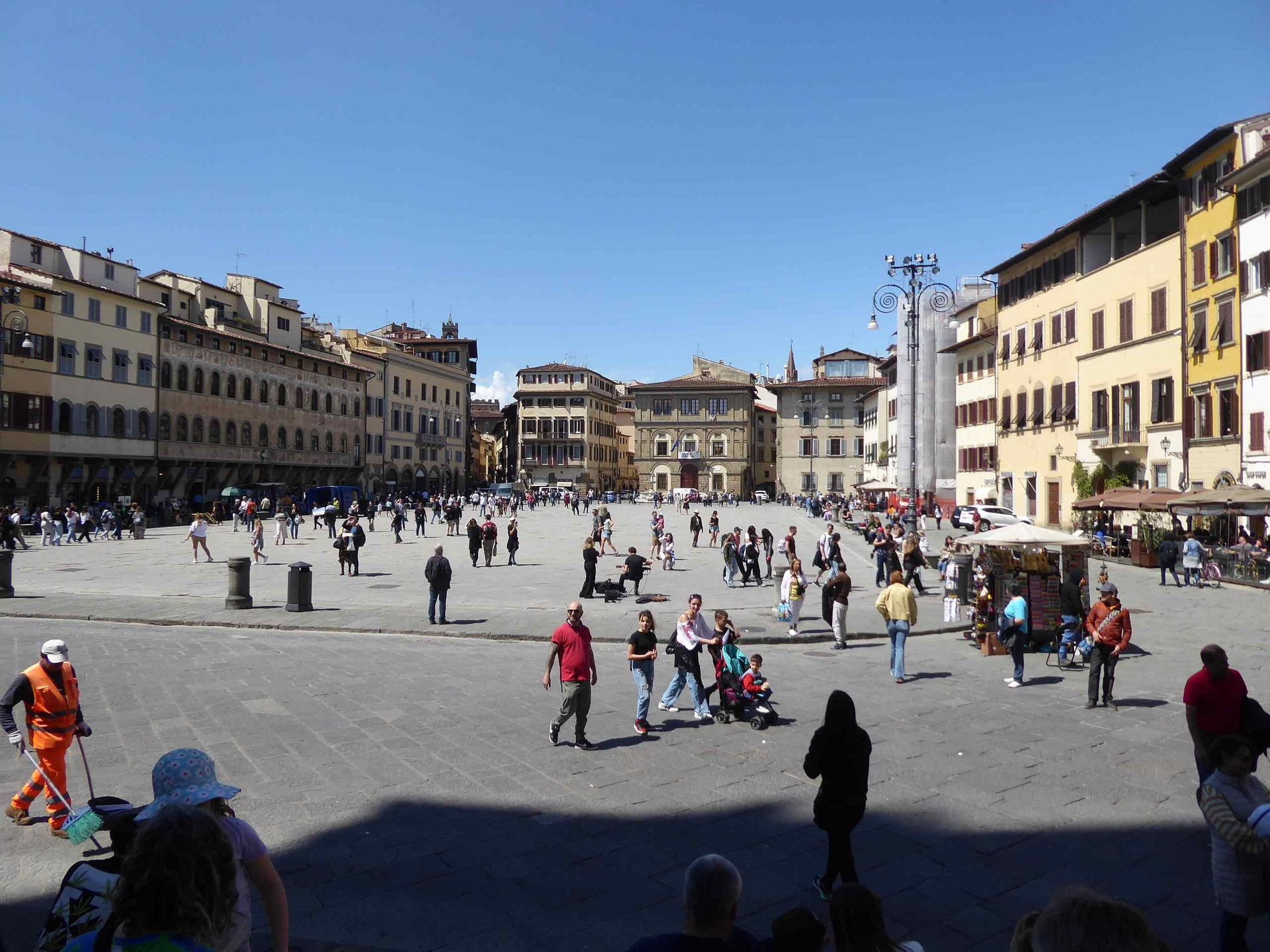Am nächsten Morgen wandern wir zum Tram, das uns zum Bahnhof Santa Maria Novella führt. Sofort stehen wir in grossen Menschenmassen. Mit ihnen schieben wir uns zum Dom und sehen ganz lange Warteschlangen. Jetzt wird klar, warum wir kein Billett für die Domkuppel erhalten haben.