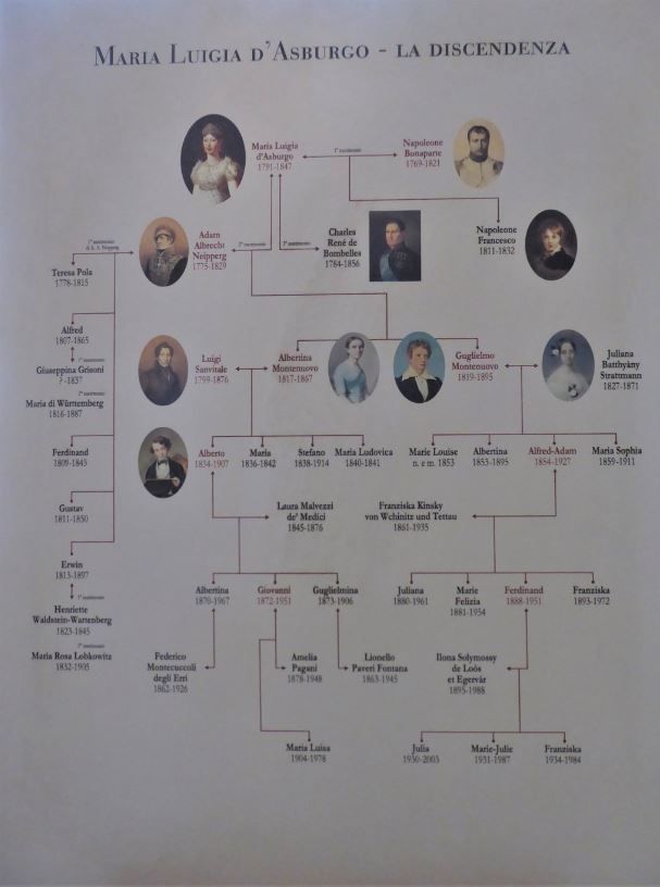 Auf der Fahrt überqueren wir den Po, er ist wirklich halb ausgetrocknet und kein Regen in Sicht. Wir besuchen den Dom, Guiseppe Verdi 1813-1901 und essen fein in der Enoteca Rossa. Dort gibt es 1900 Weinsorten aus aller Welt und etwa 10‘000 Flaschen. Nachdem wir doch noch im zweiten Anlauf einen Stellplatz erobert haben, besuchen wir das Museo Glauco Lombardi. Dort lebte zeitweise Maria Luisa von Habsburg Österreich (1791-1847) mit ihrem Sohn, Napoleon II, nachdem ihr Mann Napoleon in der Verbannung war. Sie war in 2. Ehe mit einem Grafen von Neippberg verheiratet und hatte noch zwei Kinder, Albertine und Willhelm, die das Erwachsenenalter erreichten. Ihr dritter Mann hiess Charles-Rene Bombelles. Die Parmeser schätzten sie als freundliche und liebevolle Person. Wir studieren Stammbaum, Briefe, Bilder, schöne Kleider und Tischdecken.