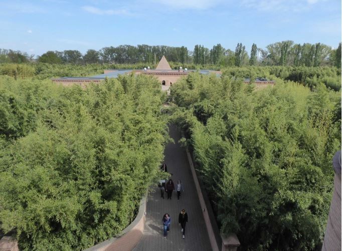 Am nächsten Tag fahren wir Richtung Parma zum Labirinto della Masone von Franco Maria Ricci (FMR, 1937-2020). Er war ein sehr reicher Künstler und Grafikdesigner. Zuerst besuchen wir das Museum und erfreuen uns an den witzigen Bildern, betrachten Bücher über viele Städte und Gegenden. Wir sehen ein Buch über die Schweiz mit Trachten – passend zum Sechseläuten-Wochenende. Besonders war auch eine temporäre Ausstellung eines japanischen Designers mit ganz ausgefallenen Kleidern. Dann suchen wir den Weg in die Mitte des Bambuslabyrinths. Es besteht aus 300 Sorten Bambus. FMR hat einfach einmal Bambus angebaut bis ihm die Idee des Irrgartens kam – eine gute Idee.