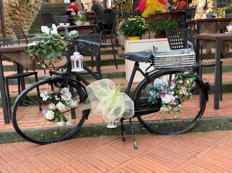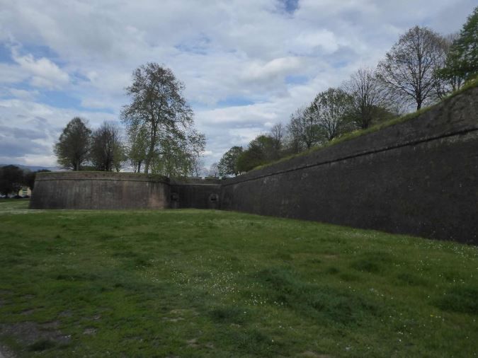 Dann fahren wir nach Lucca. Der Stellplatz am nächsten der Altstadt ist hinter einer Garage. Zuerst umrunden wir die Stadt auf der Stadtmauer. Sie ist sternförmig, 4,2km lang und sehr gut erhalten. An verschiedenen Orten können diese Velokutschen gemietet werden. Das ist besonders bei den Jungen beliebt und entsprechend ist der Lärm.