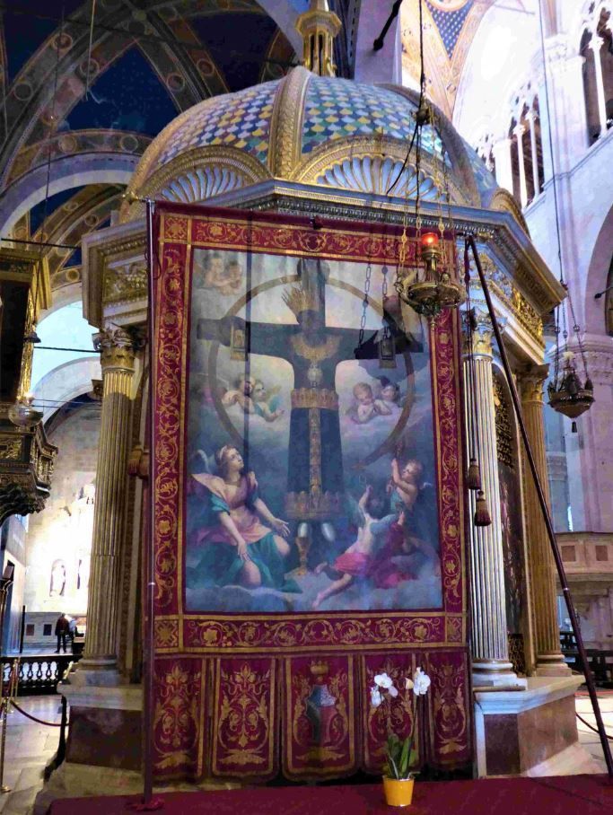 Tags darauf besuchen wir einige der viele Kirchen und erklimmen über 230 Stufen den Torre Guinigi. Oben ist die Sicht fantastisch und da wachsen sogar Steineichen. Im Dom finden wir eine Rarität: Jesus am Kreuz ist nicht leidend dargestellt, sondern als König – eine starke theologische Aussage. Ich bin fasziniert. Leider wird es gerade restauriert.