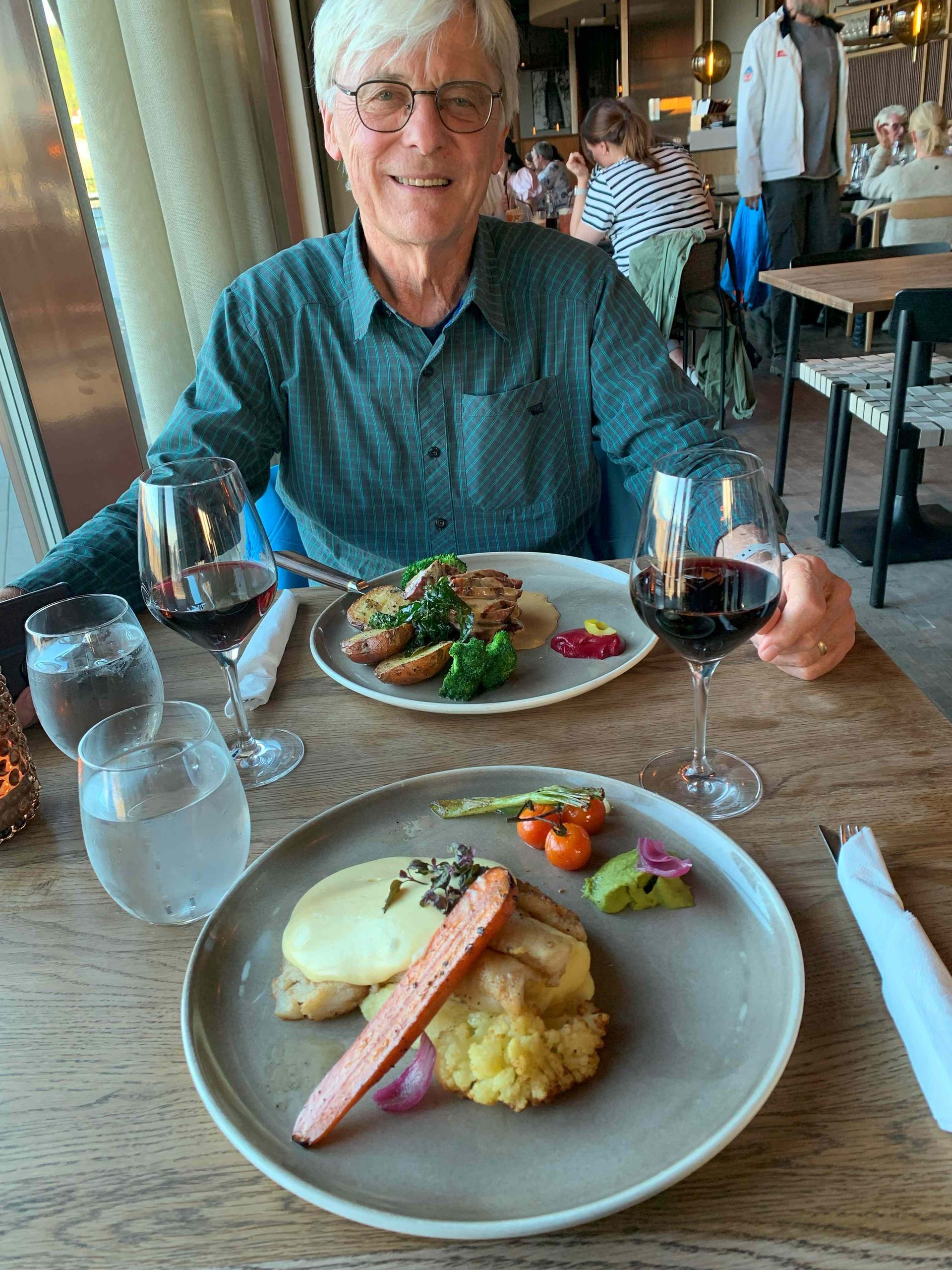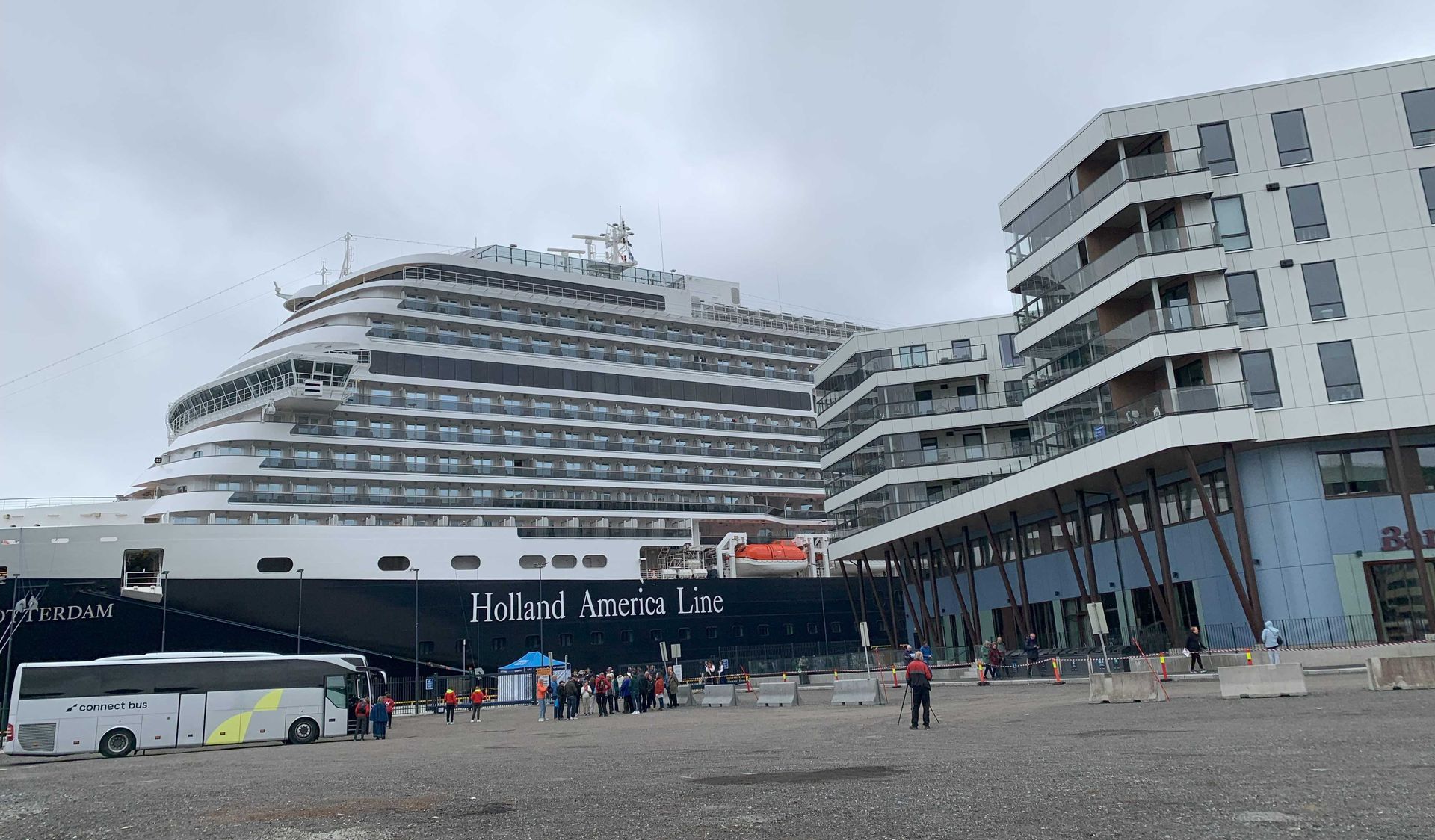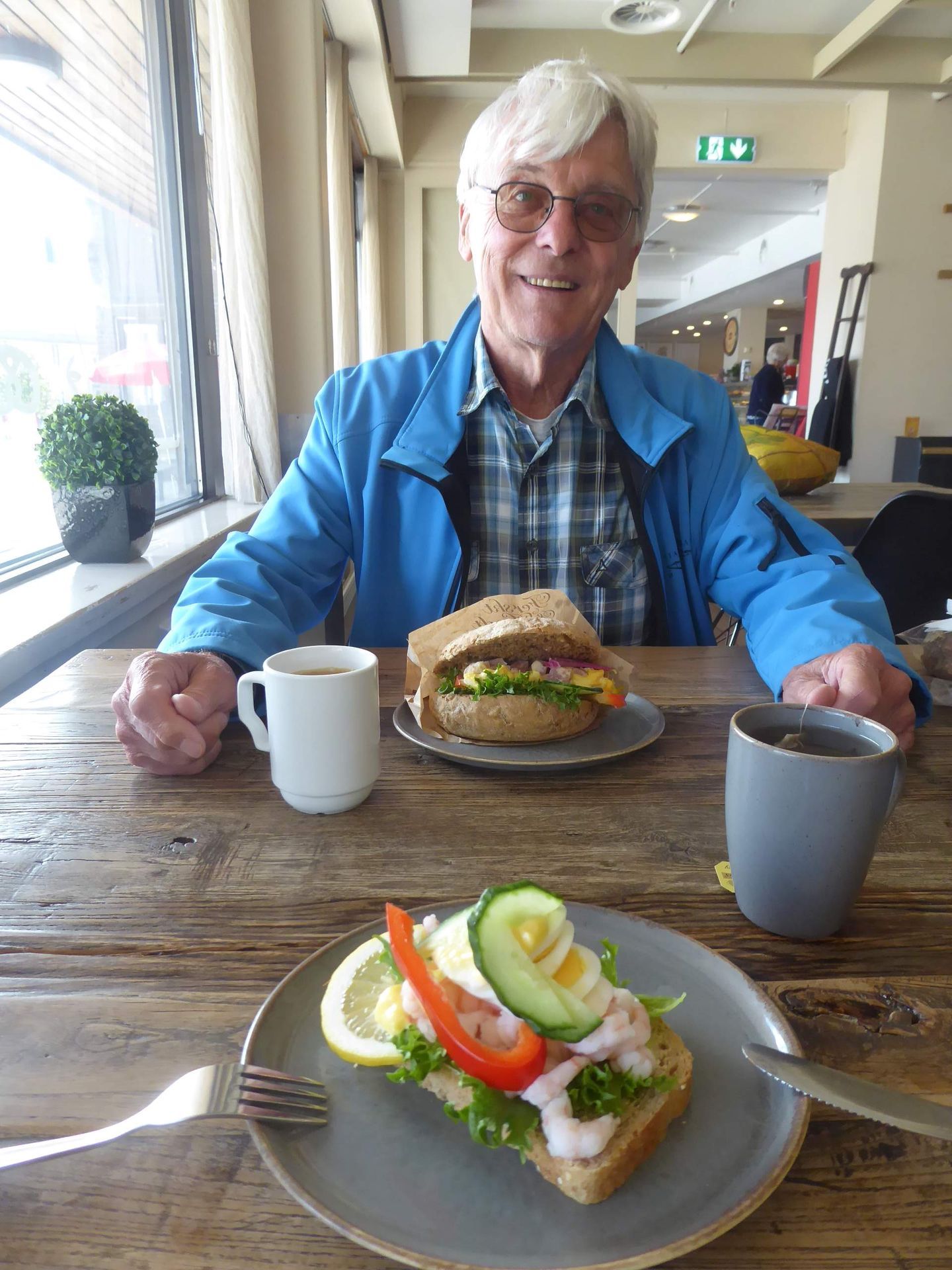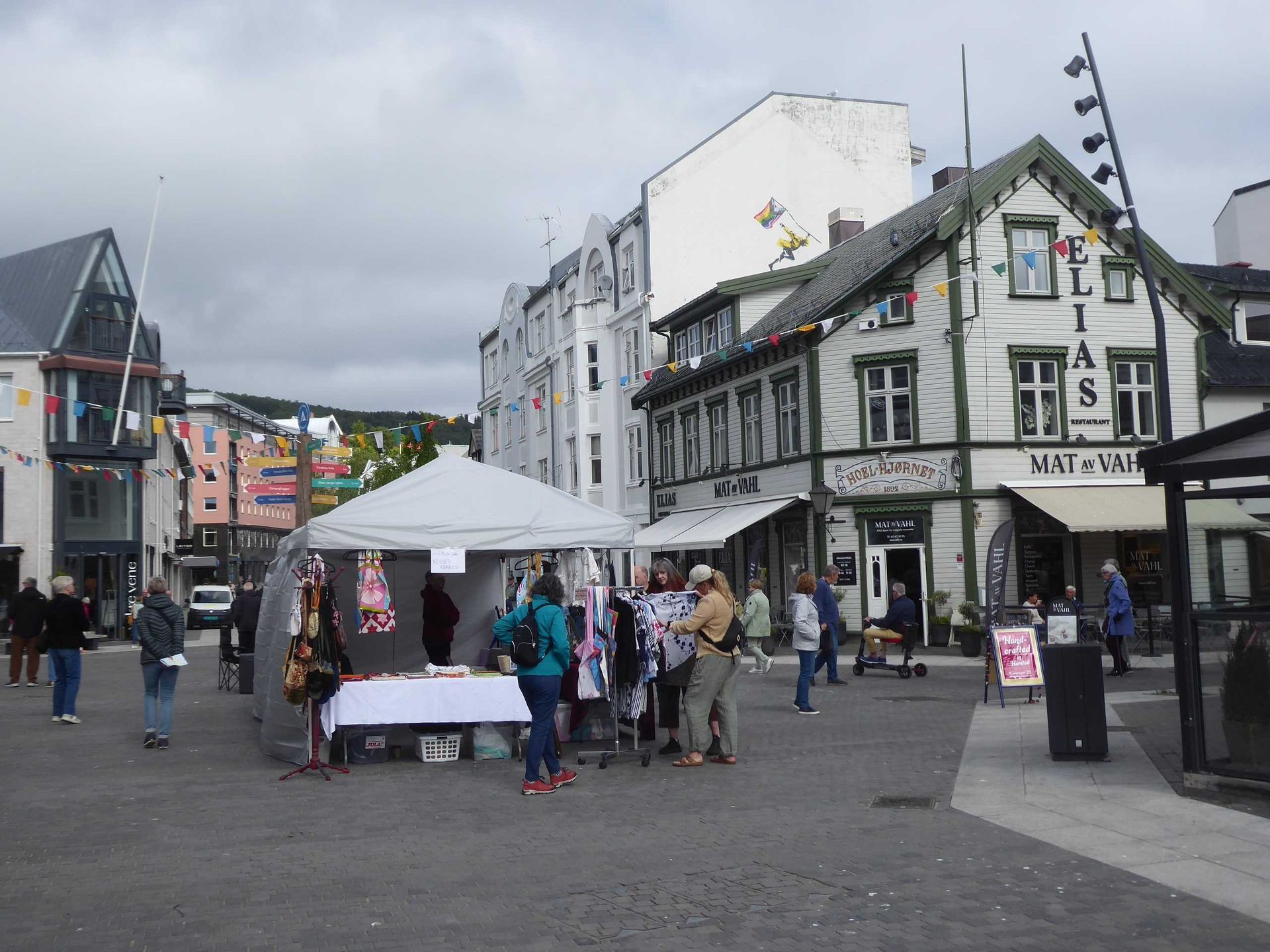 Am nächsten Morgen trauen wir unsern Augen kaum: das Hurtigrutenschiff steht fast direkt vor unserer Nase und das Kreuzfahrtschiff wartet noch weit draussen auf Einlass. Ein wirklich tolles TV Programm! Der Koloss ist noch viel höher als das Haus. Wir gehen zu den Bakerinnen, einem Jugendstillokal mit feinem Tee und den besten Cookies, die ich je hatte.