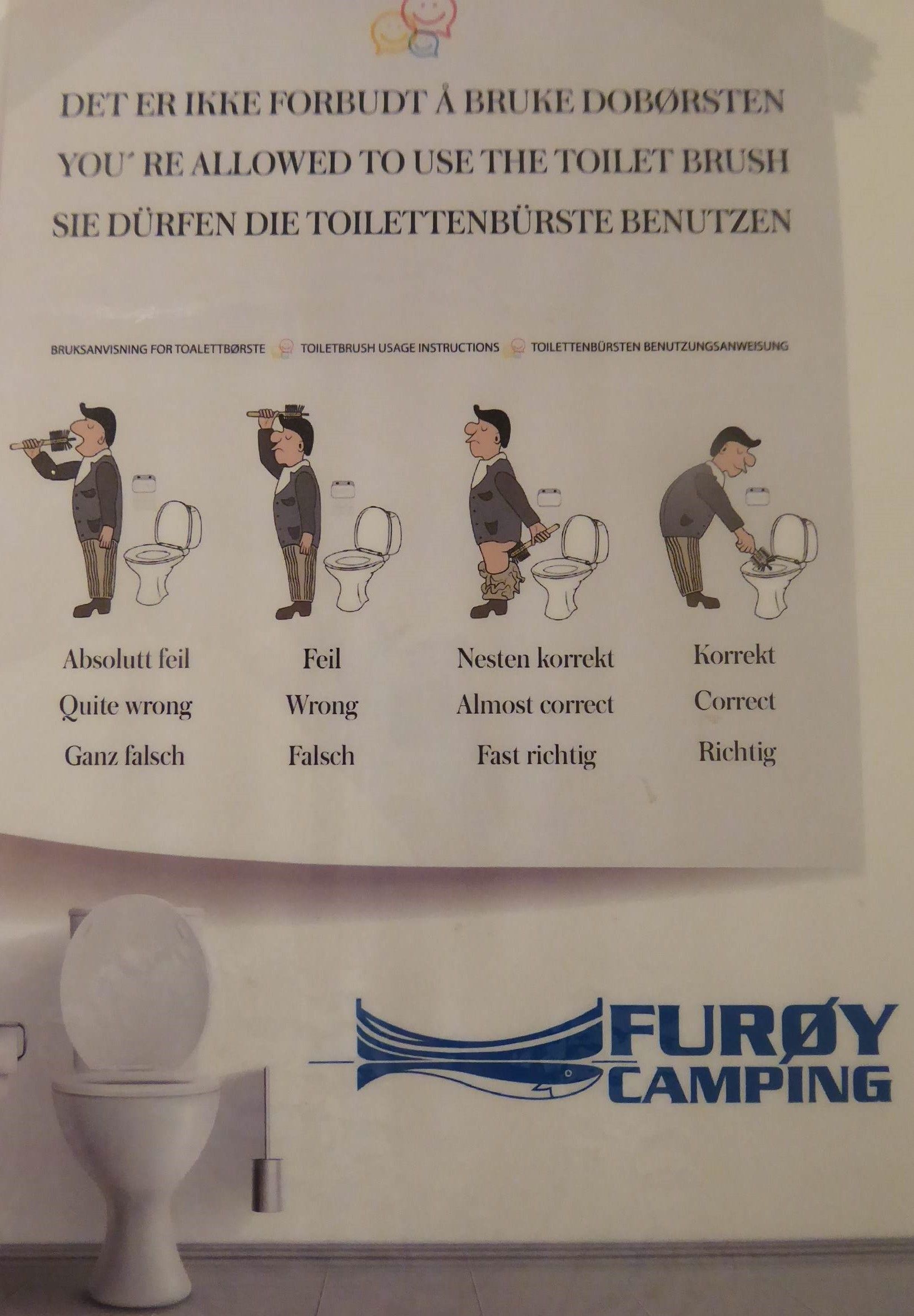 Auf dem Camping Furöy haben wir Wiedererkennungseffekt und im Klo lässt Loriot grüssen.