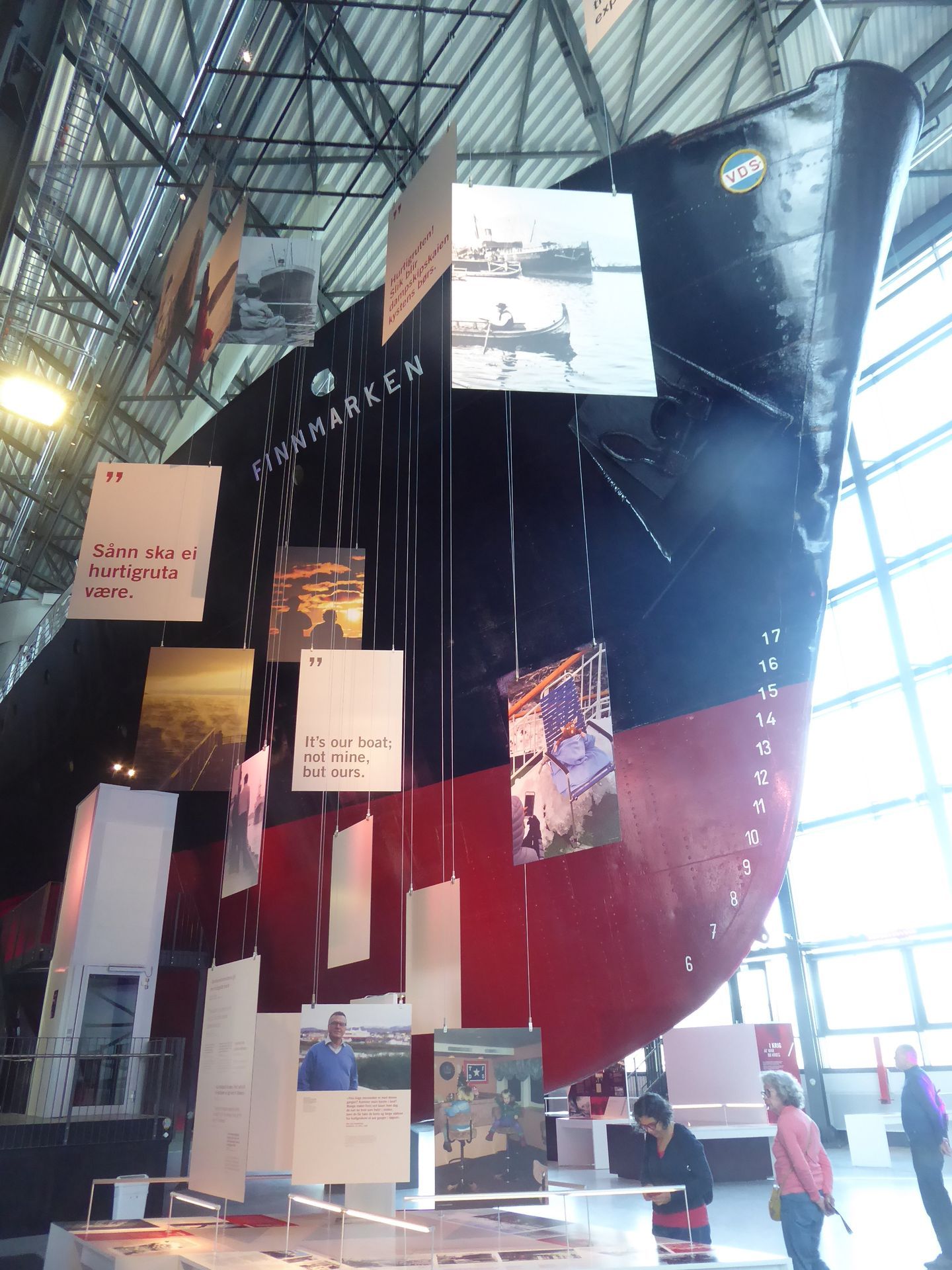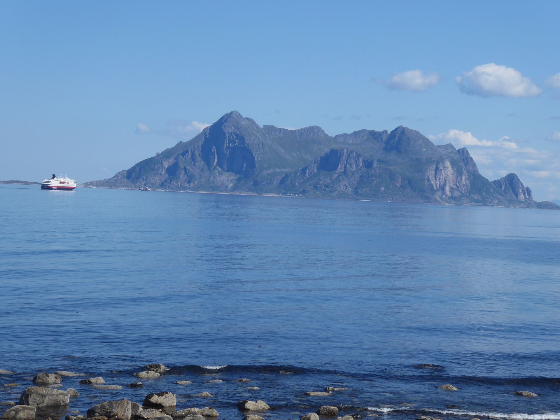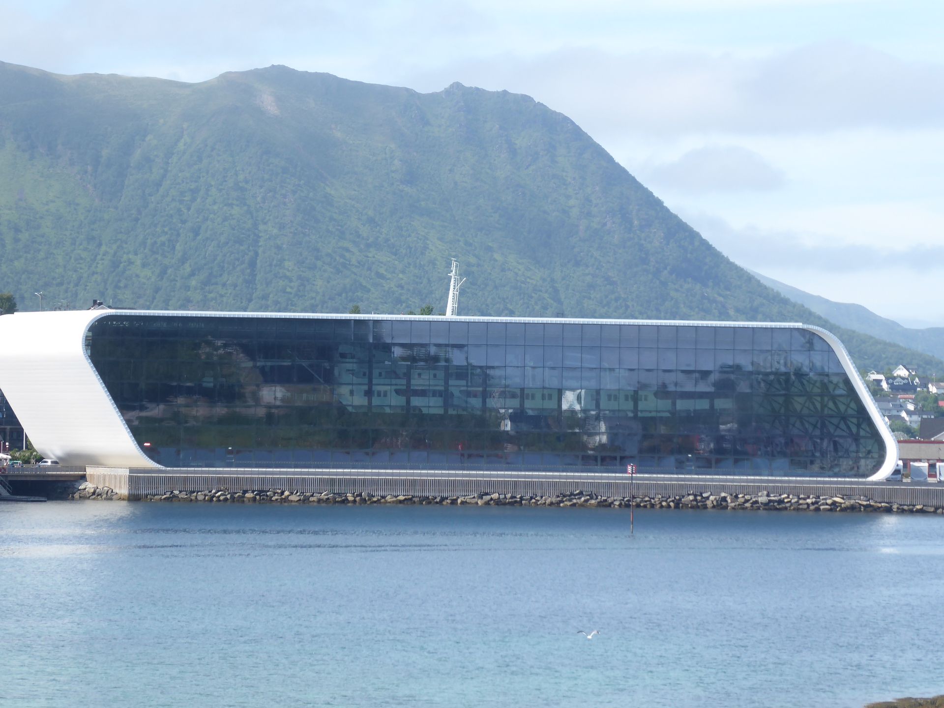 Wir fahren schönen Fjorden entlang, mit einer Fähre auf die Insel Hadseröya nach Stokmarknes. Es ist eine der Versteralen Inseln. Wir besuchen das Hurtigrutenmuseum. Dort steht die originale Finmarken in voller Grösse. Wir erhalten einen Eindruck eines alten und mächtigen Schiffes. Das erste hiess Vesteraalen von 1893. Die Schiffe versorgten die nördlichen Bewohner Norwegens mit Lebensmitteln und natürlich der Post. Im 2. Weltkrieg wurden 27 dieser lebenswichtigen Schiffe versenkt. Die Routen wurden immer mehr aufgeteilt und waren eine Frage von Leben und Tod. In den 70 er Jahren wurden immer mehr kleinere Flughäfen gebaut, darum sollten die Hurtigruten reduziert werden. Die Leute wehrten sich erfolgreich. Früher transportierten die Postschiffe Lebensmittel und einige Touristen, heute sind es viele Touristen und einige Lebensmittel.
