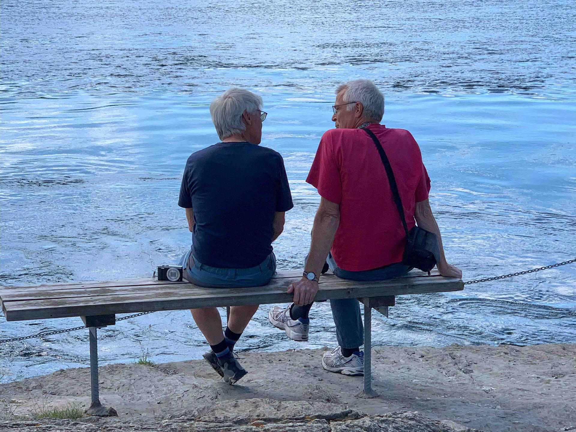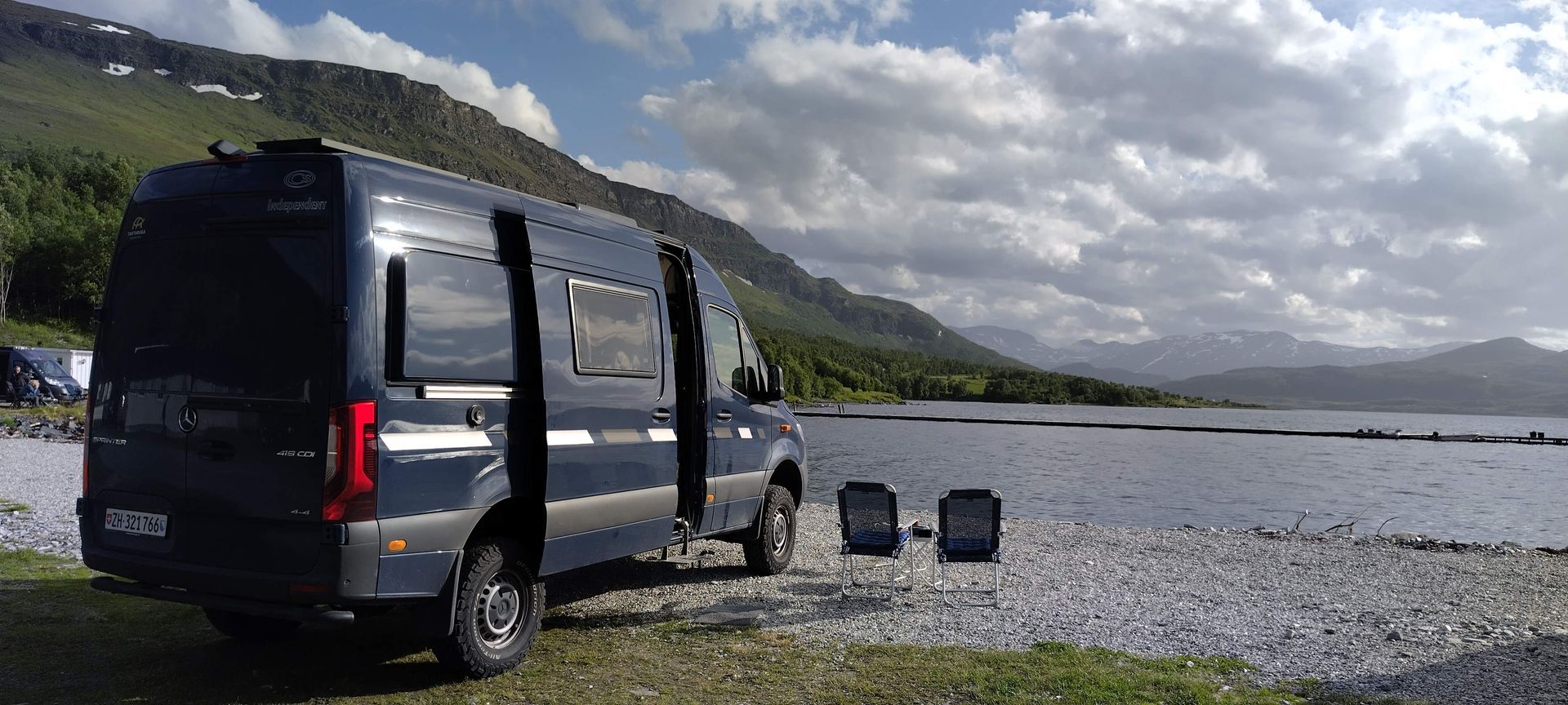 Bevor wir abfahren sprechen uns zwei Zürcher an und wir verabschieden uns mit: «Vielleicht sehen wir uns wieder.» In Steinkjer decken wir uns mit Material für die nächste Etappe auf dem Kystriksveien Fv 17 ein. Wir fahren im strömenden Regen ein Platz Holmset an. Die äussert witzige Betreiberin, die im Winter auf einer Ölplattform arbeitet, bietet uns den hintersten und untersten Platz am Fluss an. Und wen sehen wir da stehen? Monica und Peter aus Wetzikon. Wir verbringen angeregte Teestunden miteinander.