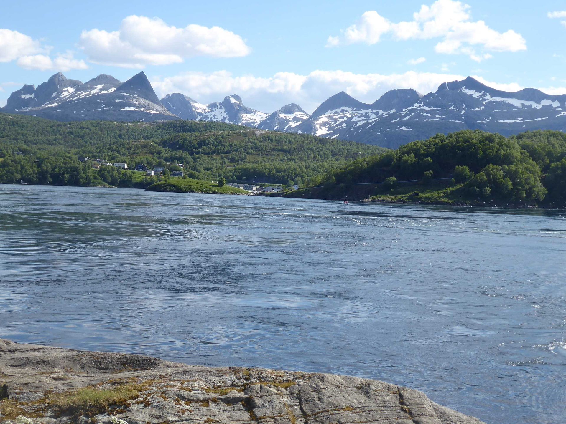 Am Sonntag, 9. Juni haben wir bei Bodö mit Angela und Niels abgemacht. Sie fuhren durch Schweden direkt nach Tromsö und reisen nach Süden. Wir treffen uns beim Saltstraumen. Dort zwingt sich die Flut in grossen Wirbeln durch die Enge, alle paar Stunden ein Schauspiel. Hans grilliert, wir essen fein und haben viel auszutauschen.