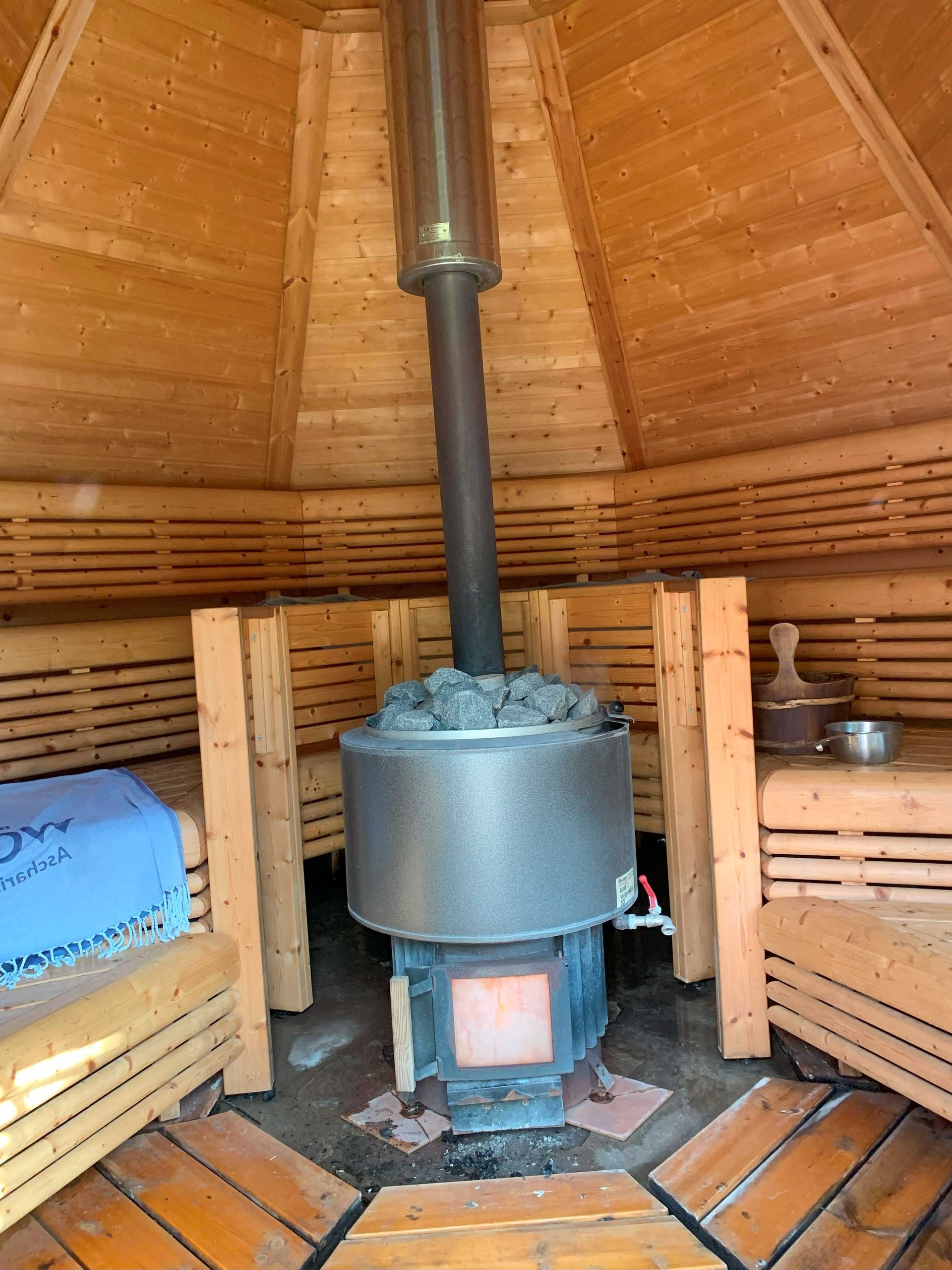 Weil es immer wieder regnet, fahren wir weiter nach Norden durch graue Landschaften und unzählige Tunnels. In Tommerneset an der Strasse finden wir einen Platz und oh Wunder: eine Sauna. Wir richten uns ein und dann ab in den Schwitzkasten – wunderbar. Es gefällt uns so gut, dass wir einen Tag länger bleiben und natürlich die Sauna nützen.
