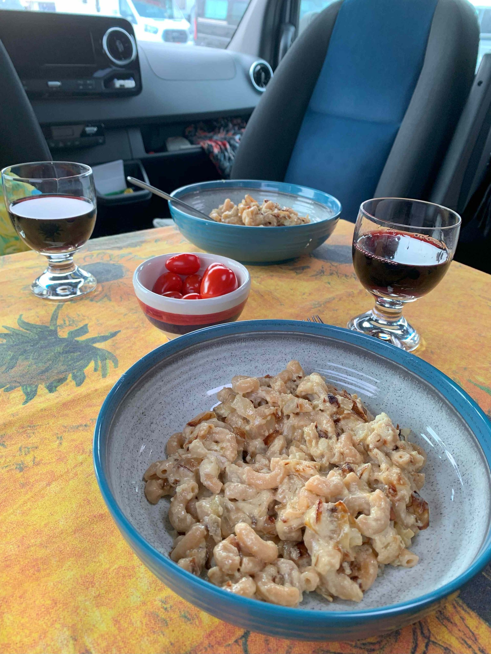 Also, es gibt einen Fahrtag. Für den Rucksack sind es 176 km mehr. Noch ein Mittagessen in Ifjord und dann fahren wir über die Tana Bru zum Varangerfjord auf einen Platz mit Sauna.