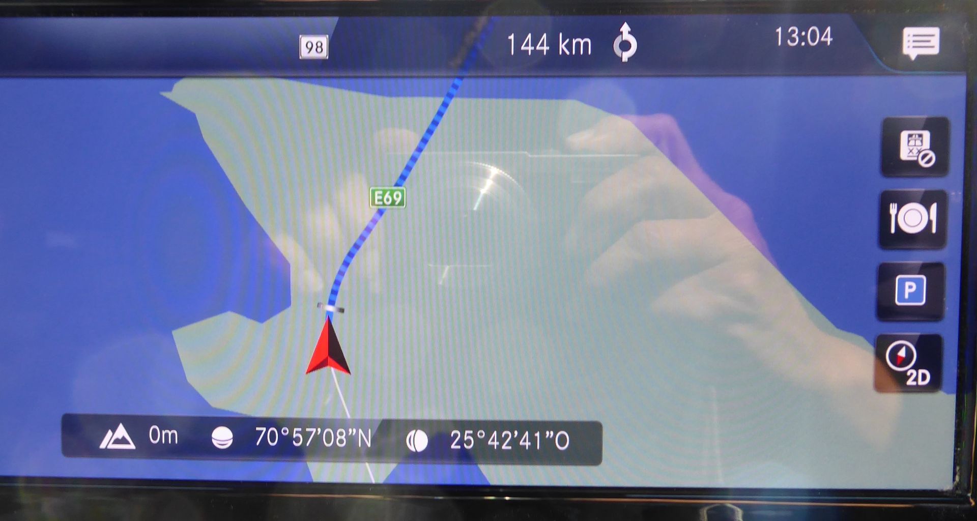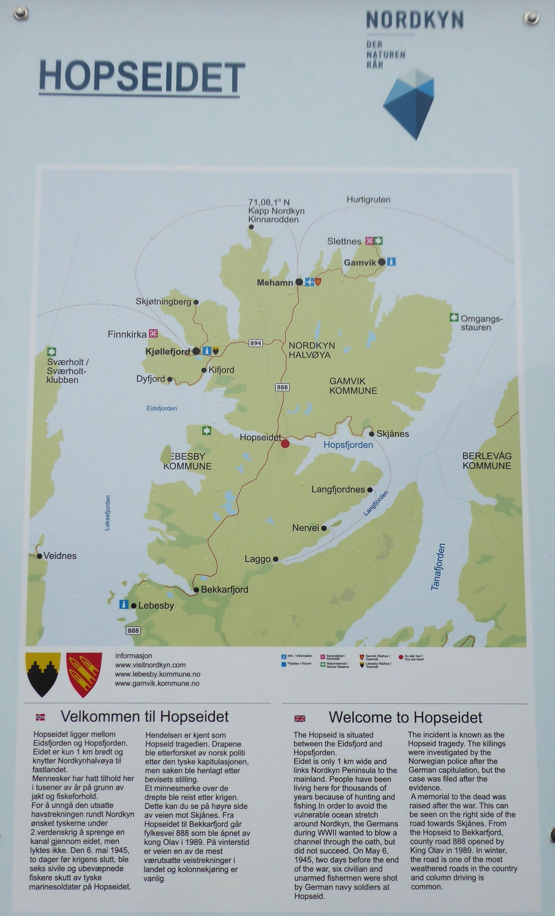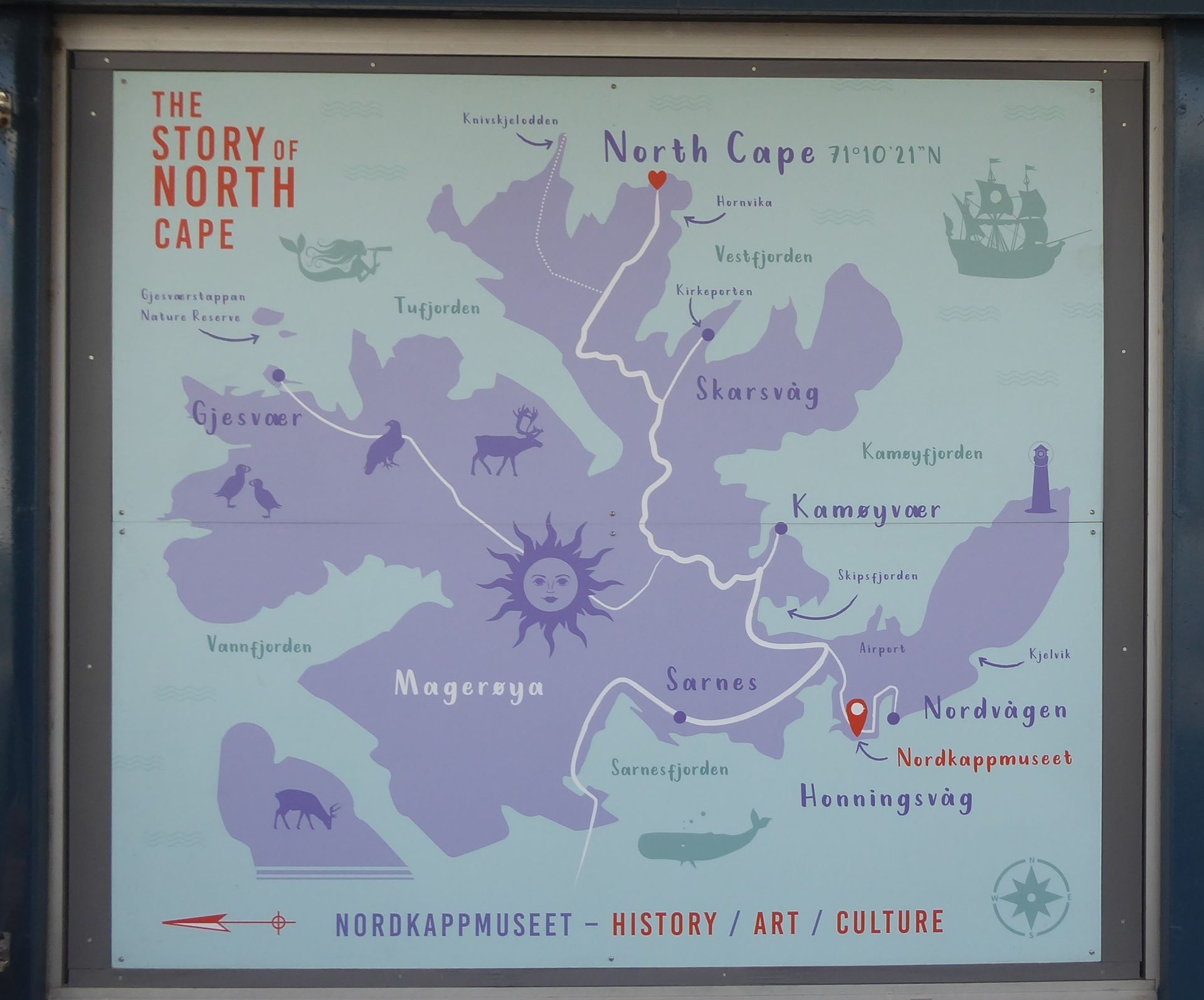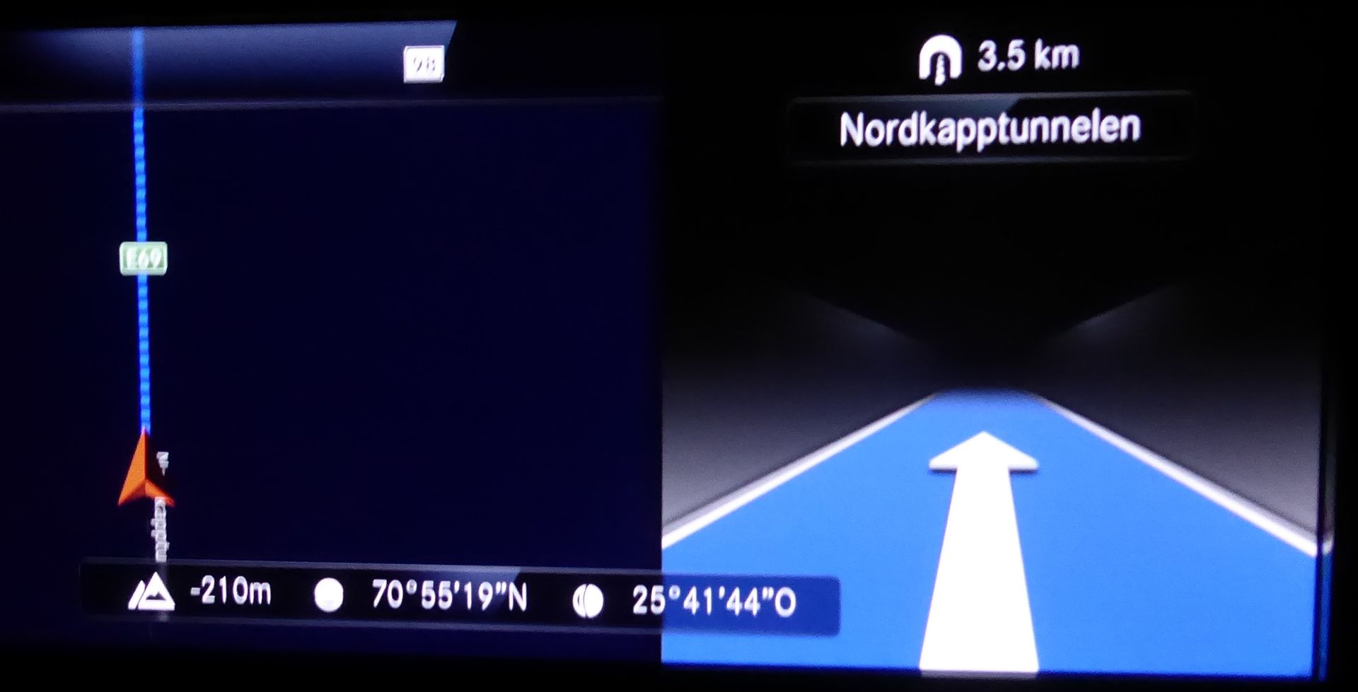 Dort besuchen wir das Museum. Es zeigt Leben und Geschichte des Ortes und die Zerstörung im 2. Weltkrieg. Der Mageröytunnel ist 6,8 km lang und geht bis -210 m Tiefe unter das Meer, unser Navi zeigt dies exakt an.