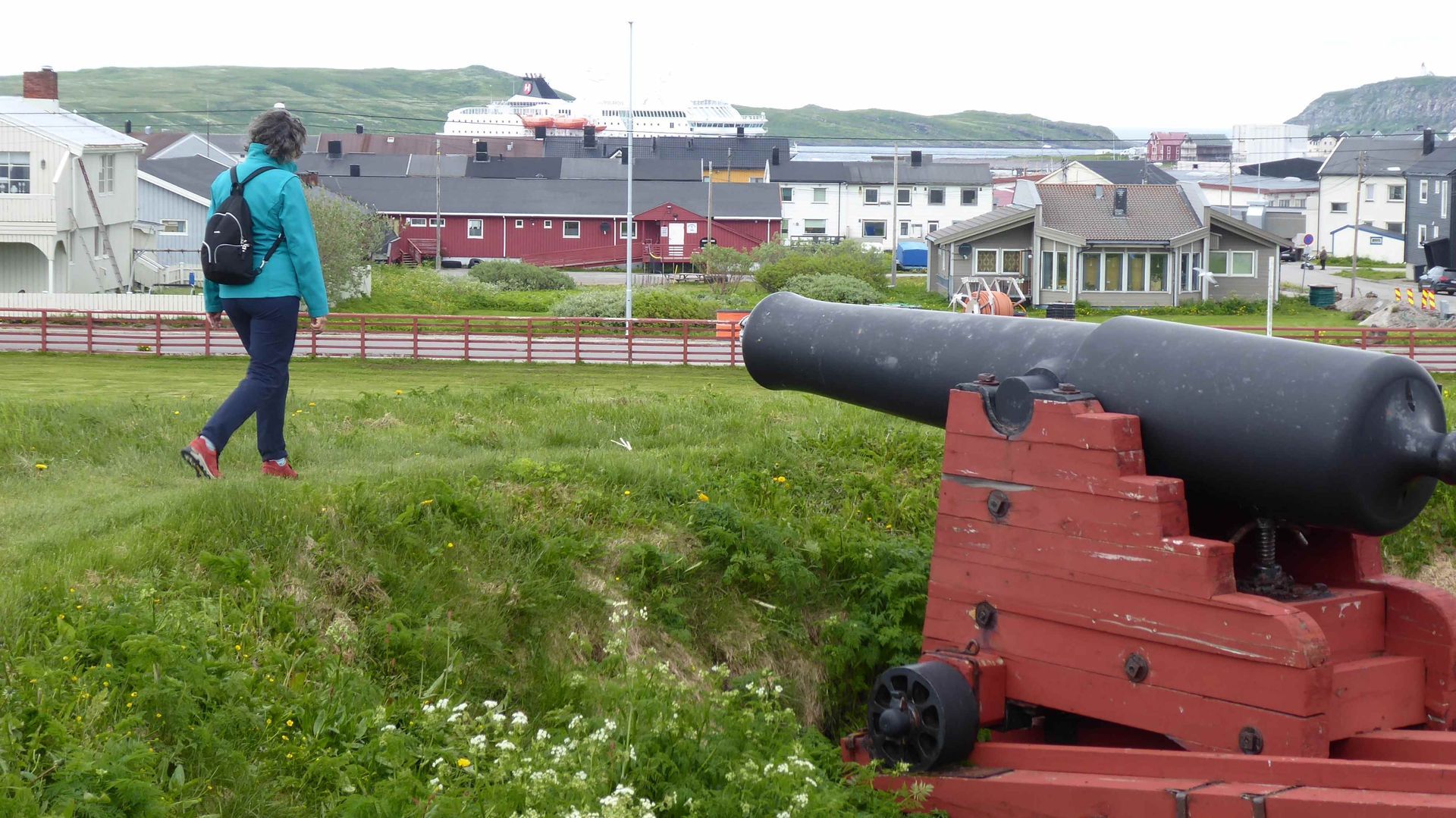 Die meisten dieser Prozesse wurden in der Festung Vardöhus geführt. Es ist die nördlichste Festung der Welt, eine achtkantige sternförmige Anlage von 1738. Innerhalb der Mauern hat es 9 Gebäude. Die Festung wird nur noch an Nationalfeiertagen gebraucht. Wir sehen die Kanonen und ich denke: Es ist genau das Gleiche wie heute: Männer und Macht.