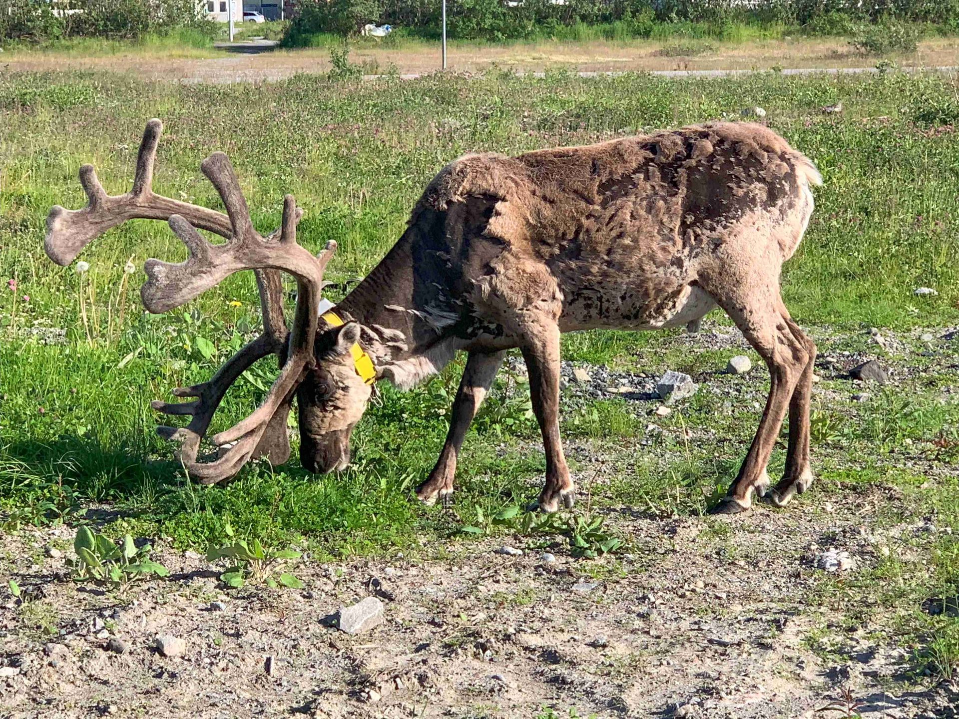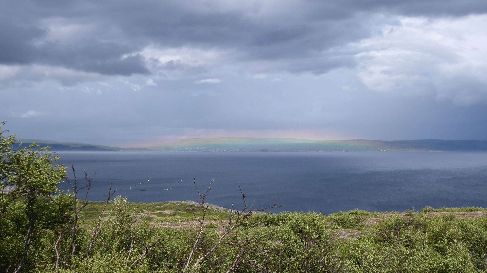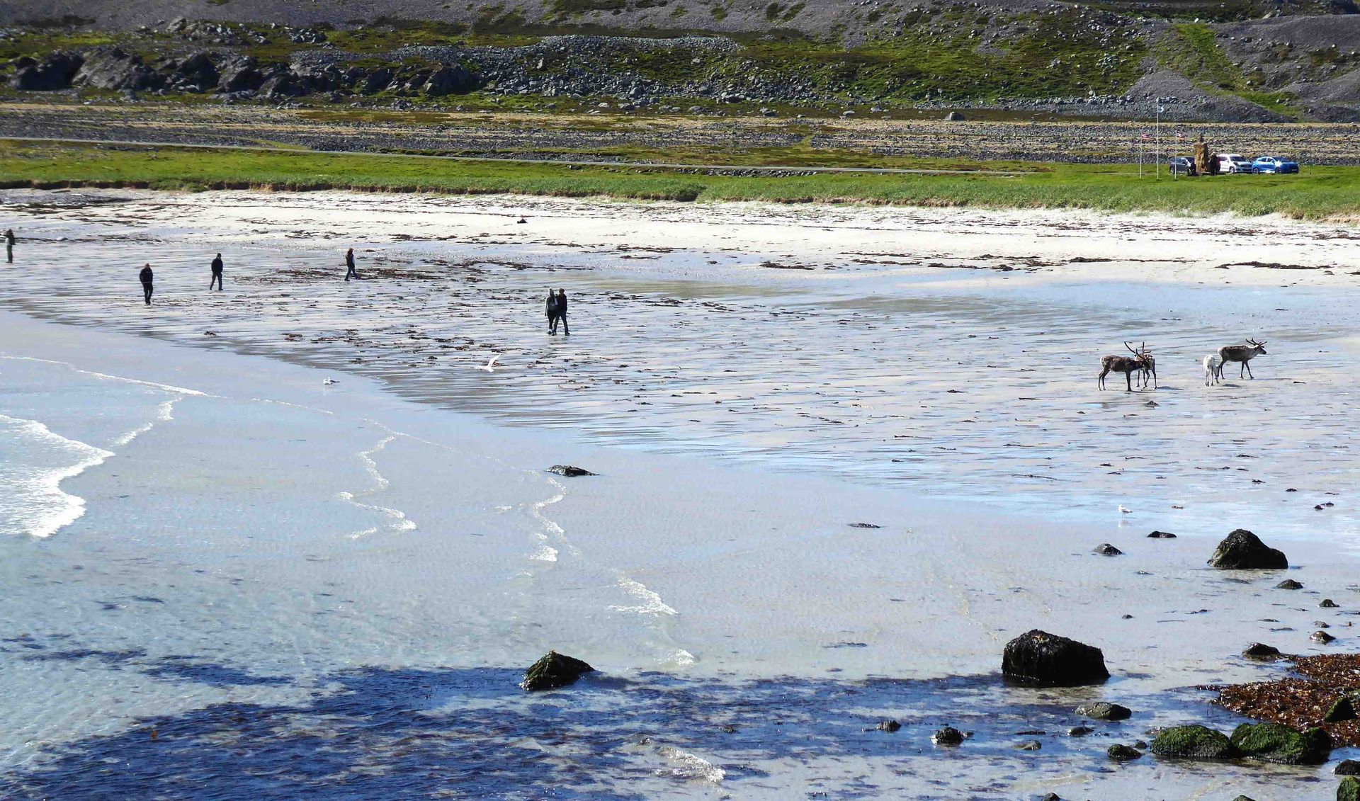 Es ist die östlichste Stadt von Norwegen. Wir fahren um den Varangerbotn. In Vadsö halten wir in einer Bakkeri für einen feinen Zmorge. Beim Samifreiluftmuseum regnet es leider so stark, dass wir gar nicht aussteigen. Auch in Bugöynes haben wir Pech: Wir haben einen Platz erobert, aber dann wird uns gesagt, dass dieser vorreserviert sei. Also fahren wir weiter nach Kirkenes an den Hafen. Da gefällt es uns sehr gut: Die Hurtigruten halten vor unserer Nase, das Gelände ist offen und weit, in die Stadt ist es nur ein Kilometer und die Rentiere besuchen uns oft.