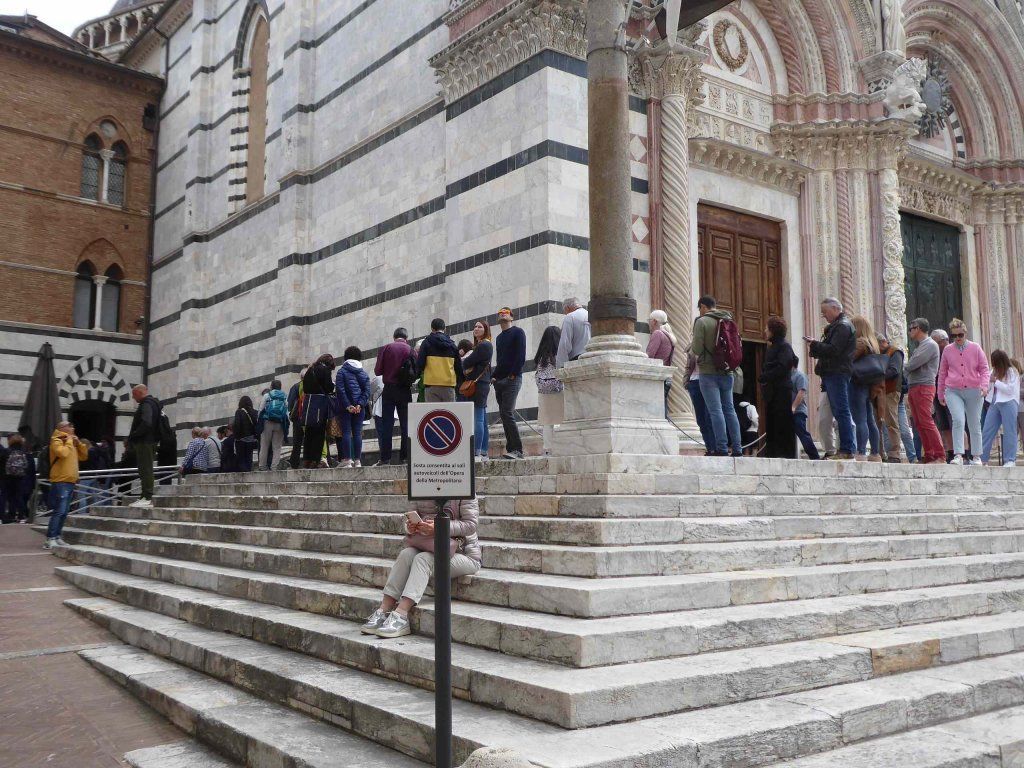 Als Tagesprogramm hätten wir gerne den Dom angesehen. Aber die Warteschlangen zur Biglieteria sind sehr lang, würde heissen: Stunden anstehen und dann warten, bis wir zu den 800 Leuten gehören, die im Dom sein dürfen. Huch, nicht mit Individualtouristen und so freiheitsliebenden Campern! Ich versuche ein Billett per Internet zu lösen, aber ich verstehe nicht alle Wörter und die Damen in der Information sind nicht bereit mir auf italienisch zu helfen. Ich bin soo enttäuscht …
