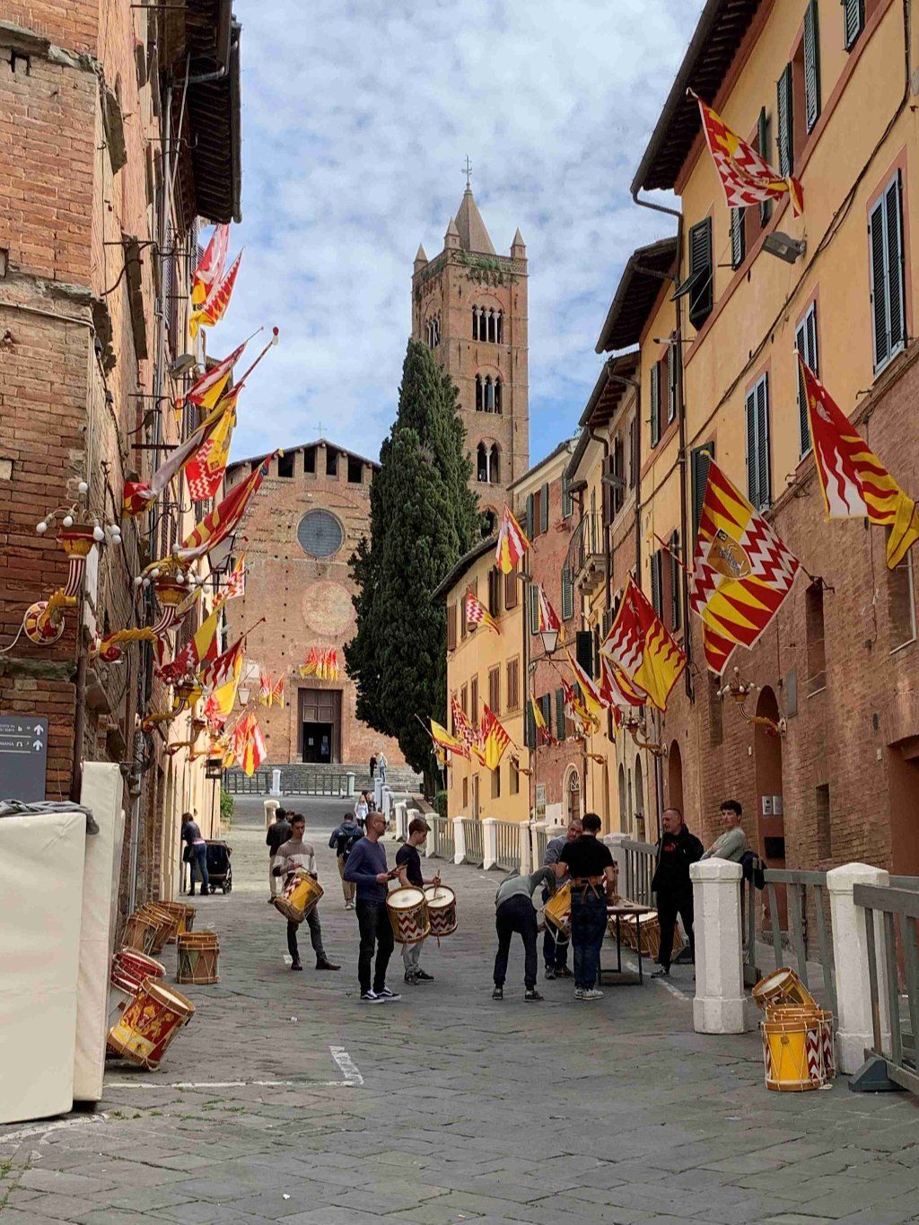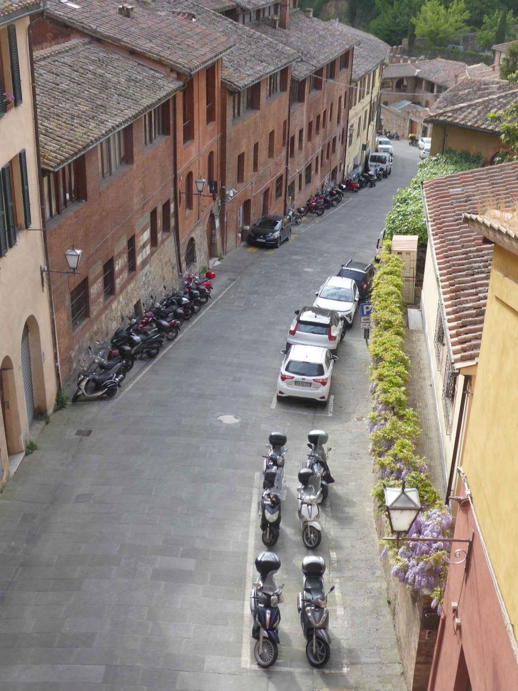 Wir streifen weiter durch die Gassen, suchen einsamere und kommen so zur Kirche San Domenico, wo sich auch Katharina von Sienas Geburtshaus befindet. Wir erhaschen schöne Ausblicke auf die Stadt.