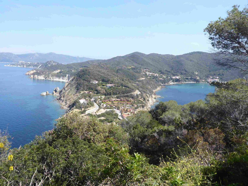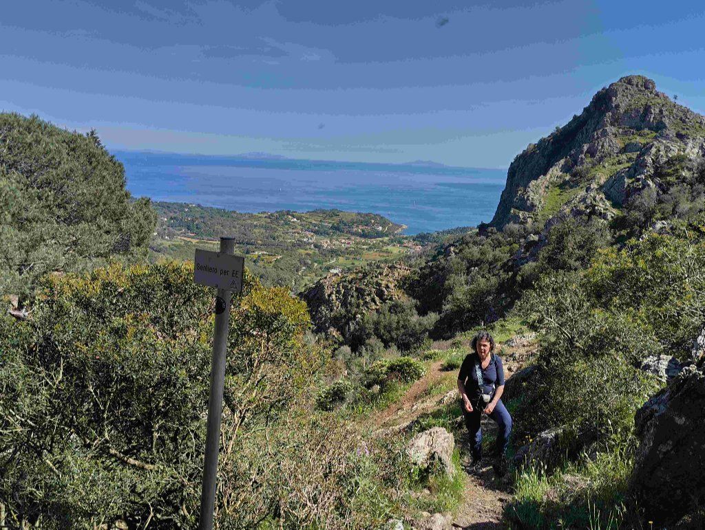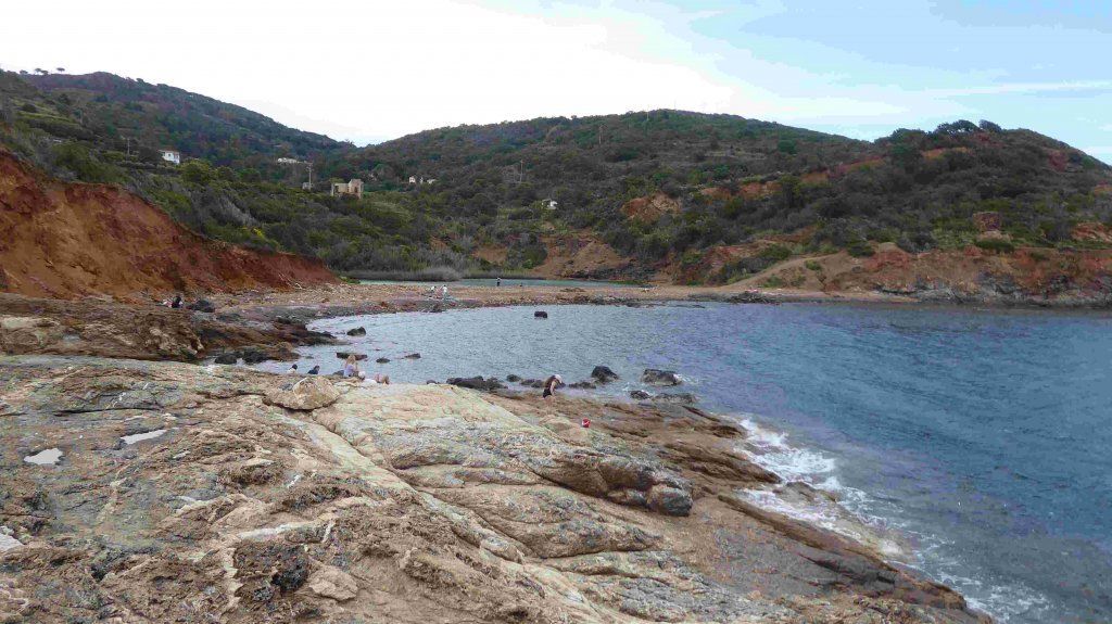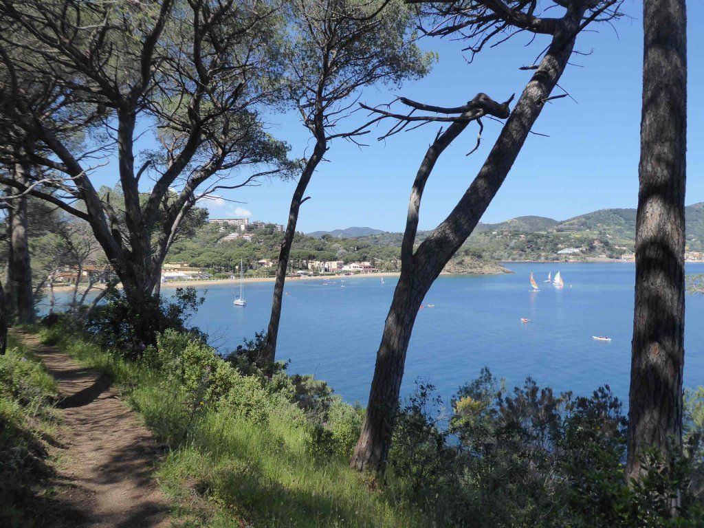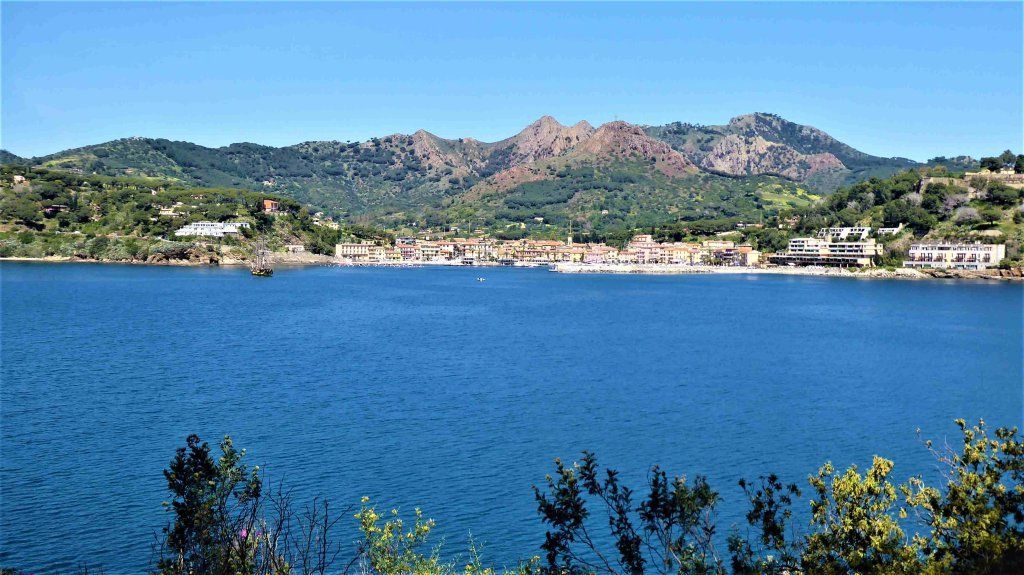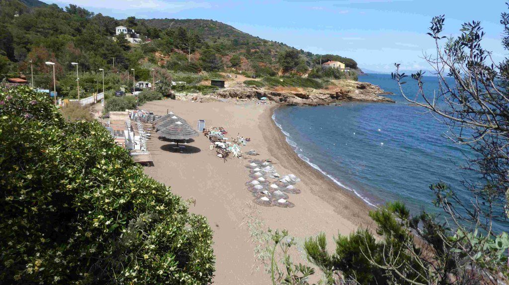 Am nächsten Tag findet Hans auf der Mapy-App eine schöne Wanderung Richtung Porto Azzurro. Es geht steil hinauf und hinunter, teils auf wenig befahrenen Strassen und echten Wanderwegen der Küste nach. Porto Azzurro scheint so nahe zu sein, da möchte ich doch hin. Aber ein genauerer Blick zeigt eine grosse lange Bucht, echt zu weit. Elba ist eine sehr zerklüftete Insel. An einer Strandbar löschen wir unseren Durst und laufen zurück an unseren Paradiesplatz.