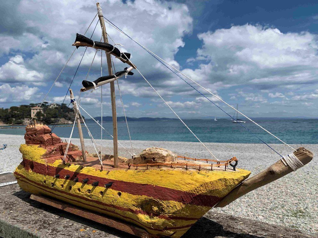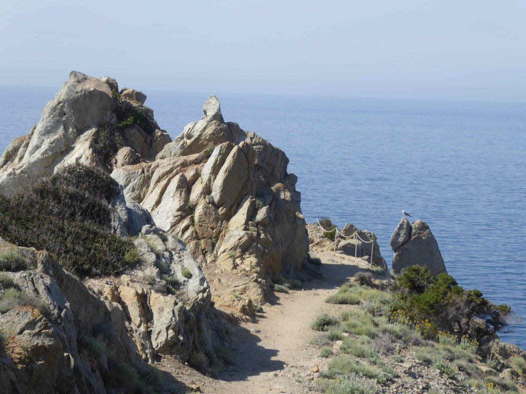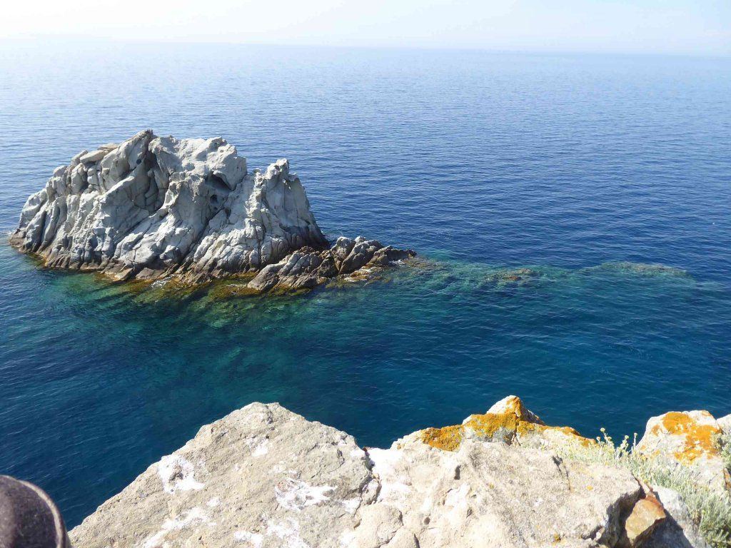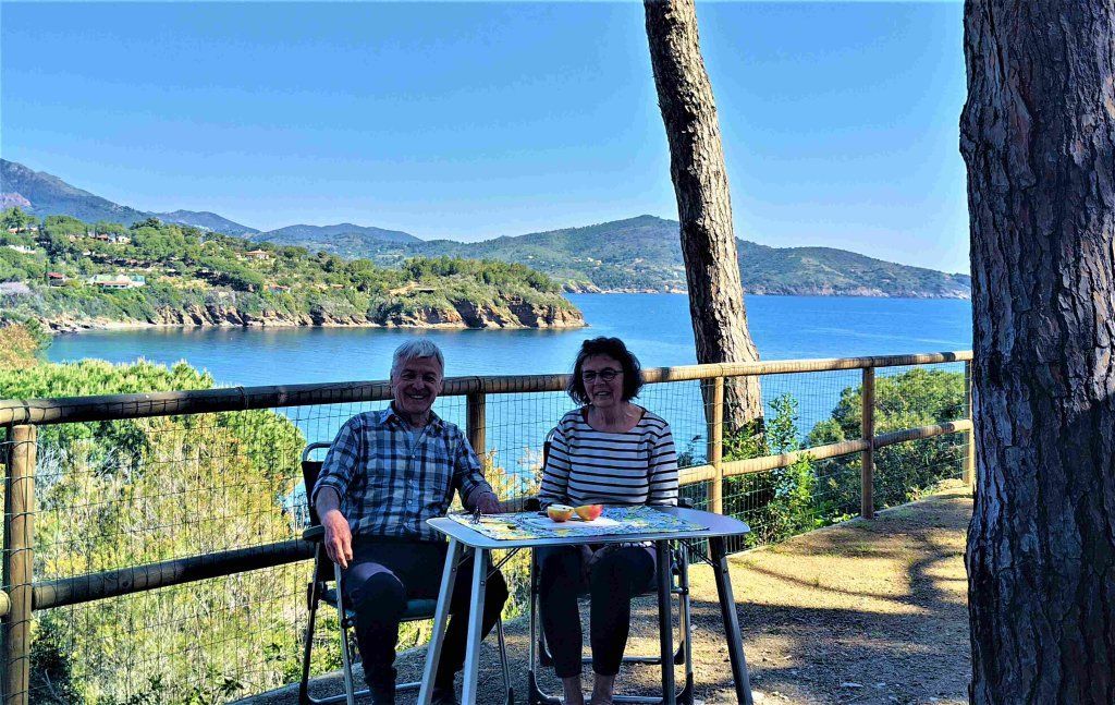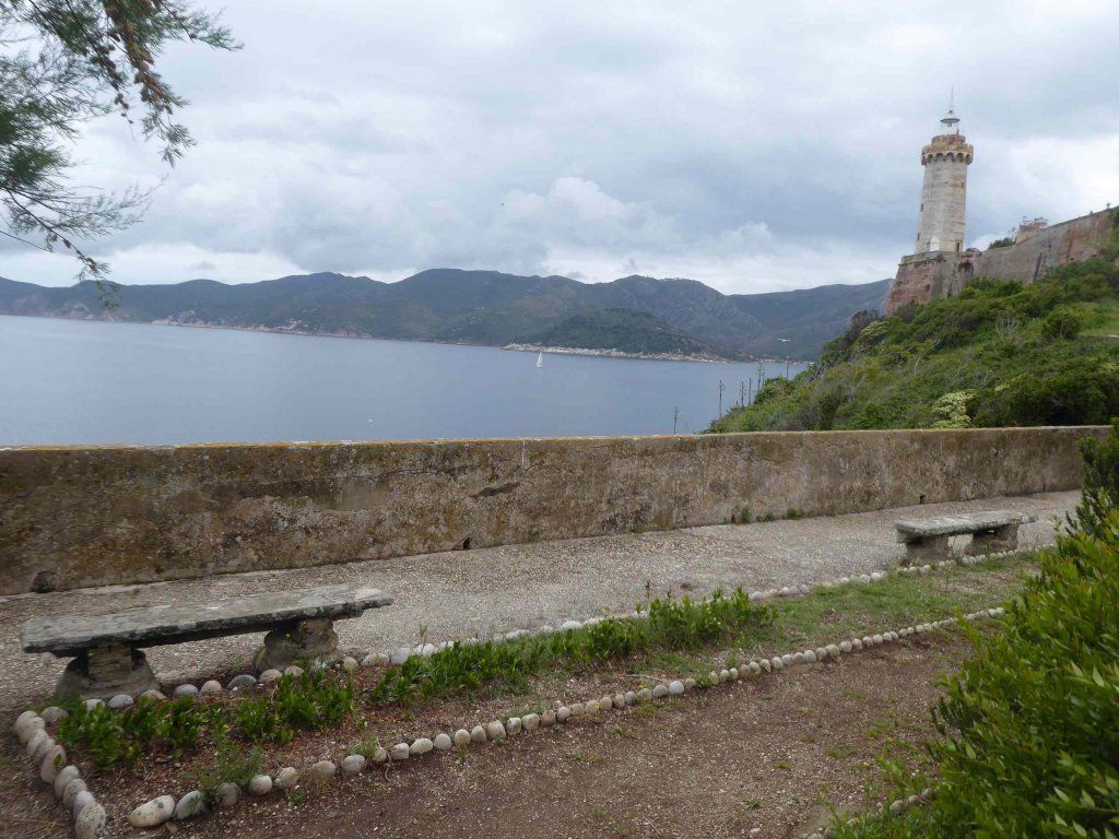 Am nächsten Tag findet Hans auf der Mapy-App eine schöne Wanderung Richtung Porto Azzurro. Es geht steil hinauf und hinunter, teils auf wenig befahrenen Strassen und echten Wanderwegen der Küste nach. Porto Azzurro scheint so nahe zu sein, da möchte ich doch hin. Aber ein genauerer Blick zeigt eine grosse lange Bucht, echt zu weit. Elba ist eine sehr zerklüftete Insel. An einer Strandbar löschen wir unseren Durst und laufen zurück an unseren Paradiesplatz.